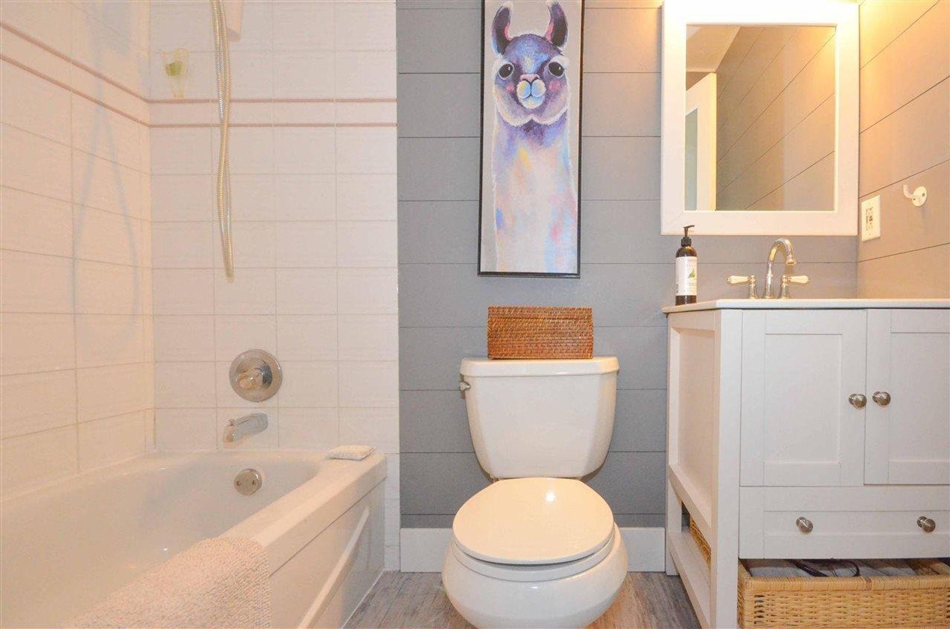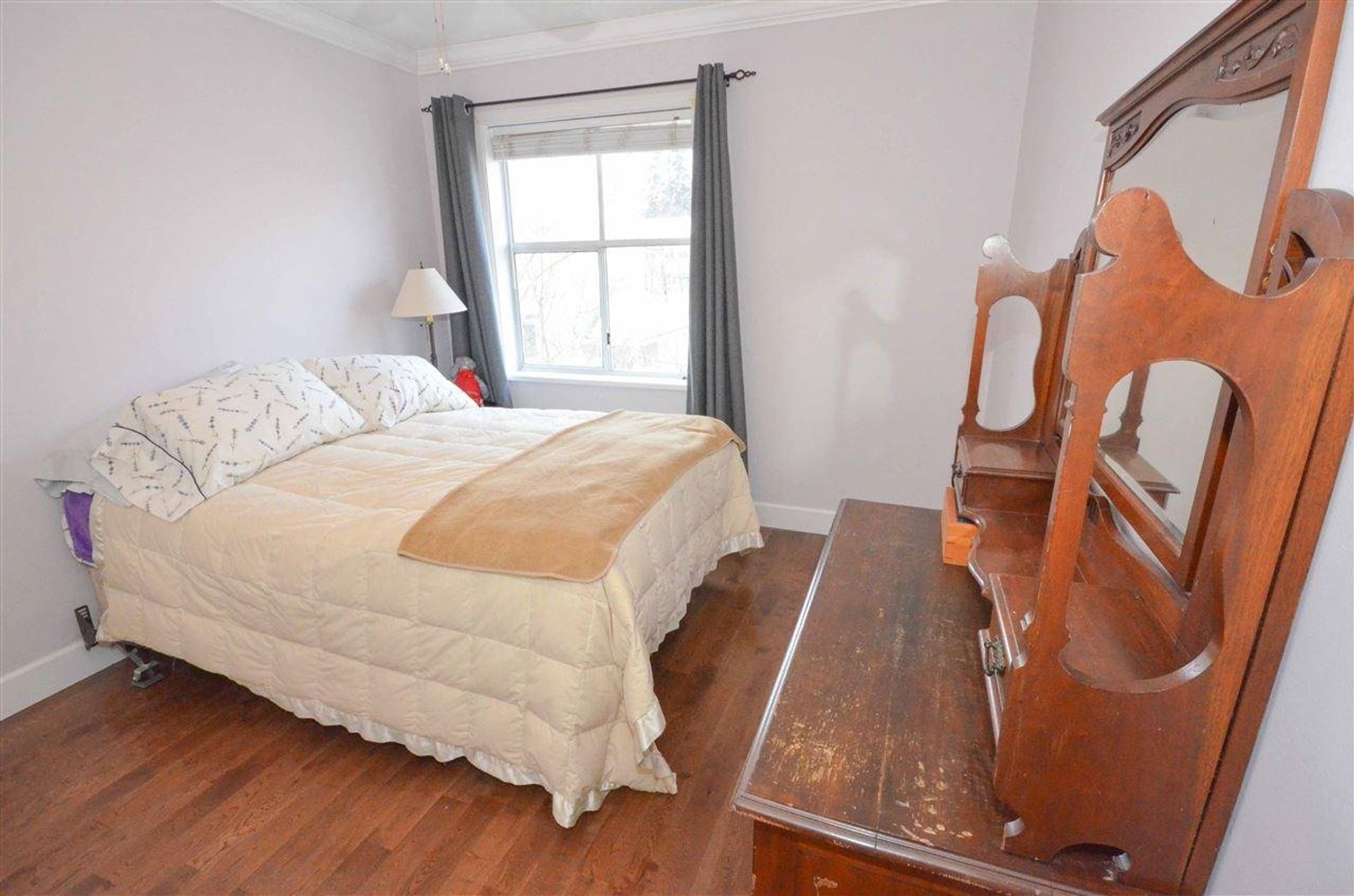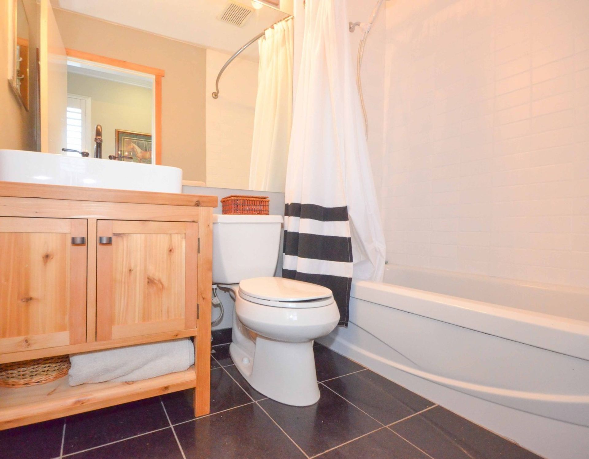 The upper level of this home has three bedrooms and two washrooms; one of the rooms features Chair Rail mouldings adding an extra touch to the room's decor. The master bedroom includes a large window for an abundance of natural light, a roomy closet, a four piece ensuite with subway tiling and an updated vanity. With a modernized bowl sink, a solid wood vanity, and tile flooring the homes main washroom completes the third floor.