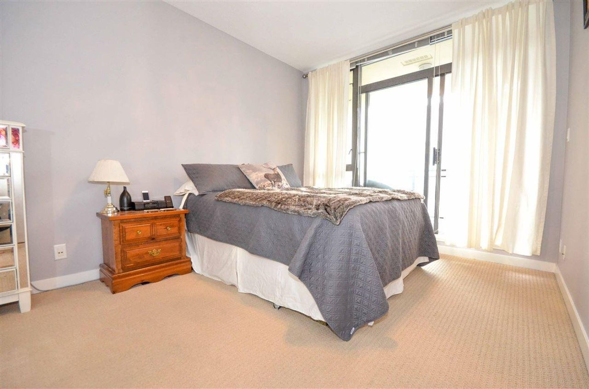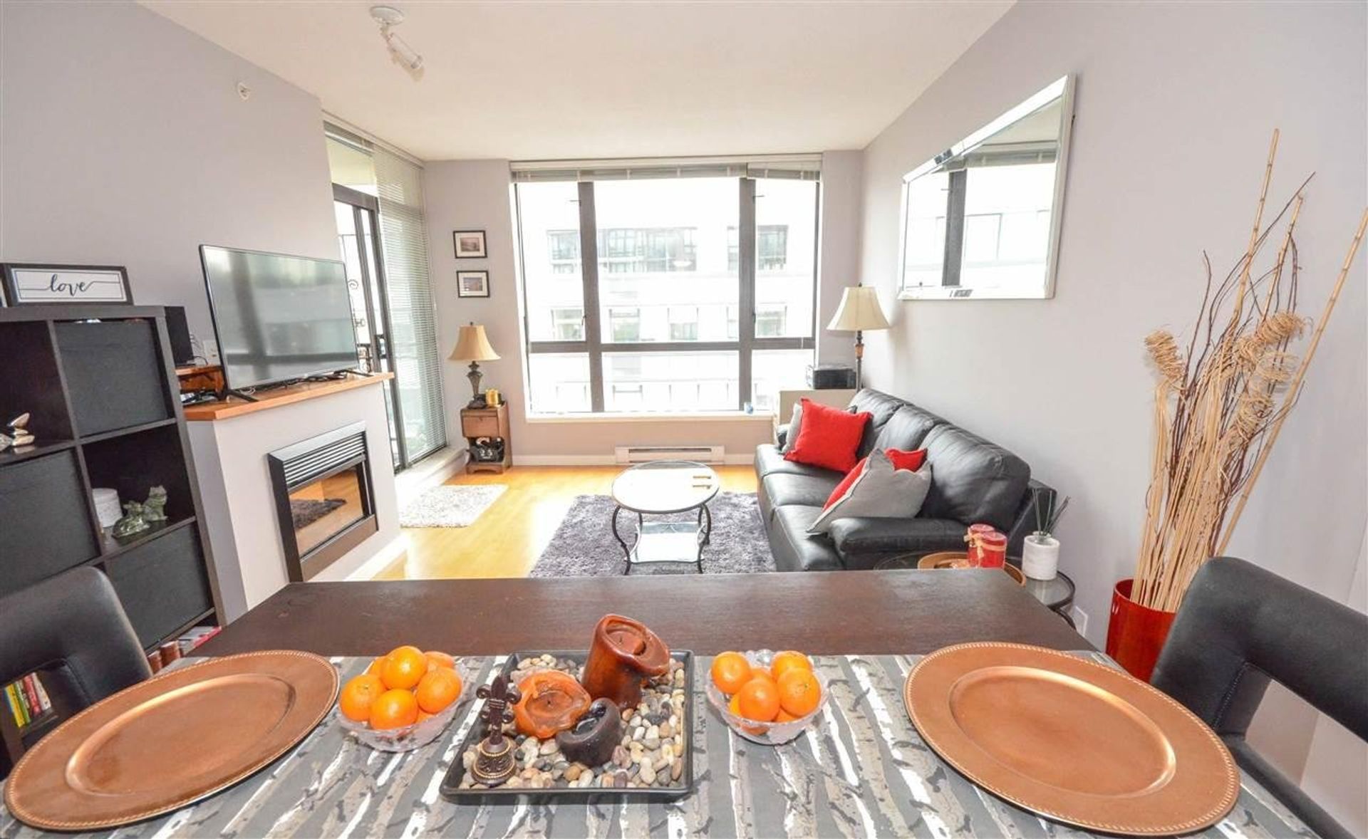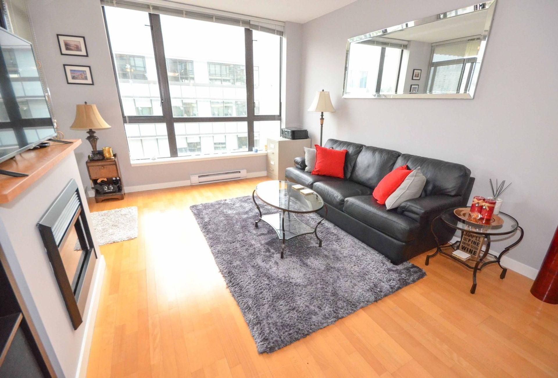 The thriving heart of Suter Brook Village welcomes you to 400 Capilano Road; tucked away from the hustle and bustle, on the tenth floor, with a sweeping mountain view, this east facing one-bedroom condo is modern living at its finest. An open concept living room, dining room, and kitchen greets potential buyers with nine-foot ceilings, and a gourmet cooking space; granite countertops, tile backsplash, accent pot lighting, a double sink, and all stainless-steel appliances with a gas range. Even with the inclusion of an eating bar there is room for a proper dining room table facilitating the perfect gathering place for a Friday night in with friends. The living room features an oversized window, ideal for keeping your home cool in the summer, an electric fireplace, and a glass sliding door on to a large covered deck; secondary access to the deck can be found from the homes spacious master bedroom which includes a glass floor to ceiling east facing wall. A four-piece washroom room with granite countertops, subway tiling, and a vessel sink sits off of the home’s foyer, and adjacent to the in-suite laundry which is conveniently located away from the bedroom.