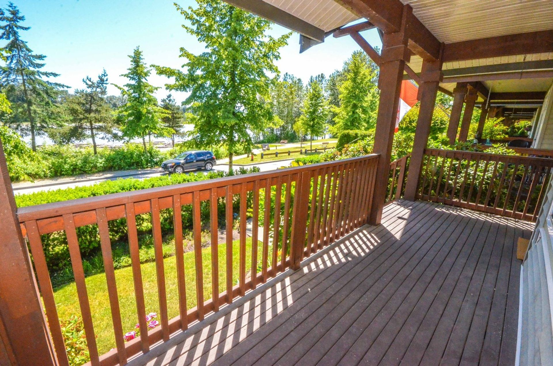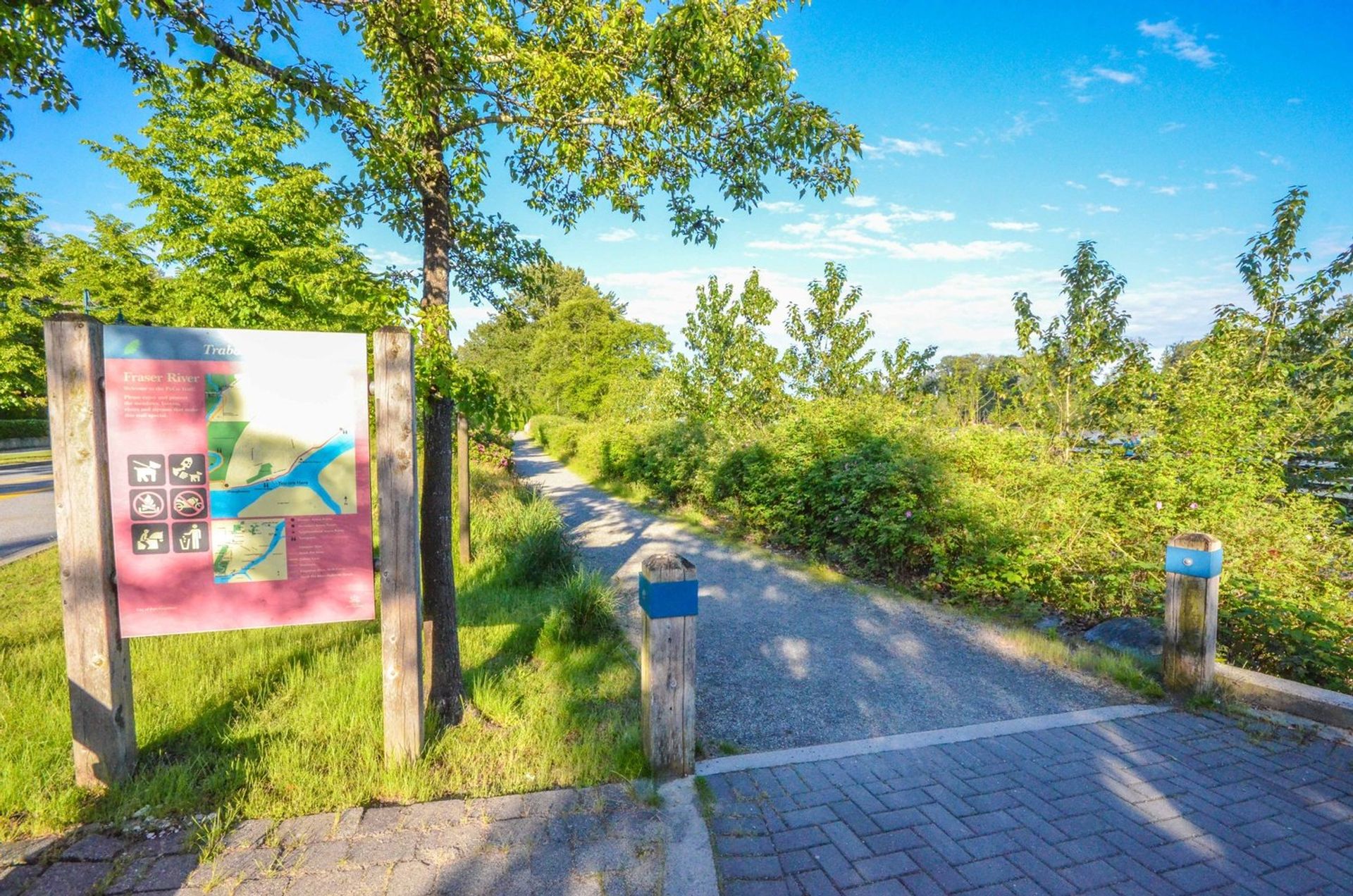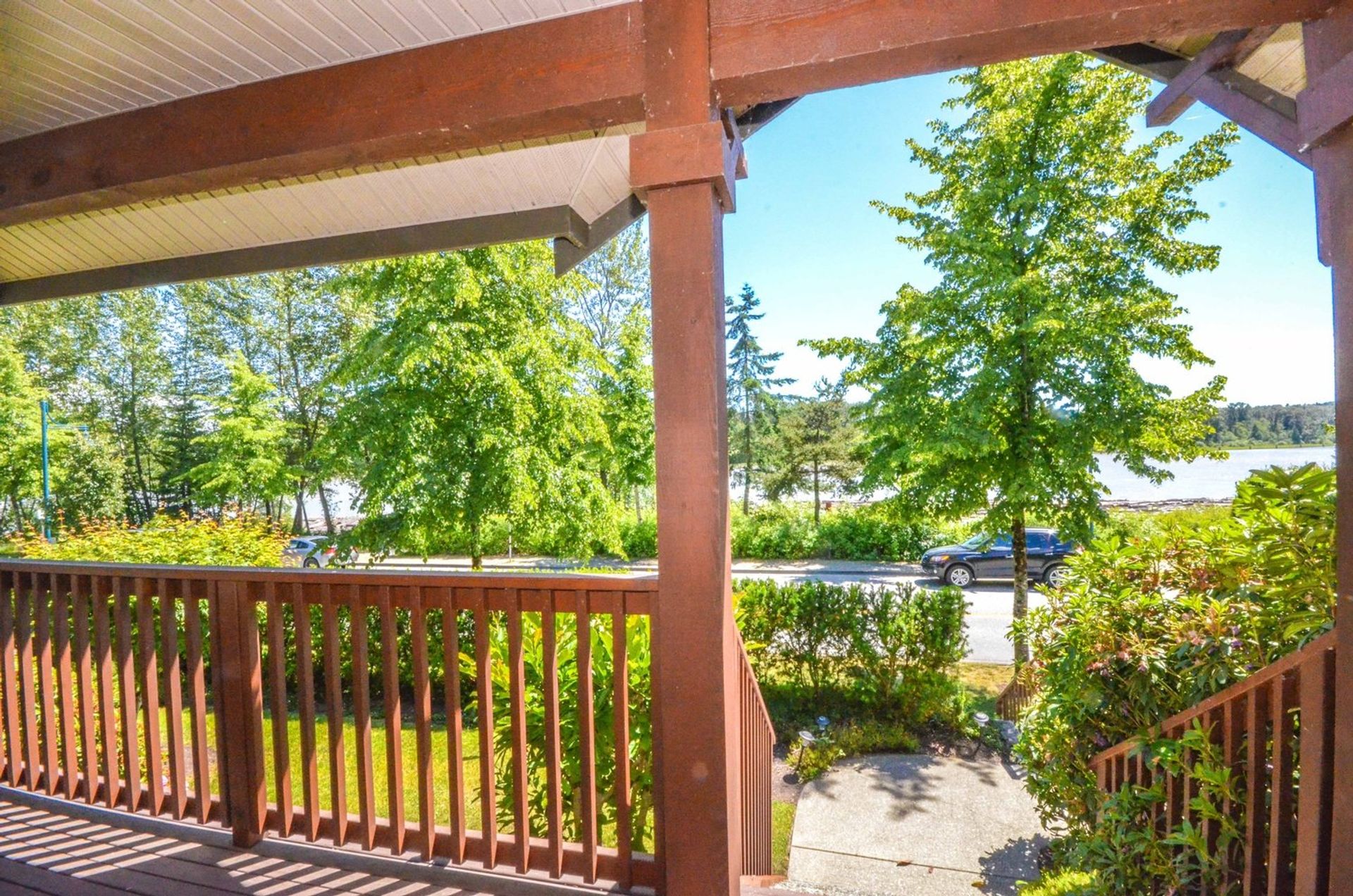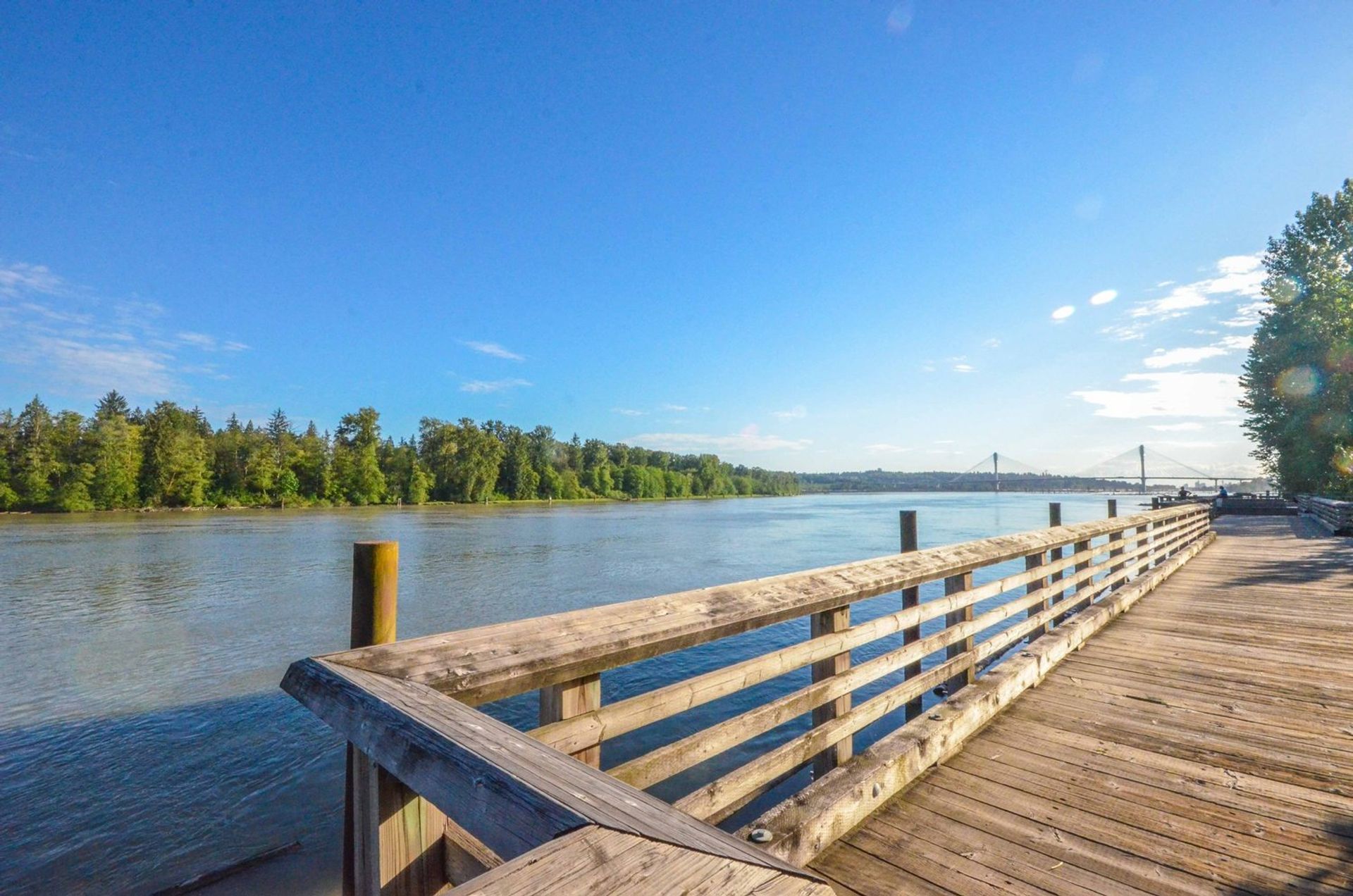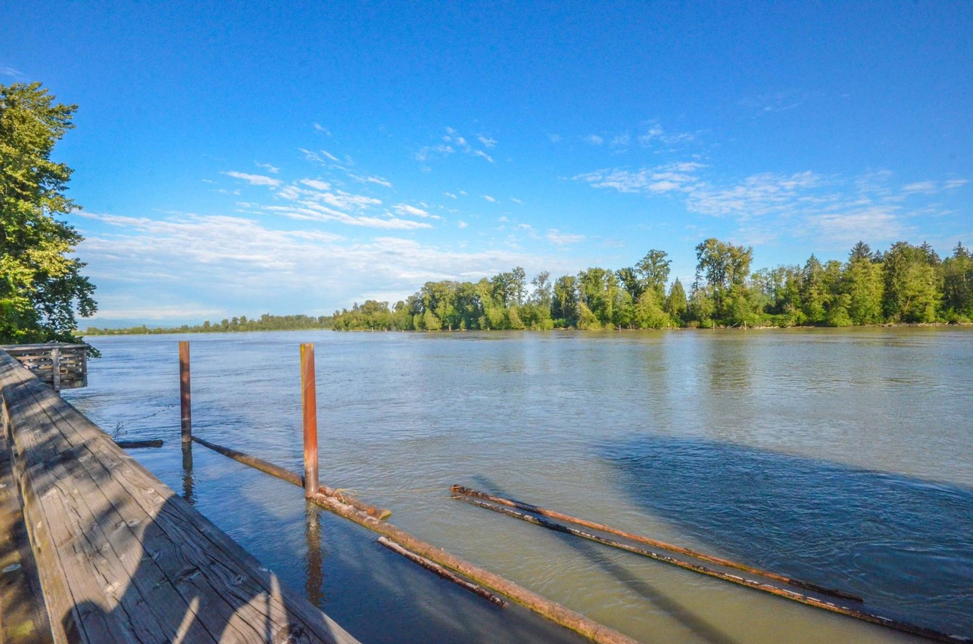 Nestled along the Fraser River w/ an unimpeded view of the water; this homes greets you w/ a lovely front garden & covered deck. Kitch w/ stainless steel appliances, tile backsplash, abundant cabinet spc, dbl sink, & eating bar. Family room offers gas fp housed alongside inlaid presentation/storage area. Glass slider to deck from eating area ideal for sunny BBQs. Formal dining room open to living room offers large windows looking on to river; with a 2 piece washroom on the main level. Three bedrooms up & 4 piece master washroom. Spacious master bedroom w/ lrg walk in closet & 5pc ensuite. Lower level includes rec room & fully plumbed storage area; double garage w/storage completes lovely water view home. Centrally located, offering a river boardwalk; truly offers the best of both worlds -contemporary elegance w/ natural ascetic.