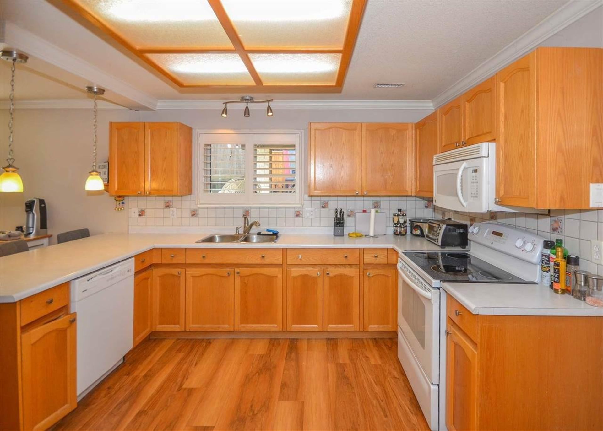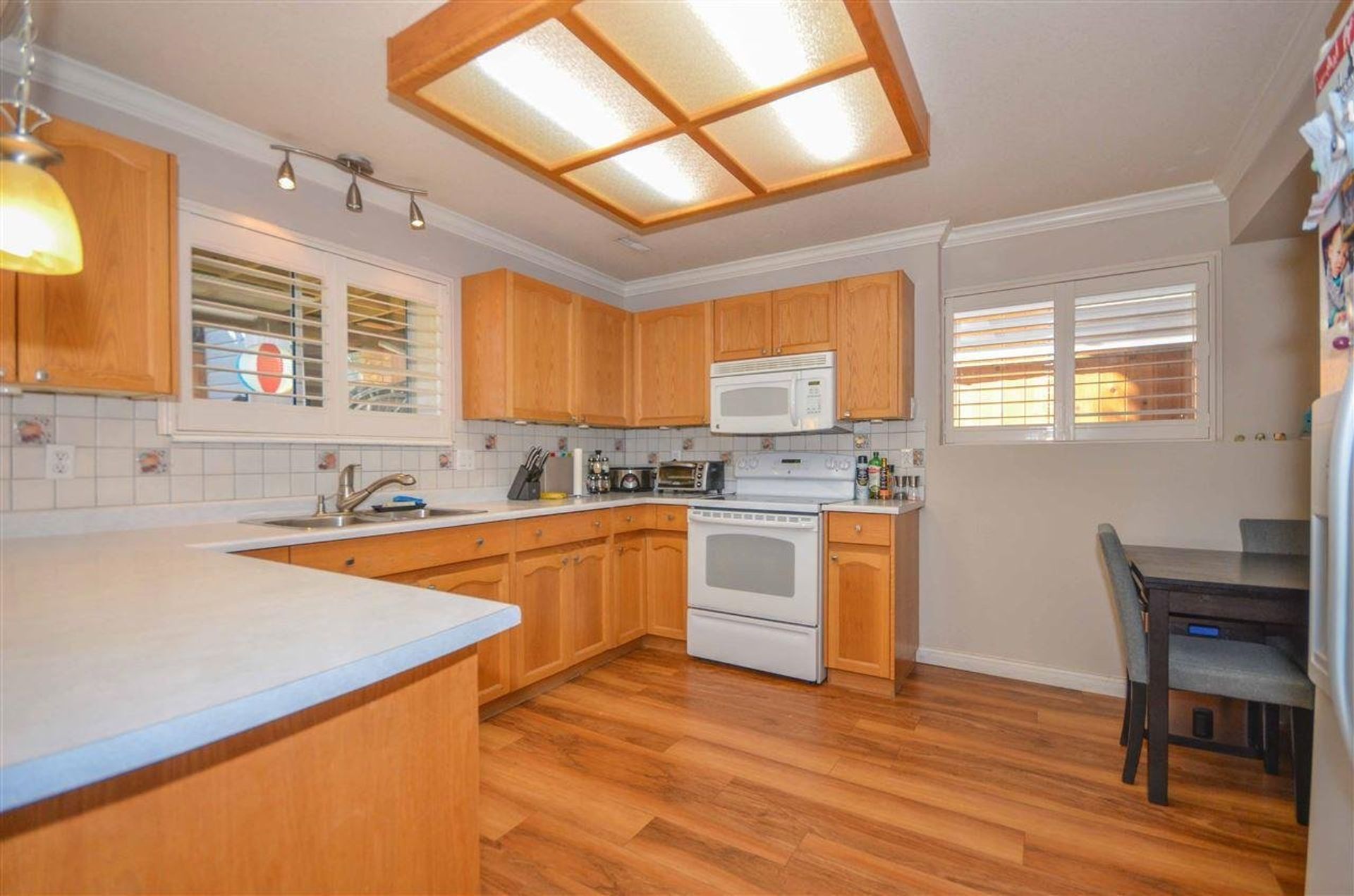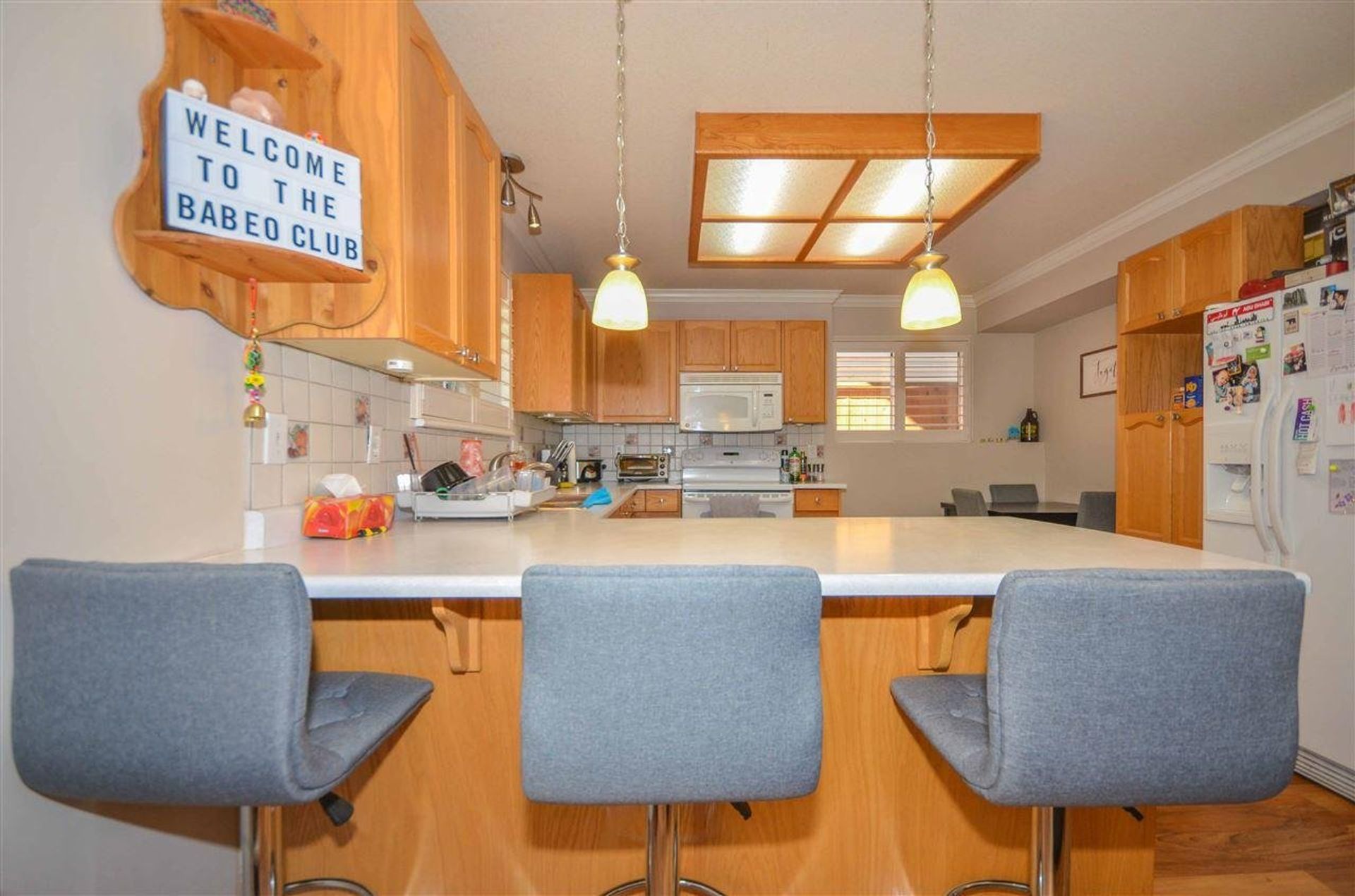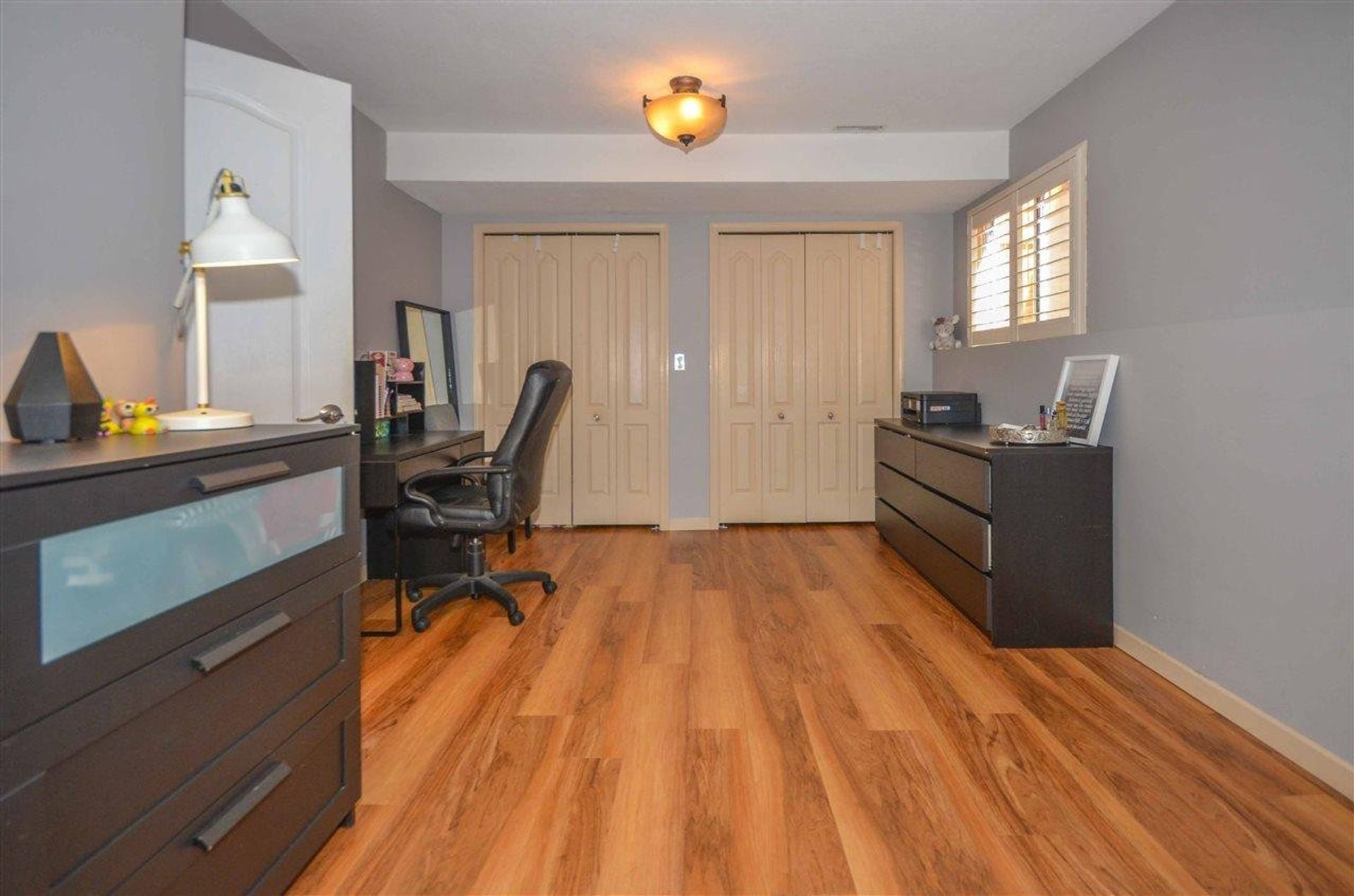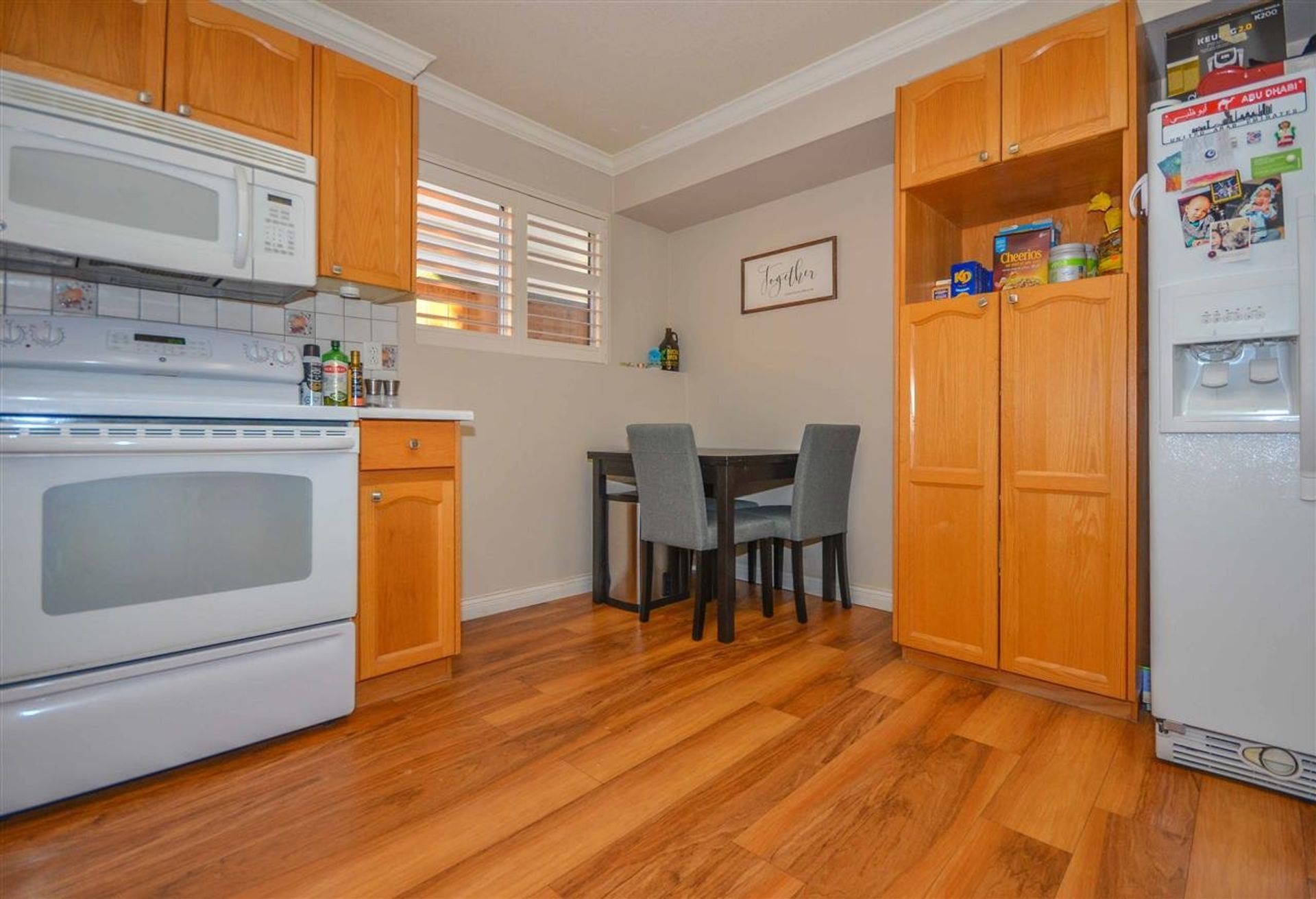 Across from greenbelt, on a quiet street & steps away from Nacht Park. The main level features a large gourmet kitchen with dedicated pantry, abundant storage, oversized island with an eating bar, gas range, built-in microwave, wine fridge, tile floor & backsplash, plus a granite counter; attached eating area includes wrap around bench seating & access to deck & fenced backyard. The dining room has coffered ceiling, pot lights, hutch area, & hardwood flooring & a built in speaker system that is also in the master bedroom. The dining room is open to the living room which has a green belt view. The master bedroom's walk-in closet is fitted with a built in organizer, 4pc ensuite, bay window with bench seating, & wainscotting. There are two additional bedrooms on this level as well as a 4pc bathroom, crown moulding & baseboards throughout. The lower level office (easy 5th bdrm), shared laundry room with separate entrance. The large suite offers an oversized bedroom, living room with gas fireplace, bright windows, full kitchen with dishwasher & eating area.