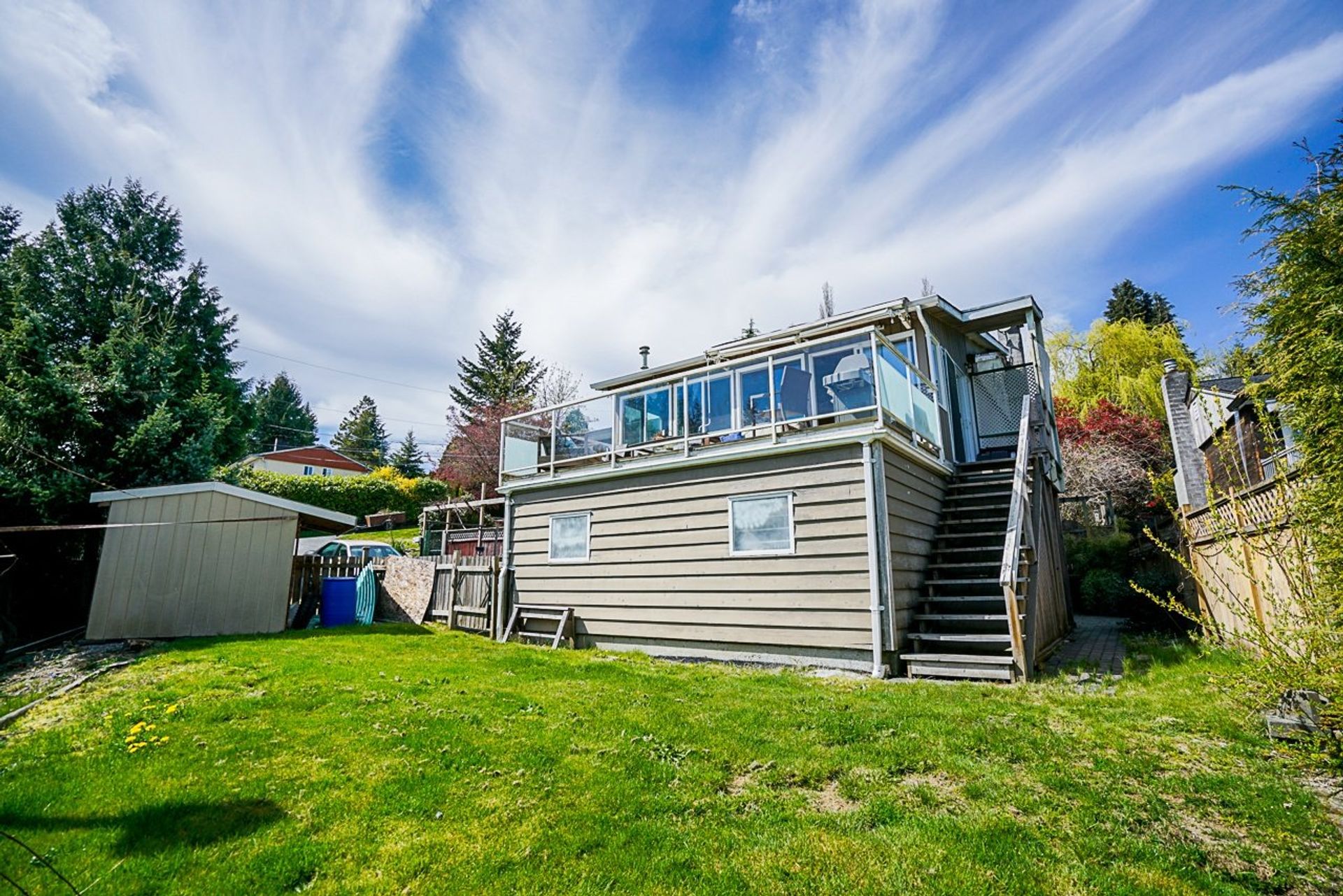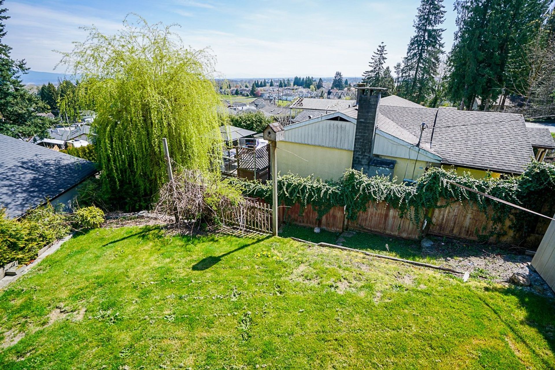 Sweeping panoramic view to the east & Mt. Baker. Over 2,600' of living space with six bdrms & easy to suite downstairs for a 3 bdrm unit. Hardwood floors, bay window in LR, DR & kitchen open, stainless appliances, gas range. Bonus of family rm on main with gas f/p, extra windows for the view, skylights & opens to the deck. Full lower level with huge rec rm, full bath/separate shower, 3 bedroms, lots of options. Dbl garage converted to single & workshop. Full size gated RV storage + tons of extra parking including place for boat/toys. Fenced yard. This corner lot is over 10,000 sq ft! Minutes to schools/parks/trails, easy access for commuters, transit close. Bring your finishing ideas. updated furnace/windows/drainage. 3D tour, floor plan, extra pics, preview safely online rodrhearyan . com