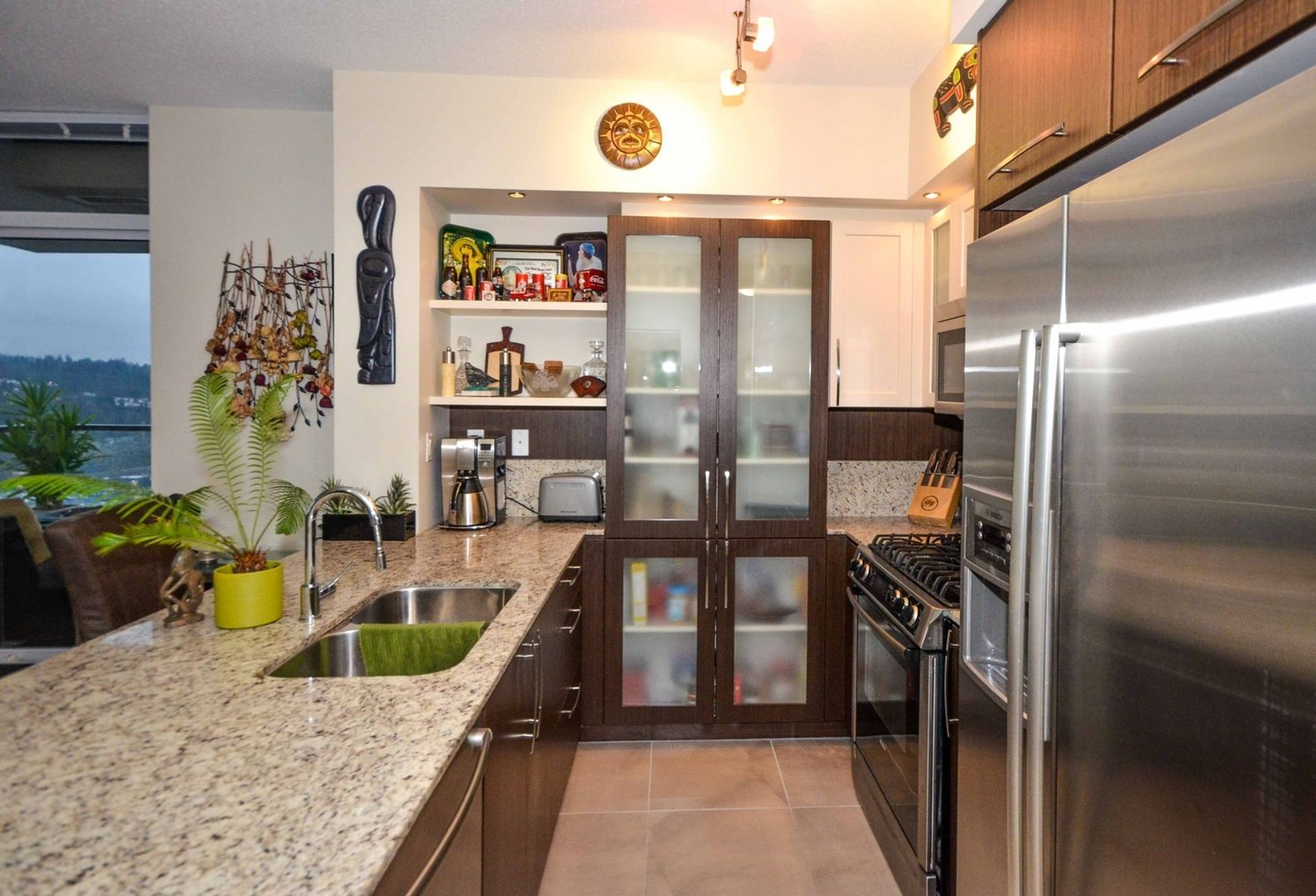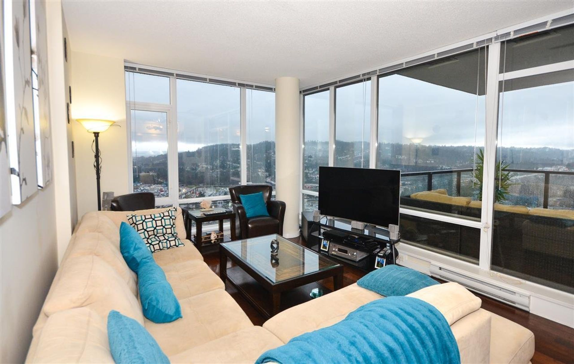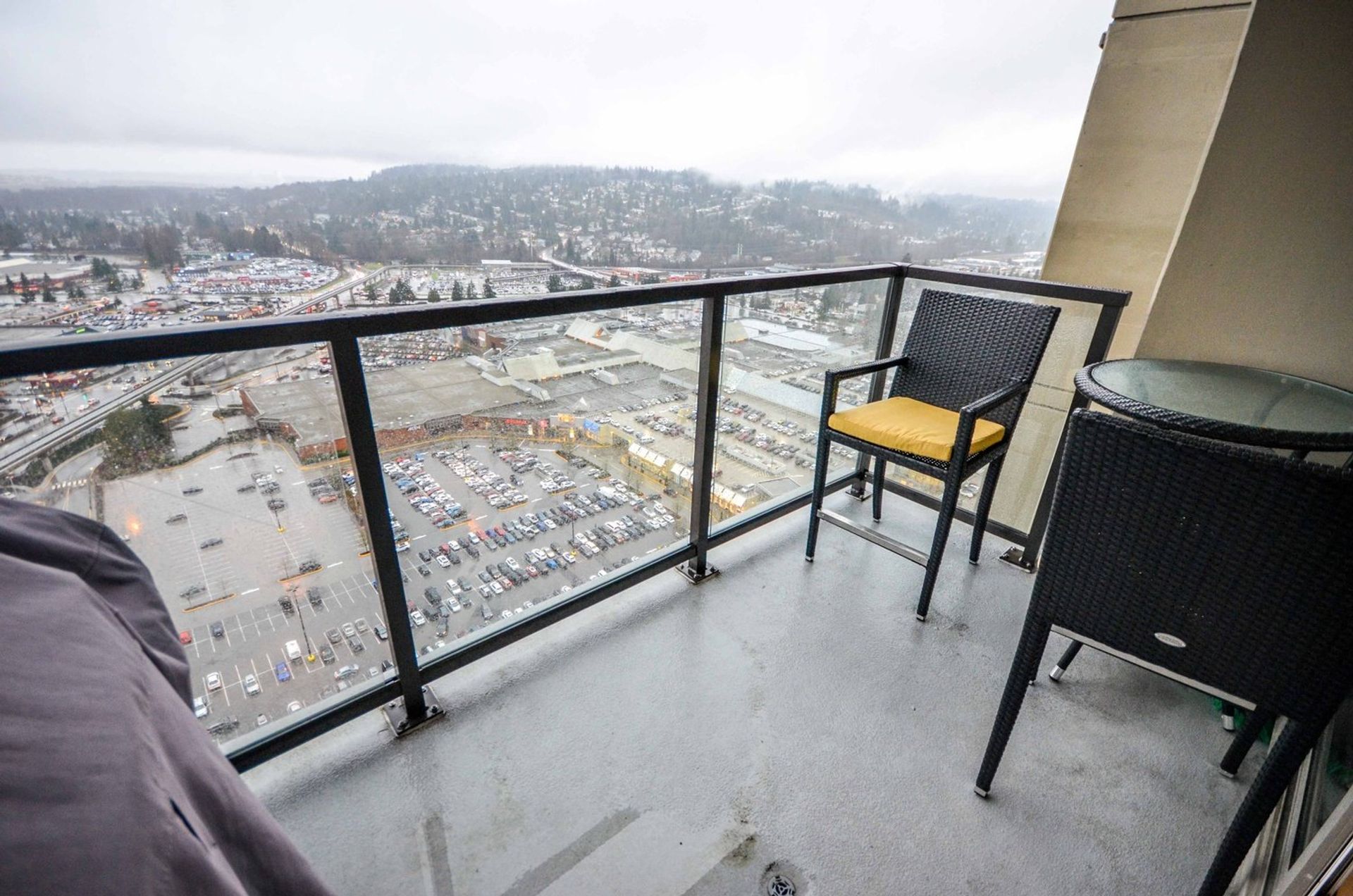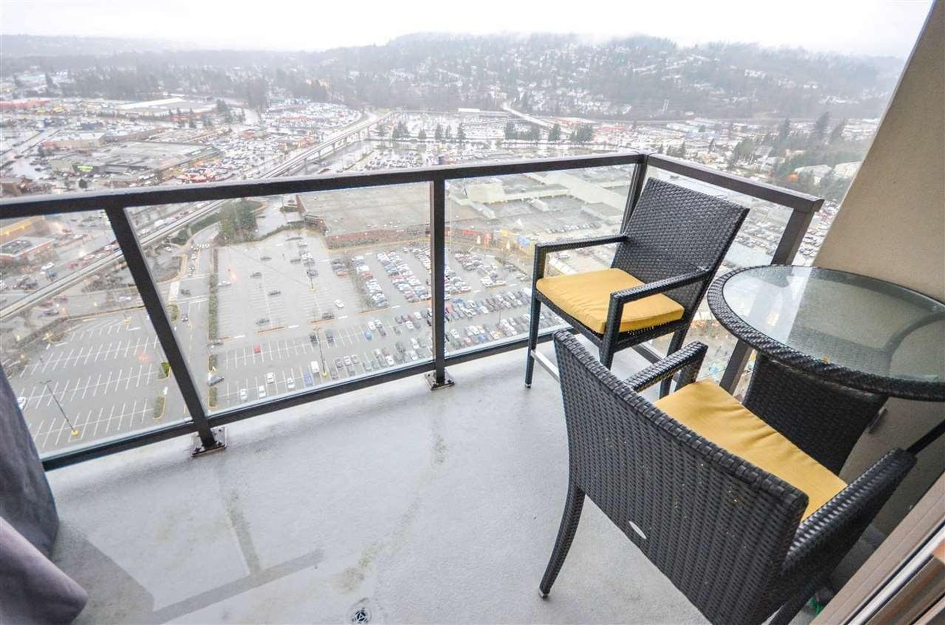 Welcome to 2980 Atlantic Avenue; pristine central living just steps from the Skytrain's Evergreen Line, Coquitlam Centre, Lafarge Lake, & all essential amenities. This two- bedroom, 984 square foot unit, situated on the 33 floor offers floor to ceiling windows and unparalleled views from Golden Ears through to the Lions Gate Bridge. Featuring an open concept living room, dining room, & kitchen with high ceilings, unit 3305 offers potential buyer's a sense of grandeur. The kitchen includes granite counter tops, stainless steel appliances with a gas range, a pantry cupboard, a side-by-side refrigerator/freezer, an eating bar, high end granite back splash, and accent pot lights; perfect for hosting dinner parties and movie nights. The living/dining room features engineered hardwood floors and floor to ceiling windows on two sides offering breath- taking views. Off of the dining room there is an oversized, south facing, covered deck with sweeping views. The deck is spacious enough to comfortably fit a fire pit along with patio equipment and a BBQ. The master bedroom includes a large private covered deck with views towards the Golden Ears Bridge and his and her closets. The five-piece ensuite. Has floor to ceiling subway tiling and side-by-side vessel sinks with chrome waterfall faucets, and a soaker tub; the homes second bathroom is a four-piece including the same ascetic features. The second bedroom has floor to ceiling windows with South East views, as well there is a closet area for in-suite laundry. Atlantic Avenue offers all of its residents a fourth-floor amenity room which has access to a large garden oasis. Centrally located with one of a kind views you need to see for yourself, don't miss out you chance to view this two-bedroom condo.