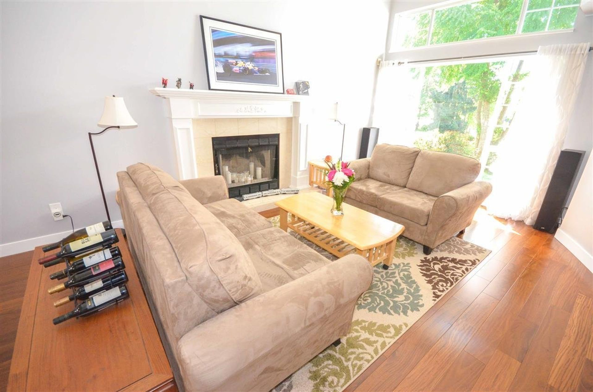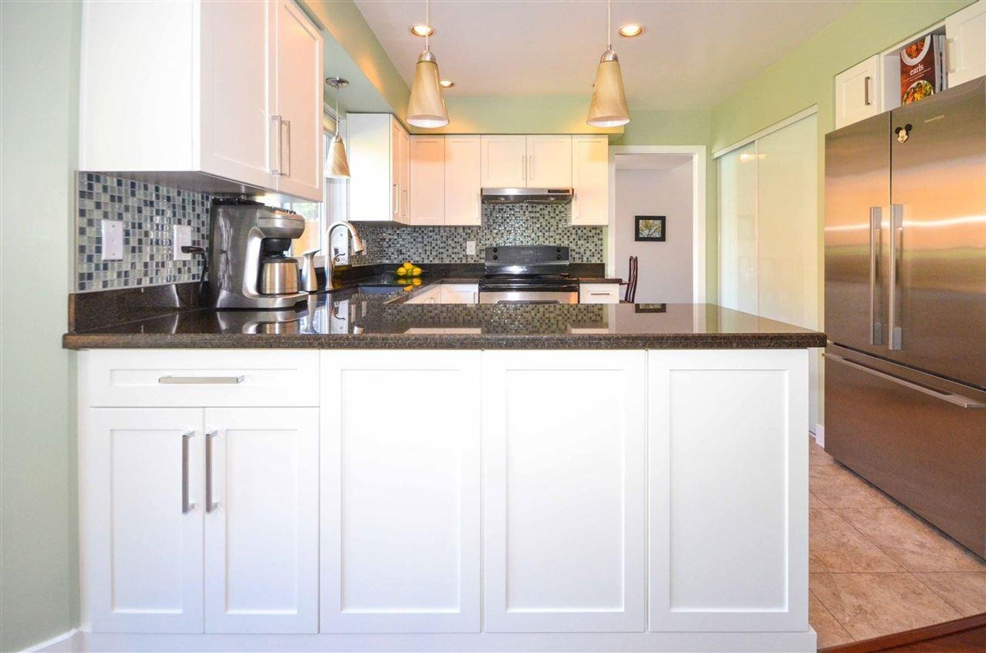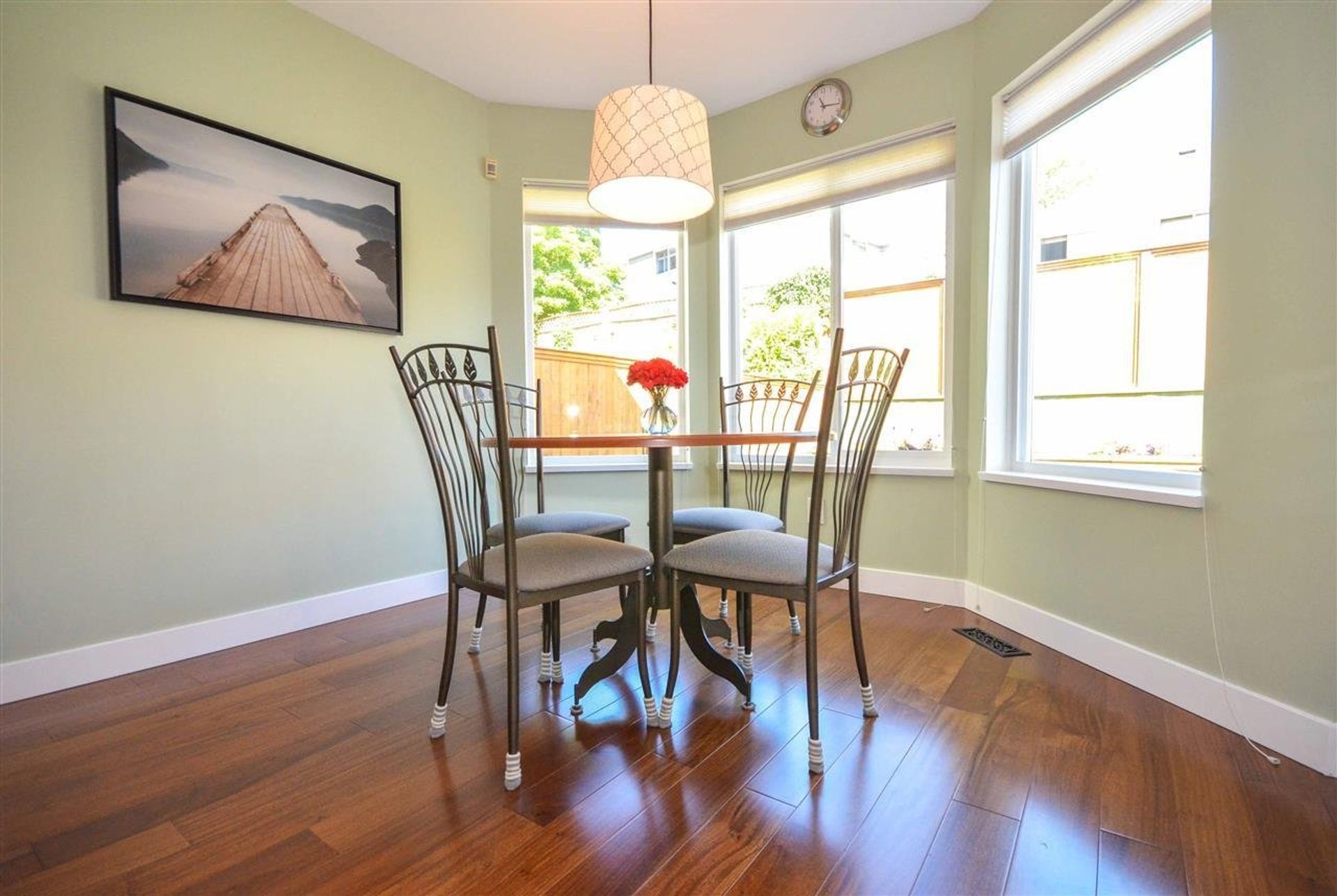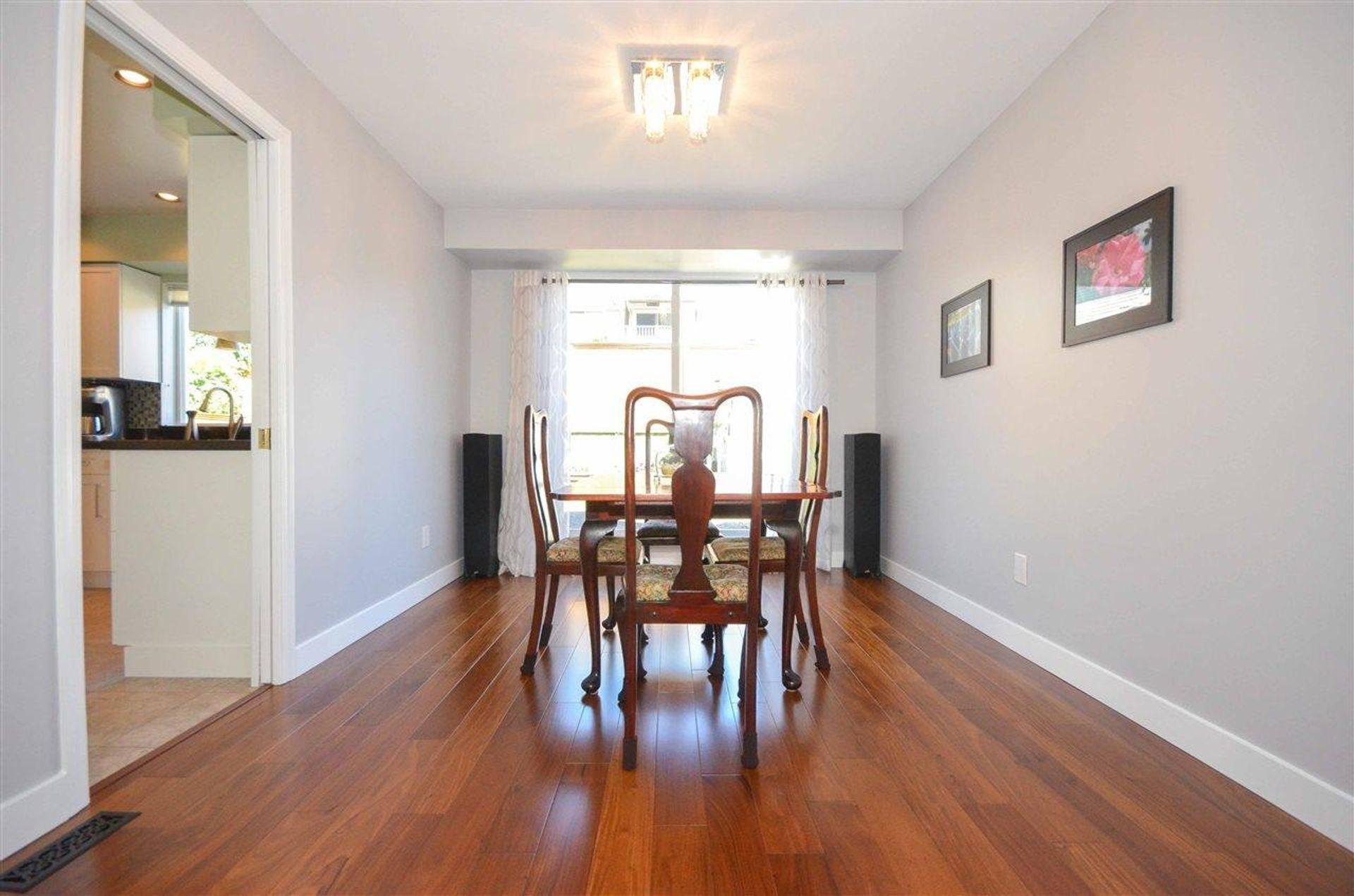 The front yard welcomes you with an established, easy to maintain, (in-ground sprinklers installed) river rock garden, and a covered walkway/entryway. Entering on to the main level of the home you are presented with striking engineered Brazilian hardwood flooring and a living room with vaulted ceilings creating both a welcoming and open atmosphere: the main fire place has been plumbed with a gas line for easy conversion. The kitchen has been fully updated with high end solid maple cabinetry (also updated in both main & master bathrooms), with soft close, dove tailed drawers, and solid granite counter tops. Stainless steel appliances with a tile back splash, a double sink, pot lights & a pantry area complete the kitchens sleek remodel. Just off of the kitchen an eating area sits cloistered in a nook featuring three large windows on to the homes quiet backyard. The main level as includes a dining room with sliding glass doors to the yard, a two piece washroom with brand new low flow toilet (installed throughout the home), and a laundry room with access to the homes two car garage. Along with a heavy duty garage door opener, the garage houses the homes built in vacuum system, and includes built in storage running the length of the garage; there is access to the yard through a side door.