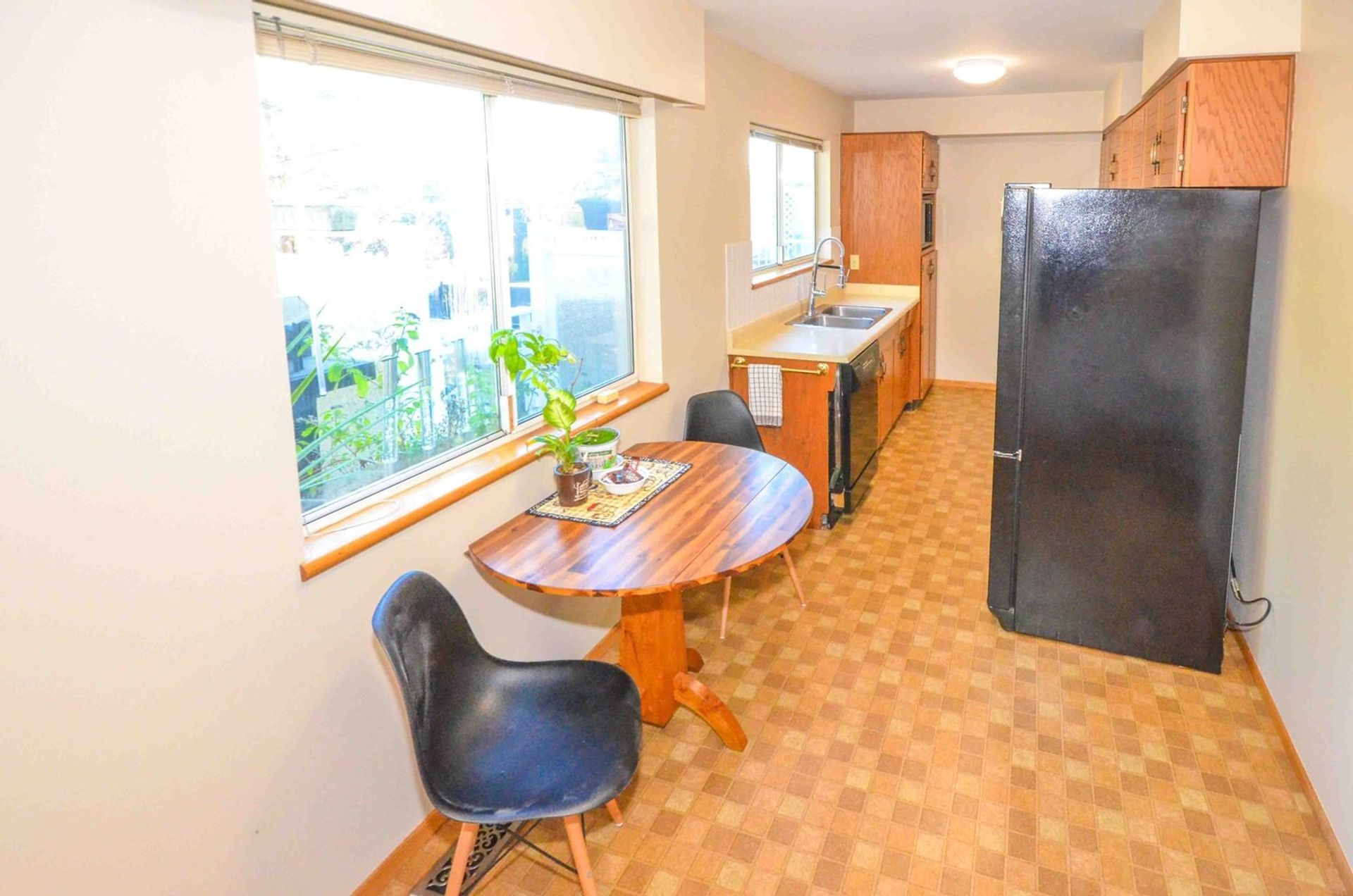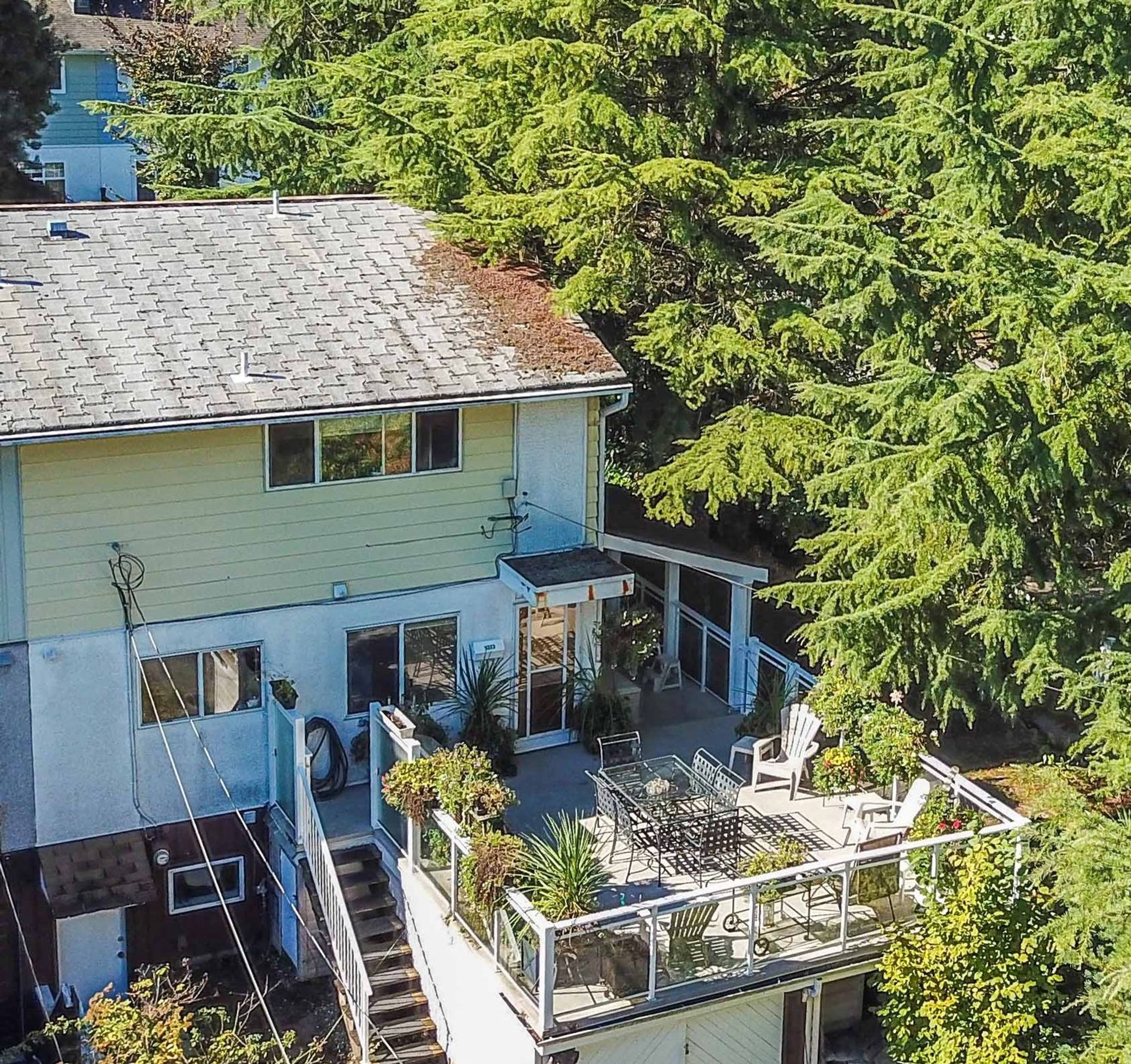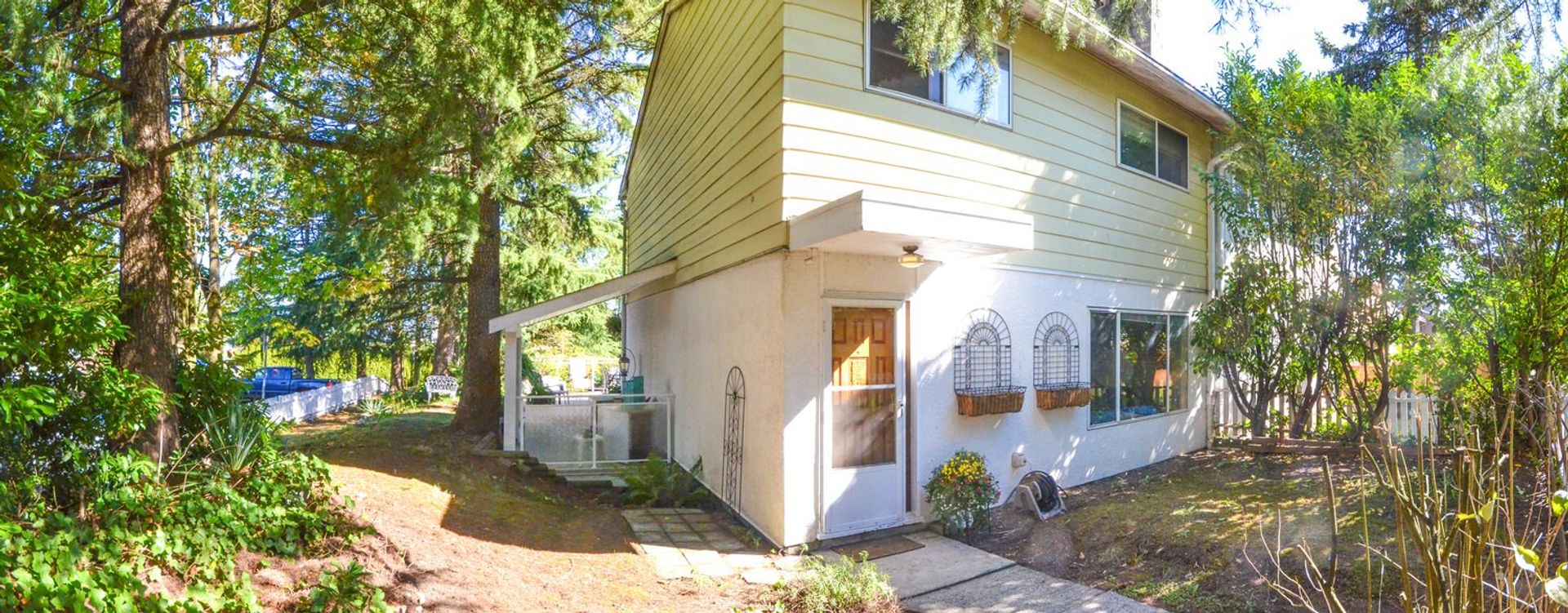 Seller has been busy making improvements, come take a look! Rare opportunity! OUTSIDE CORNER END UNIT ROW HOUSE, NON STRATA, NO FEES, NO RULES. EXCEPTIONAL opportunity to own this park like 5,112 square feet property where you have your own front/back/side yard, and 500 sq ft of deck for your privacy & enjoyment. Plus you have single garage, long driveway & bonus parking! This spacious home is 1,953' on 3 levels, ample space for all your needs. Large living rm, formal dining plus eating area in kitchen. Roughed in bath on the main is currently a pantry. Three beds up, master with walk-in closet (make into ensuite) plus 2nd closet. Downstairs 20x12' rec room, two piece bath & laundry with access to backyard. Fantastic 19x20 view deck plus 8x14 covered side deck for year around use. Bring decorating ideas and make this your home, the price reflects the need for updating the inside of the house. Transit/schools/park are all close. Immediate possession.