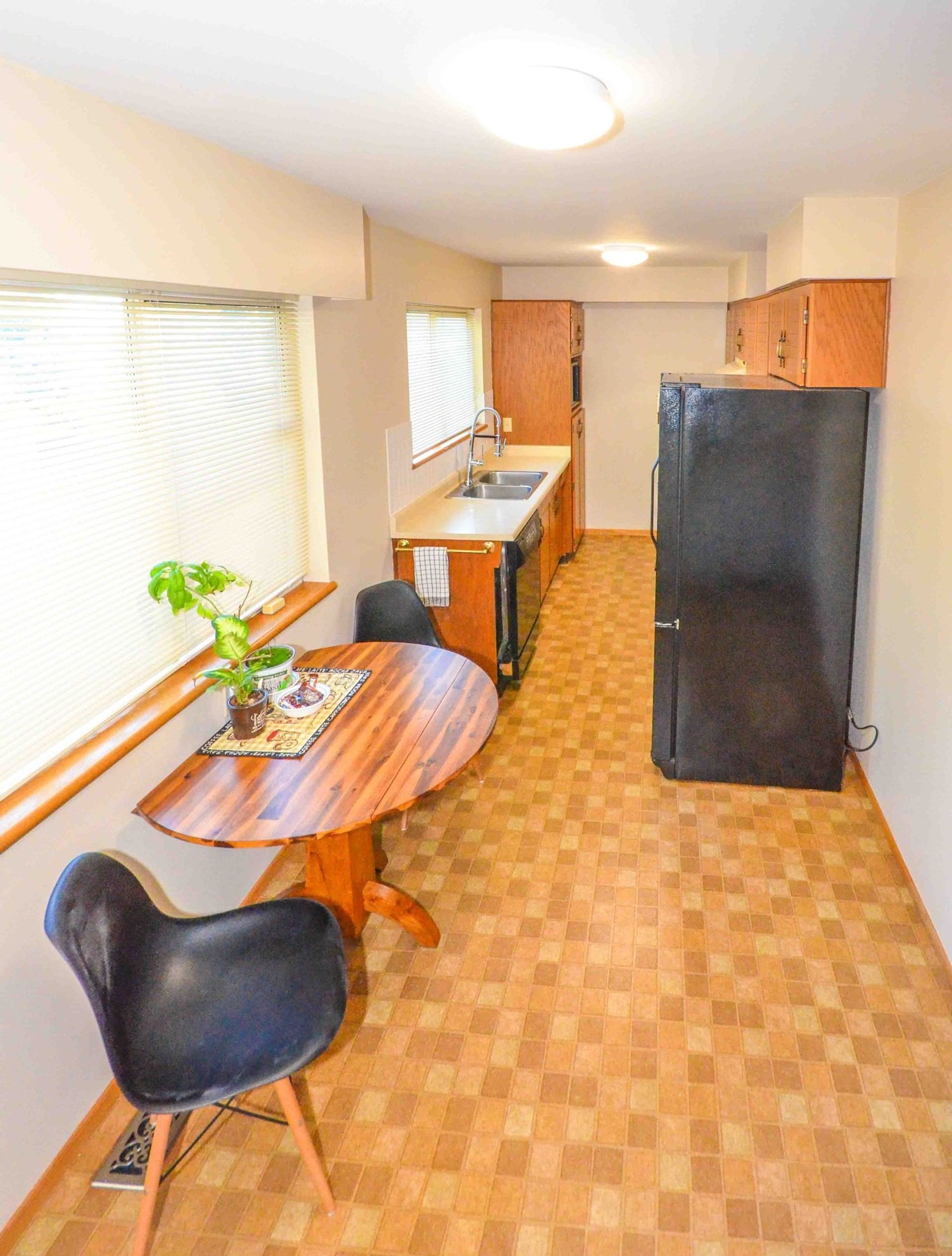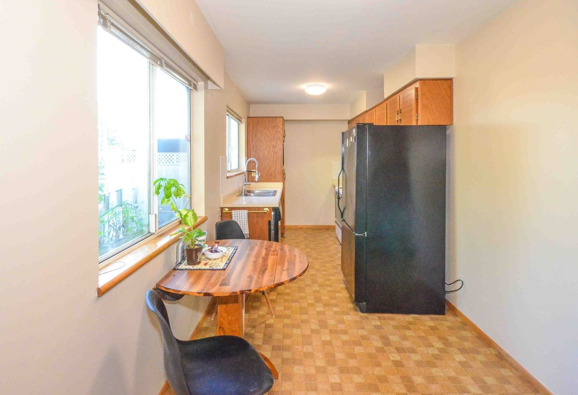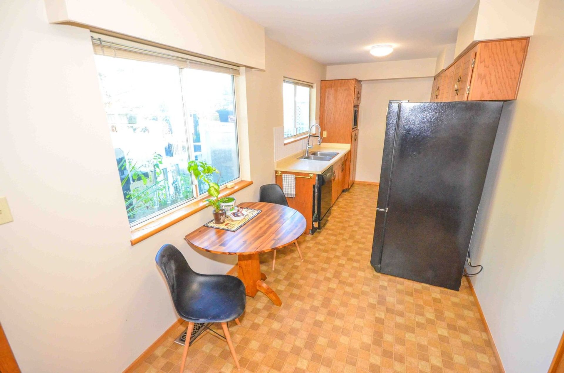 Seller has been busy making improvements, come take a look! Rare opportunity! OUTSIDE CORNER END UNIT ROW HOUSE, NON STRATA, NO FEES, NO RULES. EXCEPTIONAL opportunity to own this park like 5,112 square feet property where you have your own front/back/side yard, and 500 sq ft of deck for your privacy & enjoyment. Plus you have single garage, long driveway & bonus parking! This spacious home is 1,953' on 3 levels, ample space for all your needs. Large living rm, formal dining plus eating area in kitchen. Roughed in bath on the main is currently a pantry. Three beds up, master with walk-in closet (make into ensuite) plus 2nd closet. Downstairs 20x12' rec room, two piece bath & laundry with access to backyard. Fantastic 19x20 view deck plus 8x14 covered side deck for year around use. Bring decorating ideas and make this your home, the price reflects the need for updating the inside of the house. Transit/schools/park are all close. Immediate possession.