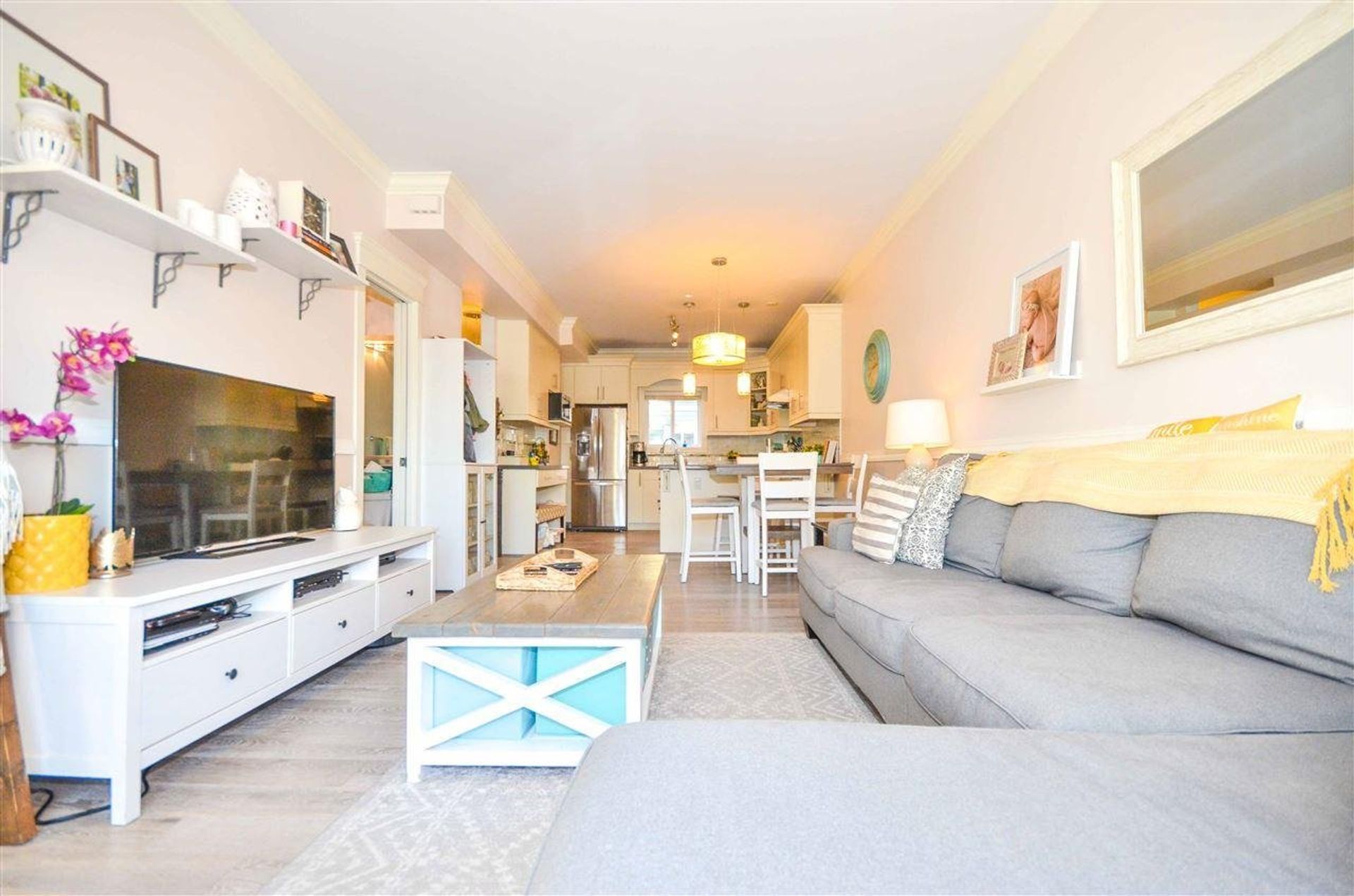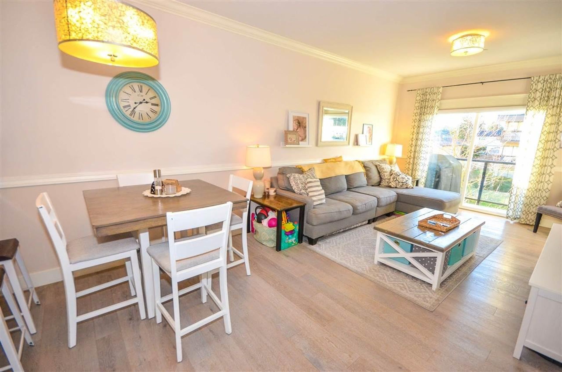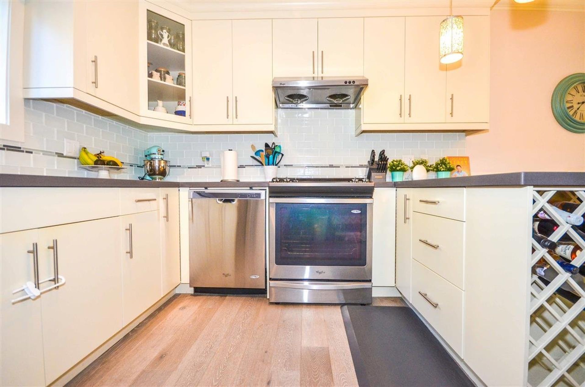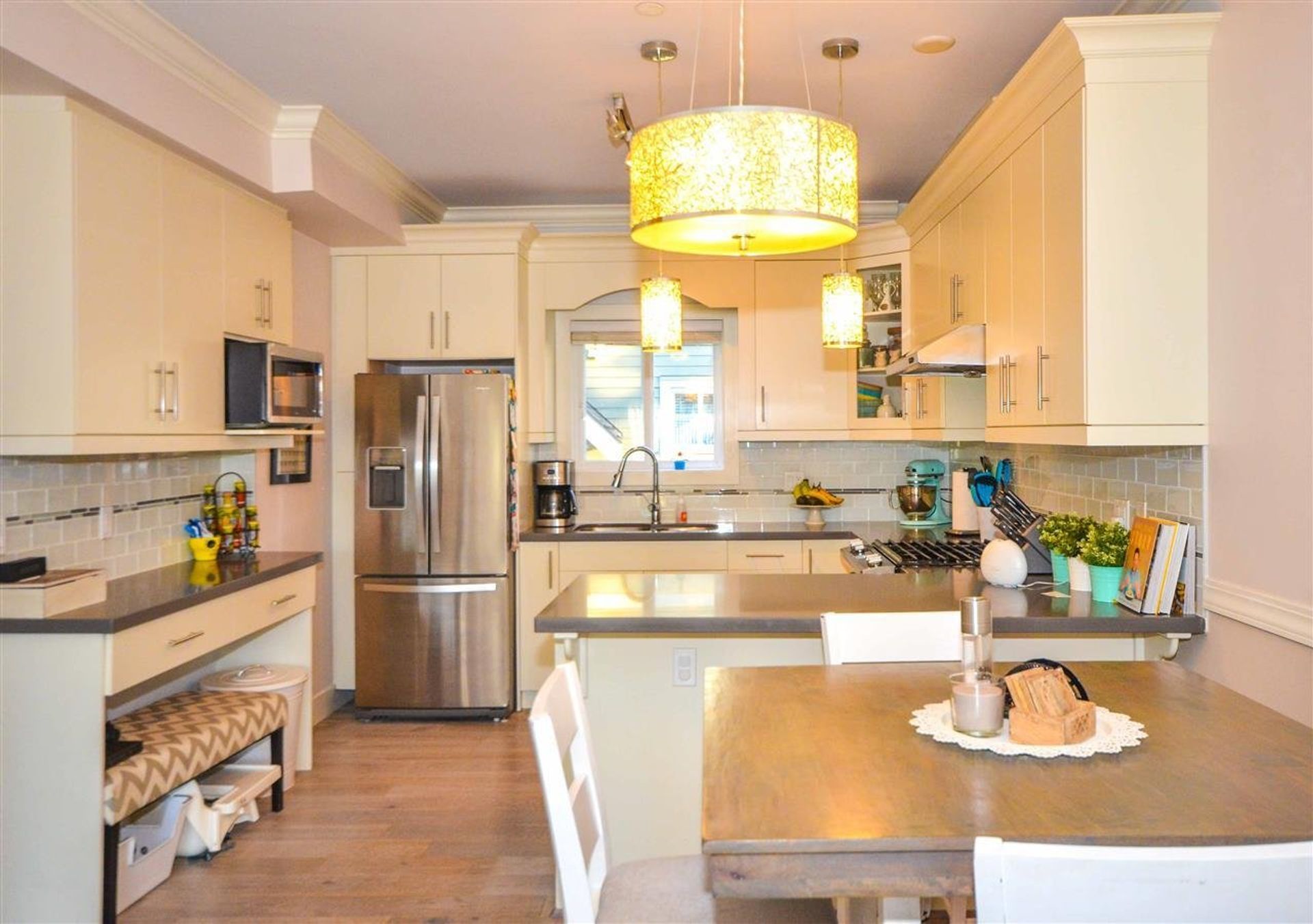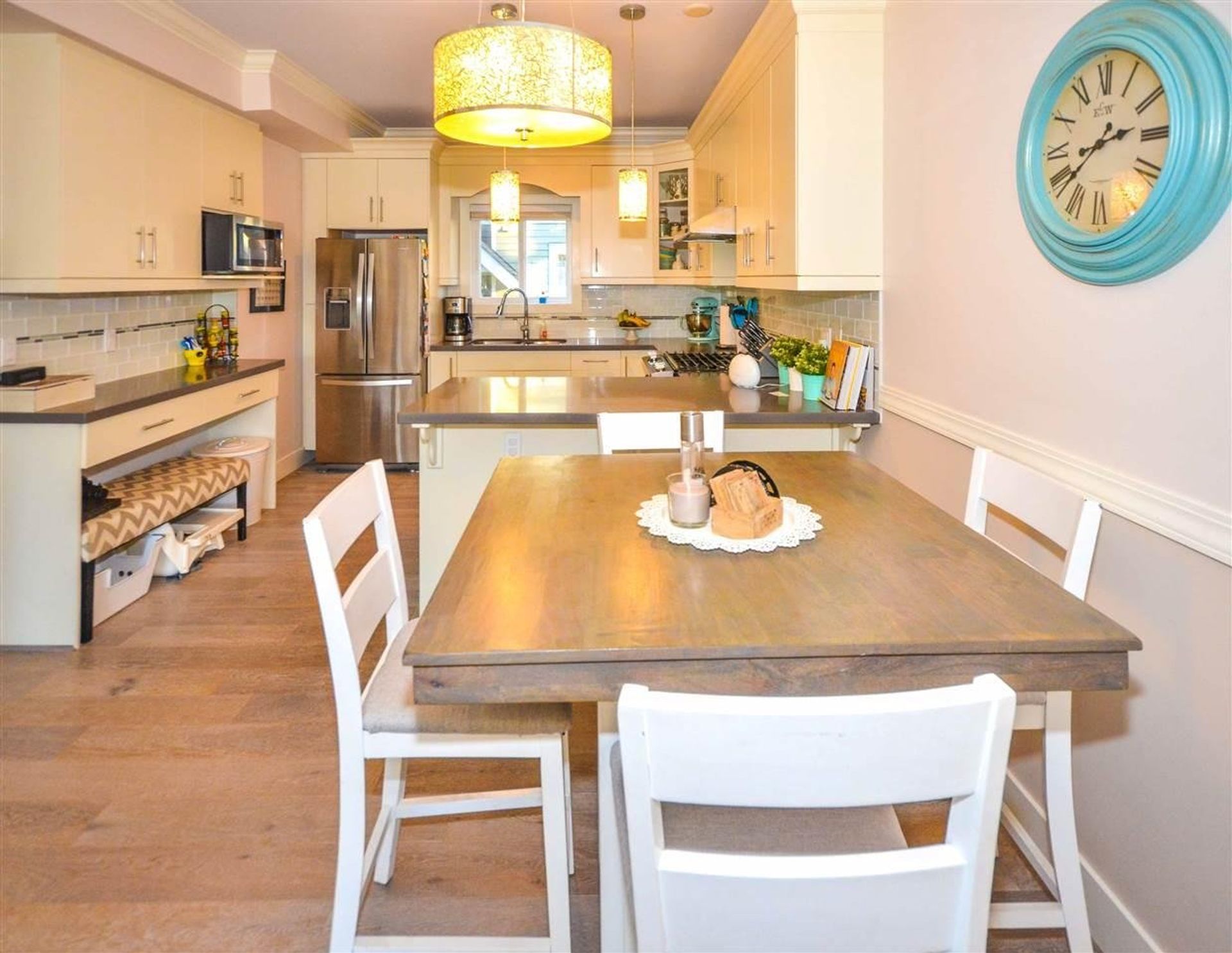 3488 Sefton Street welcomes you amidst a quiet courtyard—complete with sitting area & gardens—to your new home. With a modern designer grey and white colour scheme throughout, this unit feels both spacious and bright; crown mouldings, baseboards, and elegant door trims contribute to the sense of elegance. The main floor features nine-foot ceilings & an open concept in line with the latest contemporary design. Quartz counter tops adorn the kitchen's gourmet layout; a gas range, tile backsplash, ample quiet close cabinetry, eating bar, dedicated work station, wine rack, and picturesque window overlooking the courtyard complete the kitchen. Engineered flooring stretches the breadth of the main's floors kitchen, dining room, and living room area which culminates in sliding doors on to a west facing deck (room for a BBQ) which offers park and mountain views. The main level also boasts one of the homes three washrooms; a two piece with subway tiling and a quartz counter. Two bedrooms reside on the upper level both with deep closets and light grey engineered hardwood. The master bedroom includes a three-piece ensuite with a large shower and the same finishings as the main level’s washroom; the second washroom upstairs is similarly enriched with the addition of a large soaker tub. With no upstairs neighbours and two parking spots this centrally located home is walking distance to most amenities, close to Lougheed Highway, and five minutes from the Evergreen Line.