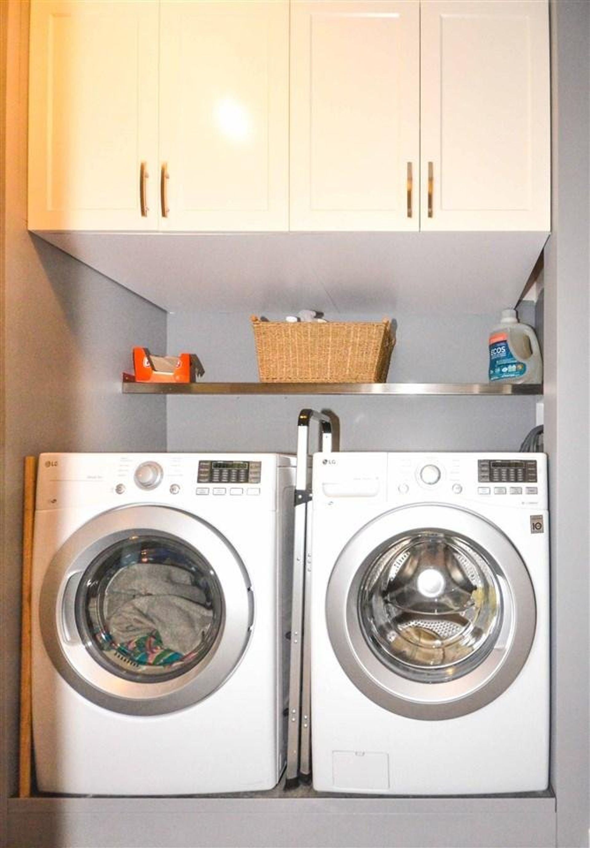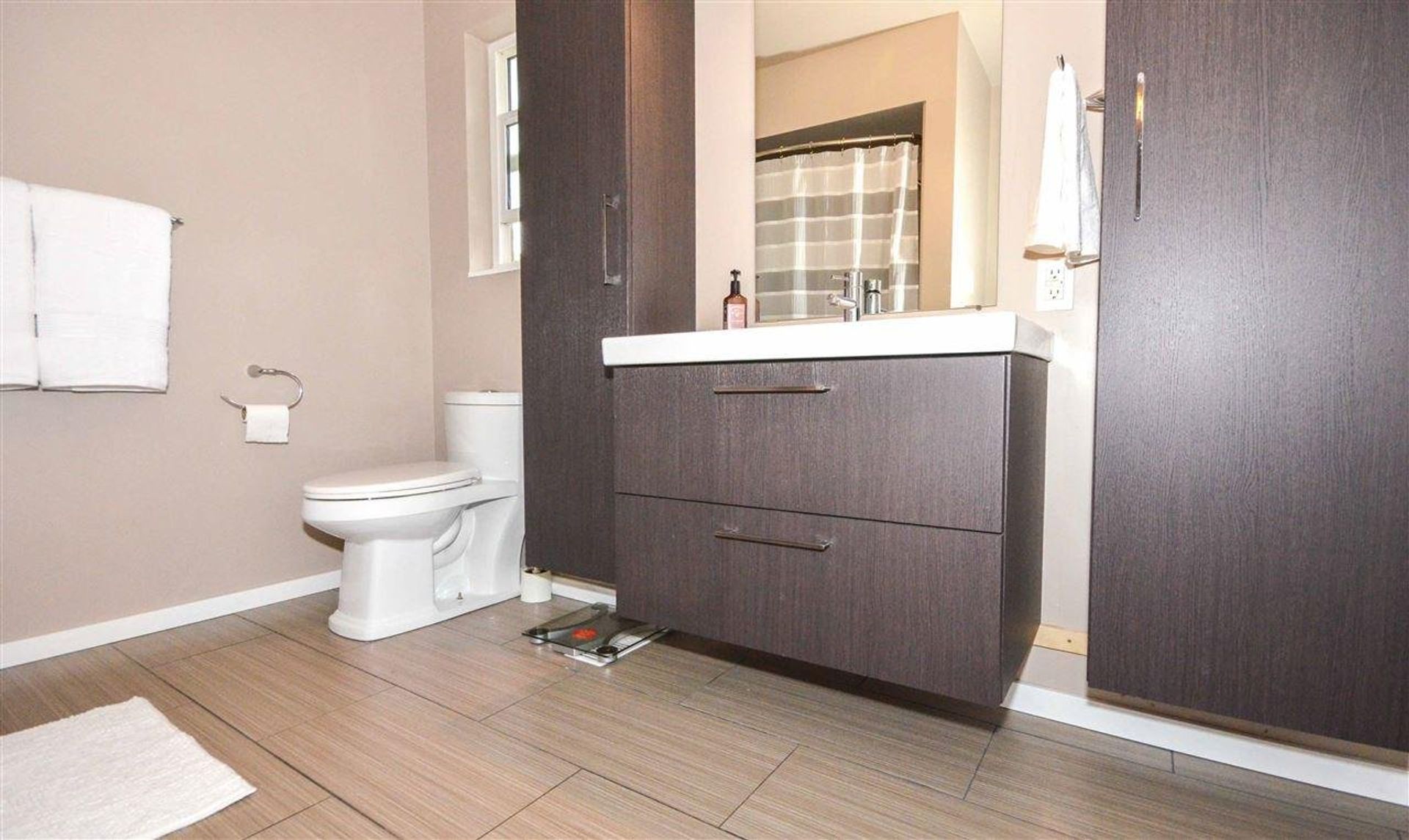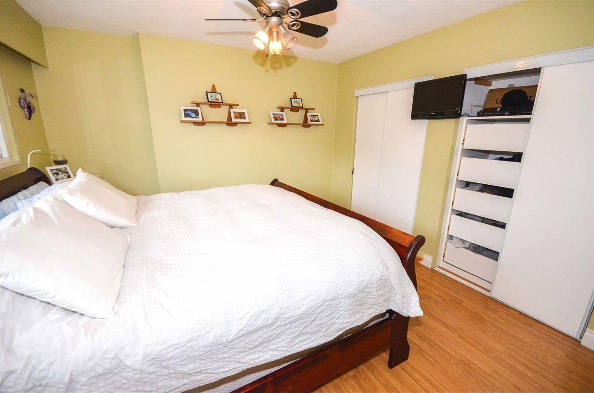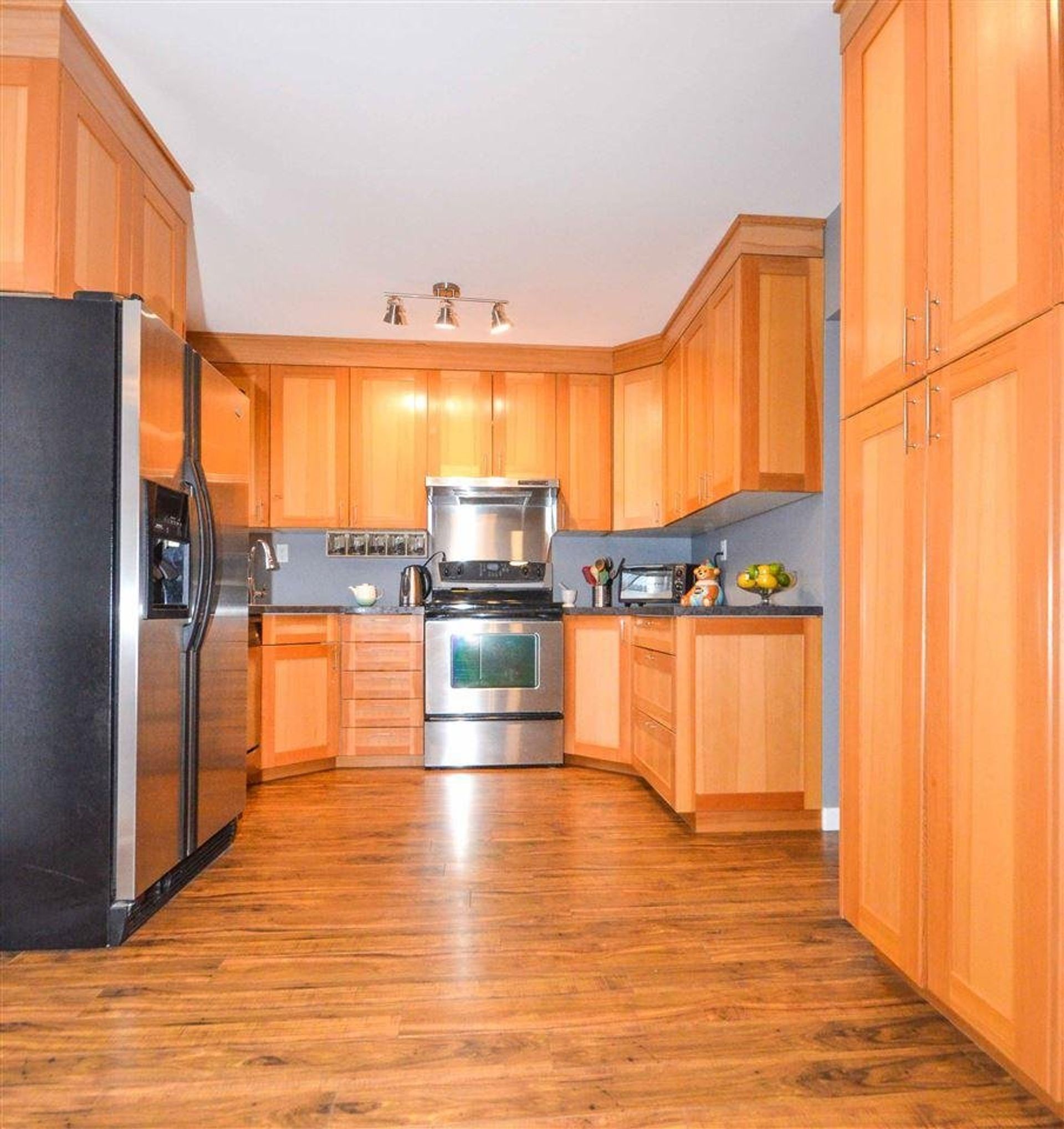 NON STRATA row home; no rules, no fees. RENOVATED, move right in! Living room looks out to your private garden. Open dining room & kitchen; stainless-steel appl, generous cabinet spc, 'green-house' window. New 2 piece bath on main. Upstairs 3 bdrms & washer/dryer. Spacious mbdrm w/ custom his/her closets. Updated cheater ensuire w/ soaker tub & subway tile. Downstairs lrg recrm roughed in fp & plumbing for bathrm. Large utility /storage rm, access to yard. Private fenced backyrd, lawn, covered deck gas hookup. Bonus single garage/workshop. Front yard patio & garden faces green way buffer. Updated laminate floor entirety main lvl plus doors/hardware/dbl windows throughout; high efficiency furnace. Steps to parks/schools/transit.