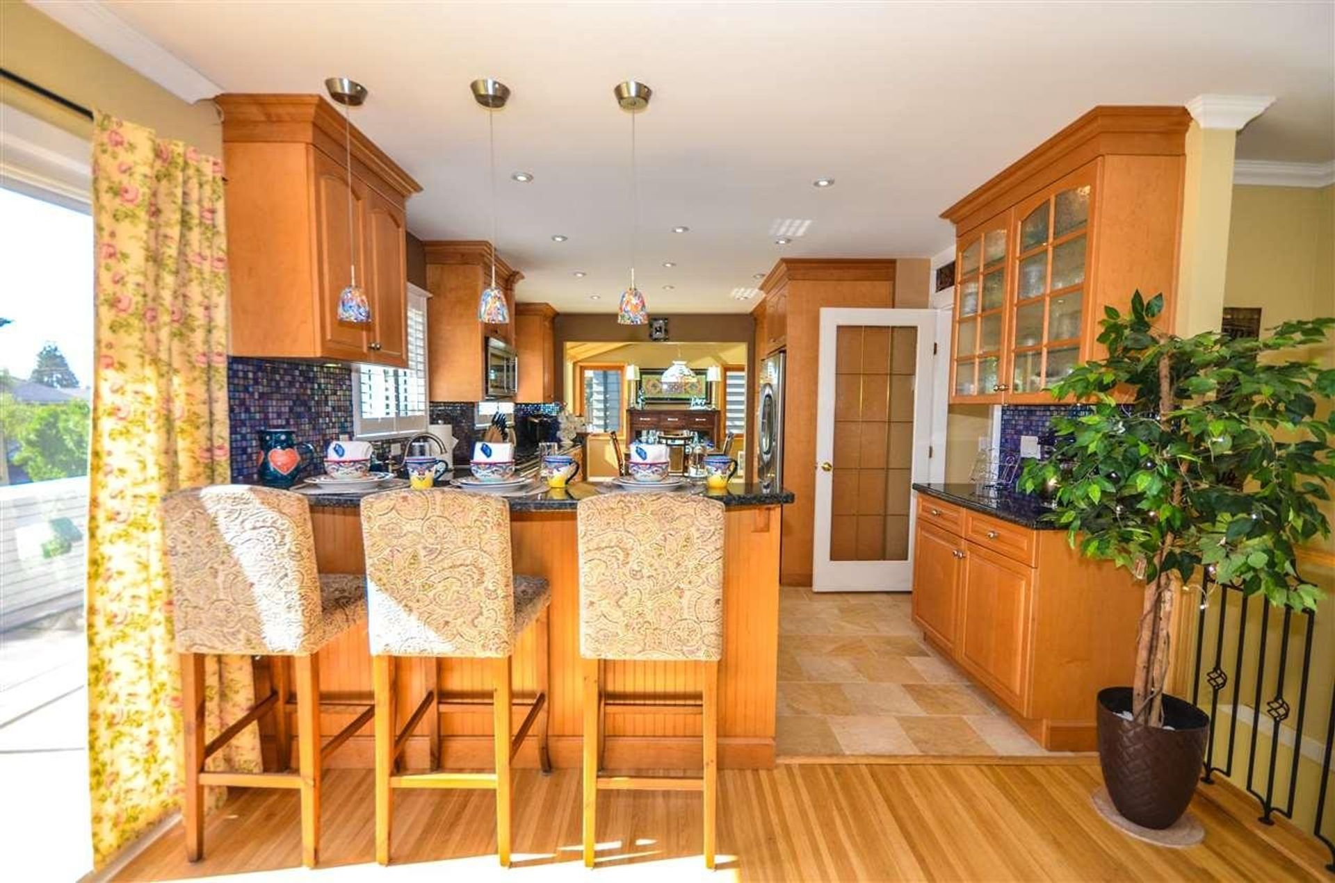 OPEN HOUSE CANCELLED. FIRM OFFER You will not be disappointed in this lovely updated basement entry home. Situated on quiet street & backs onto park this home has so much to offer. You enter your new home from a covered porch to a spacious tiled foyer. Upstairs features a great room w/original hardwd floors, gourmet kitchen & dining rm. Kitchen:eating bar, granite counters, built in appliances, maple cabinets, dining room semi vaulted ceiling French doors to covered back deck. This area is made for large families & entertaining. 3 spacious bedrms, renovated main bath w/custom rain shower. Heated tile floors, crown moldings. Down has lots of windows; huge family rm, 2 spacious bedrms & updated bath. Easy to suite if desired.