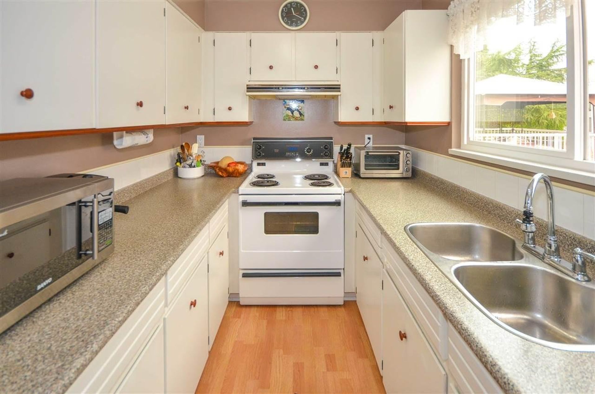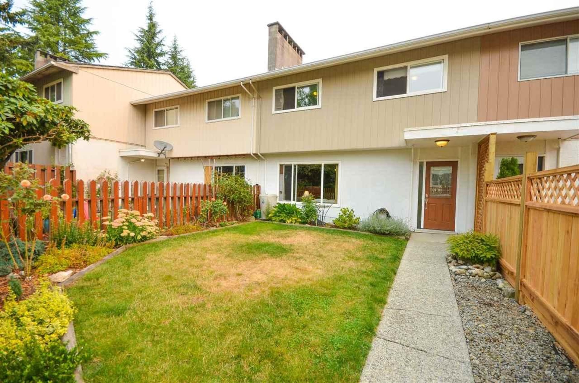 This row house has not strata, rules, or fees. Fully fenced front yard with roses & easy to care for perennial garden on quiet green space. You enter the front foyer to the main level; living, dining rm, & kitchen/eating area. Great mountain & river views from kitchen & lg back deck that is partially covered for year round use. Upstairs 3 bedrms/full bath, spacious master bed features walk in closet, recessed desk area. Full bsmt, including large family fm & ldry/utility rm with roughed in plumbing for 3rd bathrm, offers numerous options for families. Extra long drive & backyard allow for buyer to craft the space to their needs. Single garage, rv/boat parking. New roof, & electrical panel, updated furnace, windows, deck. Won't last!