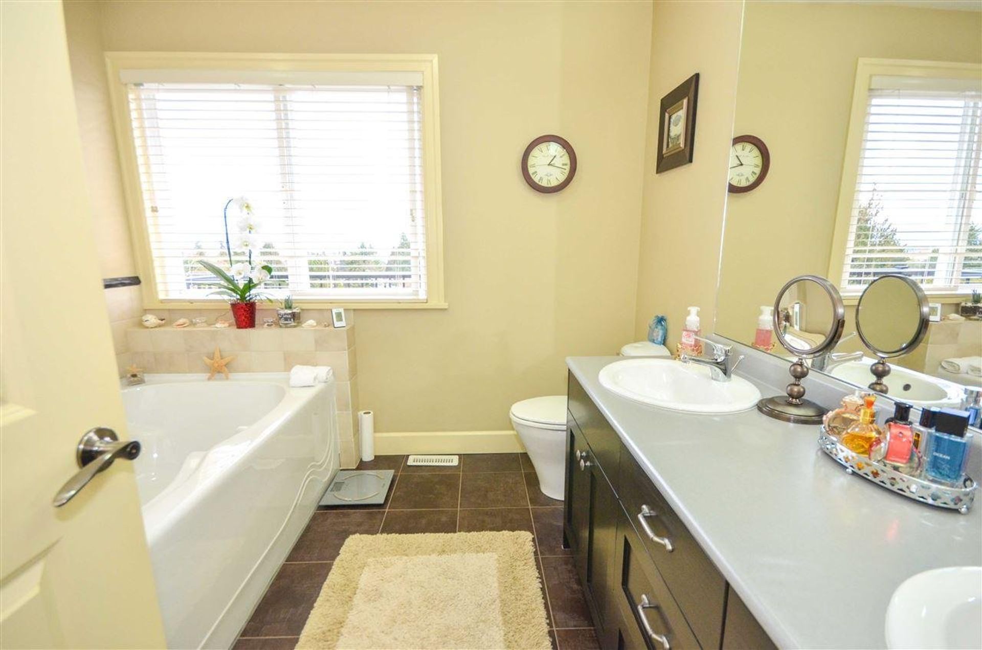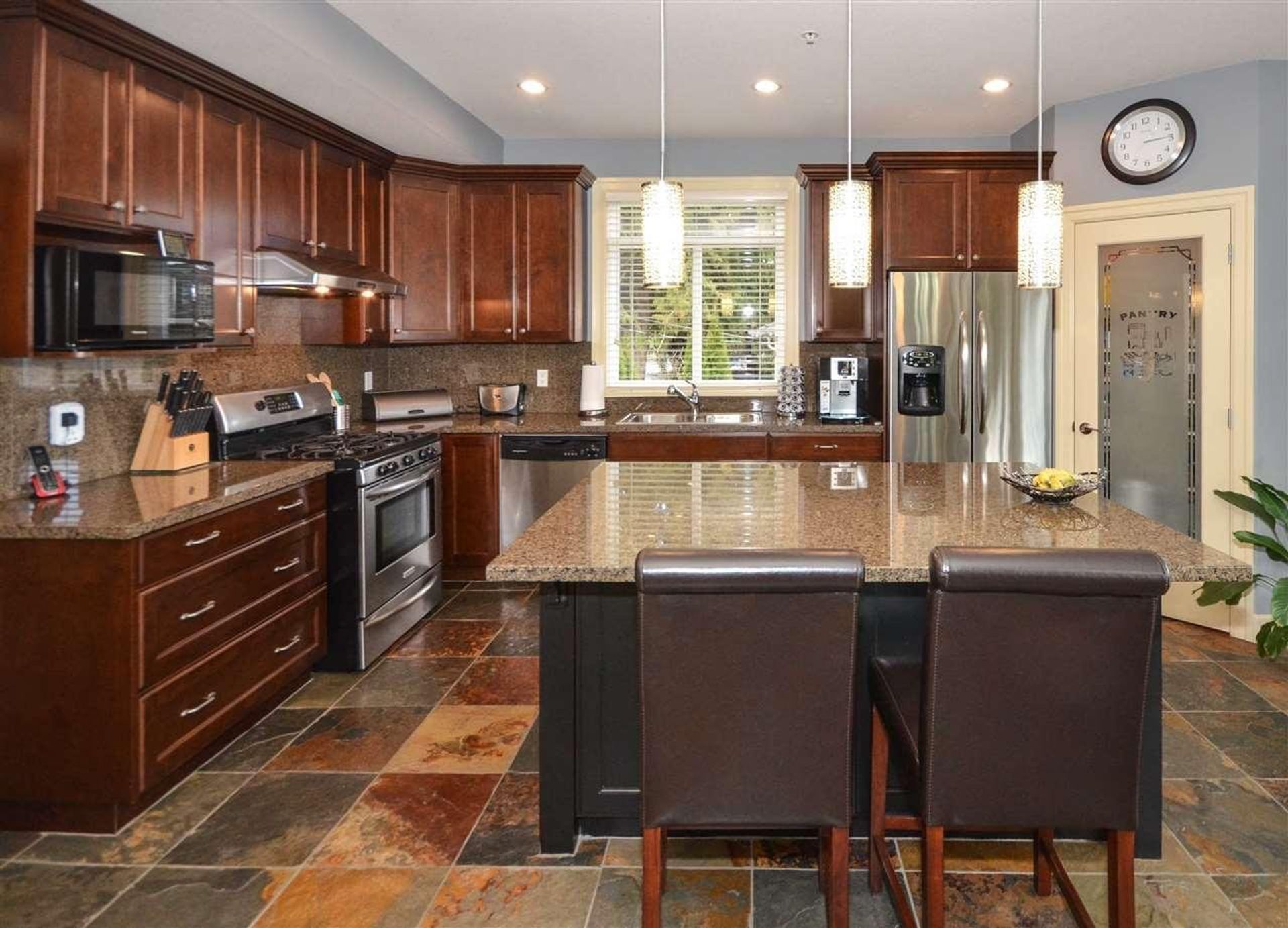 IMMACULATE spacious home on large private lot with big mountain VIEWS to the east. Covered entry welcomes you home to this 3,100' three level home. Main floor features slate floors, formal dining rm with vaulted ceiling, open concept kitchen/eating area/family room. Kitchen with granite counters/eating bar, gas range, pantry, family rm big windows, gas fp. Covered deck off the kitchen for entertaining. Upstairs three bedrms, lg master has balcony to maximize the view, five piece ensuite. Downstairs well laid out 2 bedrm suite, full kitchen, separate laundry, patio. Huge lot landscaped for privacy. Gated driveway/lane access. Schools/transit/by-pass only two minutes away. Your new home is move in ready see 3D tour attached.
