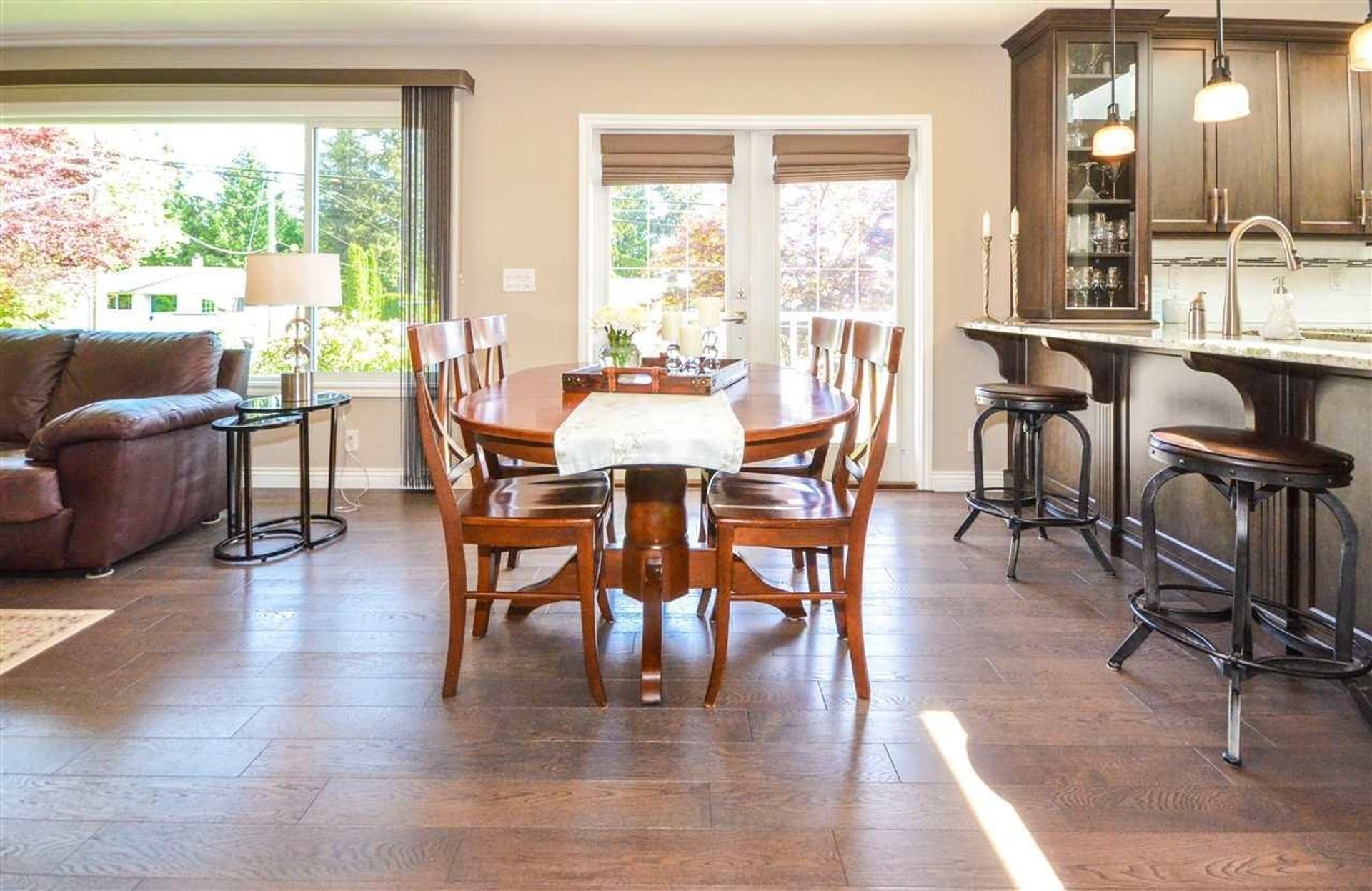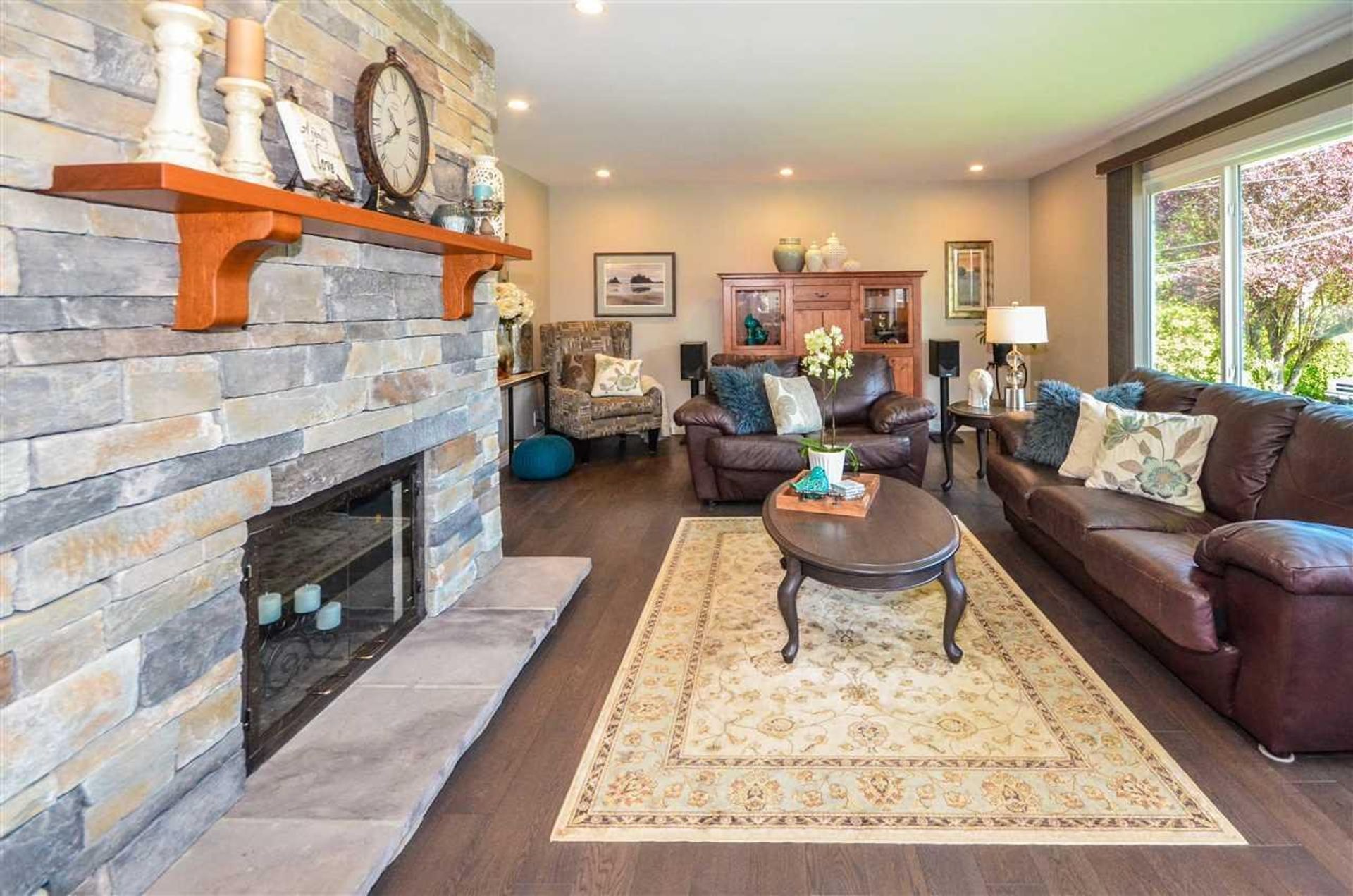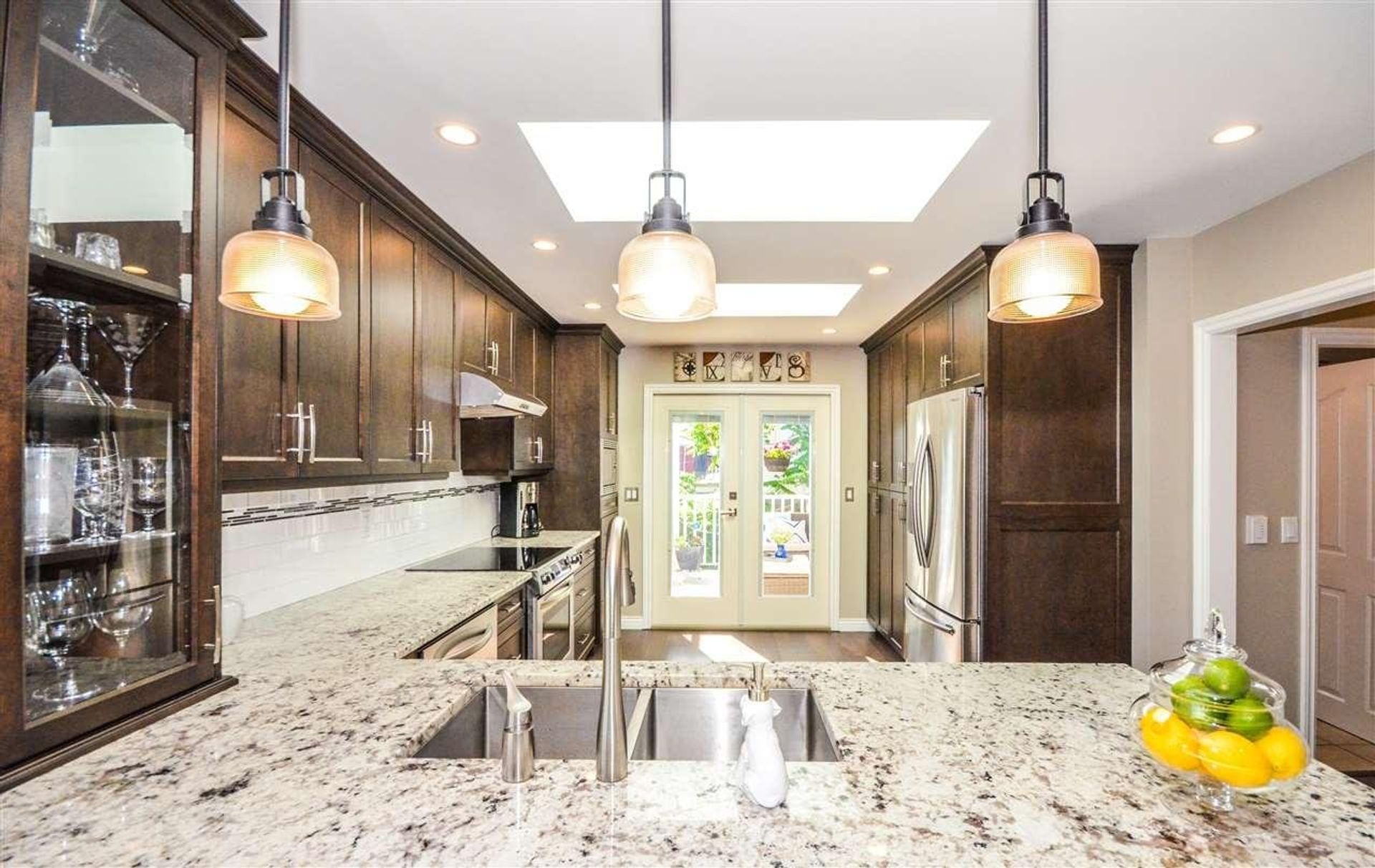 IMMACULATE basement entry home backing onto the park. Great room concept full reno 2015, engineered hardwd, pot lighting, French doors, custom stone fp. Design kitchen; granite counters/eating bar, s/s appliances, tile backsplash, silent close cabinets/pantry cupboard, skylights. THREE spacious bedrms up; updated doors/molding. Bright lower level easily converted to ground lvl suite. Incl lrg recrm w/picture window & gas fp, lg bedrm, computer station, mudrm/laund rm, ample storage & full bath. Beautifully landscaped fenced yard w/shed. Wrap around partially covered VIEW deck for summer entertaining. Dbl garage/dream shop w/sub panel power, lg rv/boat parking in drive. Roof/windows/furnace etc done, just move in & enjoy.