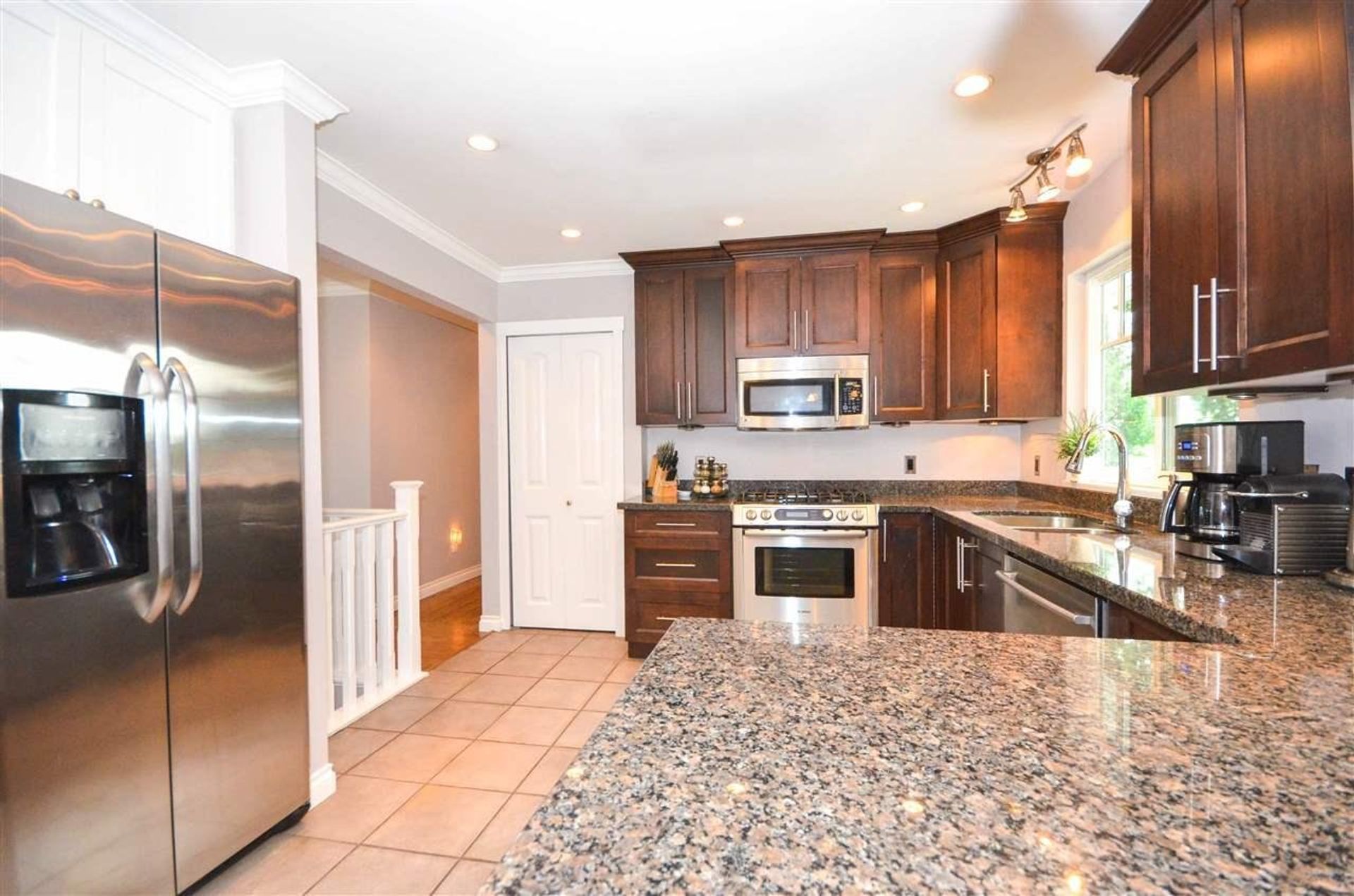 Wow, this one must be seen! This home has been updated and is ready for you to move right into. Spacious level entry welcomes you to this updated home. Updated kitchen opens to the addition of a family rm, radiant tile floor heating. Three beds/two updated baths on main. Dark real hardwood floors, lots of crown moldings, pot lights, custom touches. Downstairs deluxe one bed suite, updated kitchen/bath, sep laundry, lots windows. Plus rec rm, bath storage for upstairs use. Fantastic private yard designed for summer use. Fenced with raised patio area plus stamped patio, two gas connections. Two sheds plus 215' shop area. New driveway/retaining wall/Bosch hot water furnace. Updated windows/water line/drainage/floors. Level drive, rv/boat parking, quiet street, schools/parks/transit there.