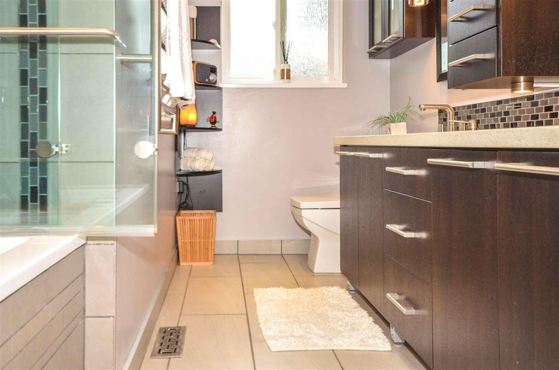 Exceptional basement entry 2,357' home, extensive updating for you to enjoy. Main level features vaulted ceiling lr & dr with mountain views to the east. Living rm modern gas fp, dining rm built in display cabinetry, hardwood & update lighting on main. Reno kitchen; built in s/s appliances/silent close drawers eating area3 lg bedrooms up, master with deluxe 3 piece ensuite + walk in closet! High end reno in all 3 bathrms; double sinks/ multi head showers/soaker tubs/lighting/cabinets. Downstairs 2 beds, family sized rec rm, great suite potential. 2 balconies, hugh back deck, deep fenced yd, 2 sheds. Lot 7,567' garage & lots driveway parking. 2 minute walk to school/parks, transit out front, easy bridge/freeway access. This home offers features most Mary Hill homes don't & is move in ready.