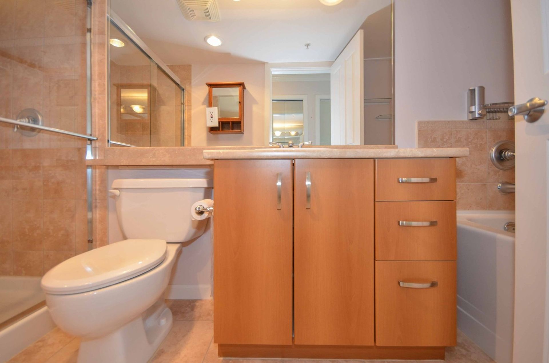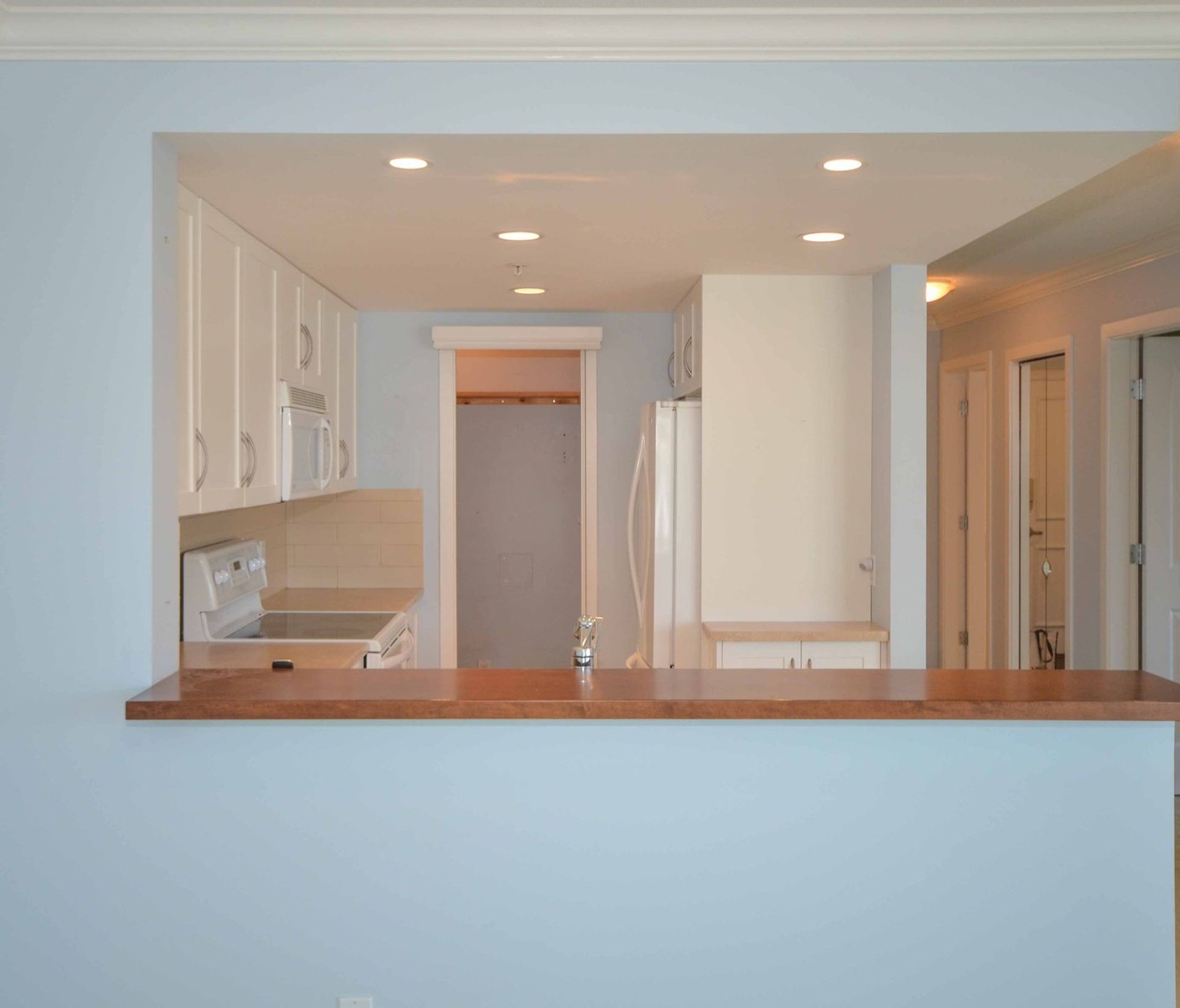Tucked away in the heart of Port Moody's Newport village, this 1,241 square foot two bedroom and den home is an oasis of privacy and convenience. There is an open concept kitchen, living room, and dining room area featuring large windows to maximize the view. The room is drawn together with a gas fireplace nestled below the rooms finest feature; a view of an oversized green courtyard and Burnaby mountain along with SFU's UniverCity, even a little view of the water!With such serene surroundings it is easy to forget that you are literal seconds away from all forms of amenities—groceries, coffee shops, restaurants, and countless other specialty stores. The kitchen includes an eating bar, quiet close drawers, a built-in microwave, updated pot lights, and a full dedicated pantry.