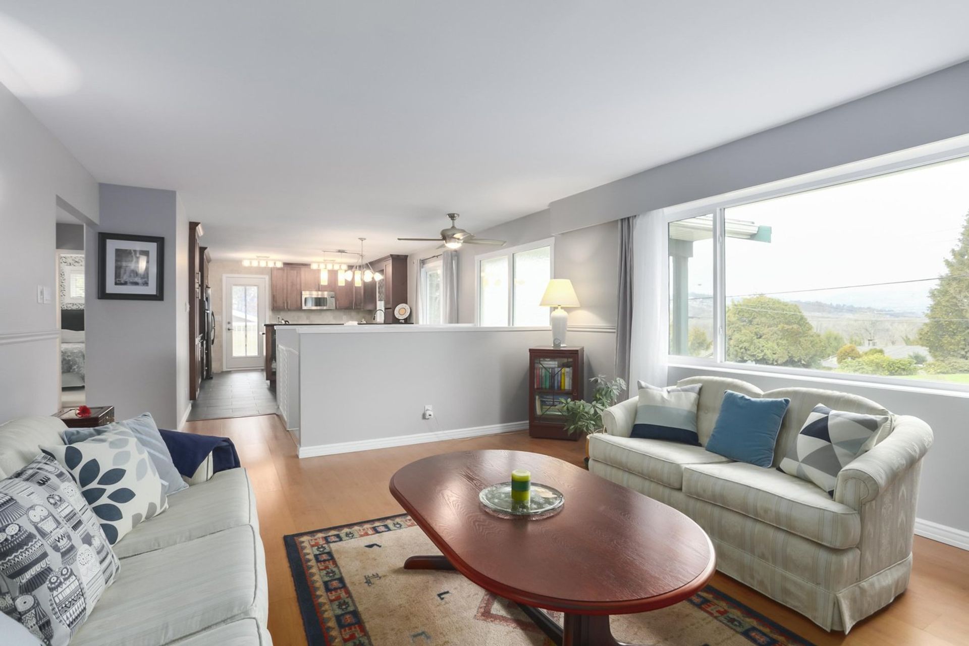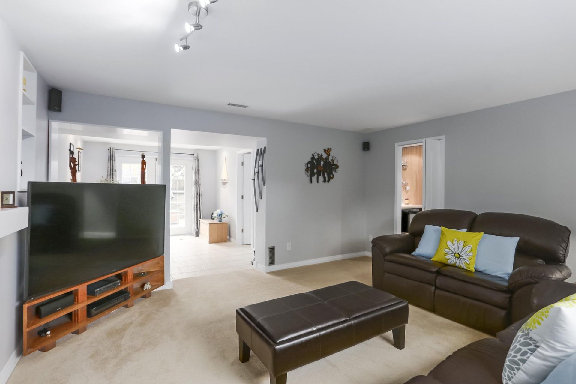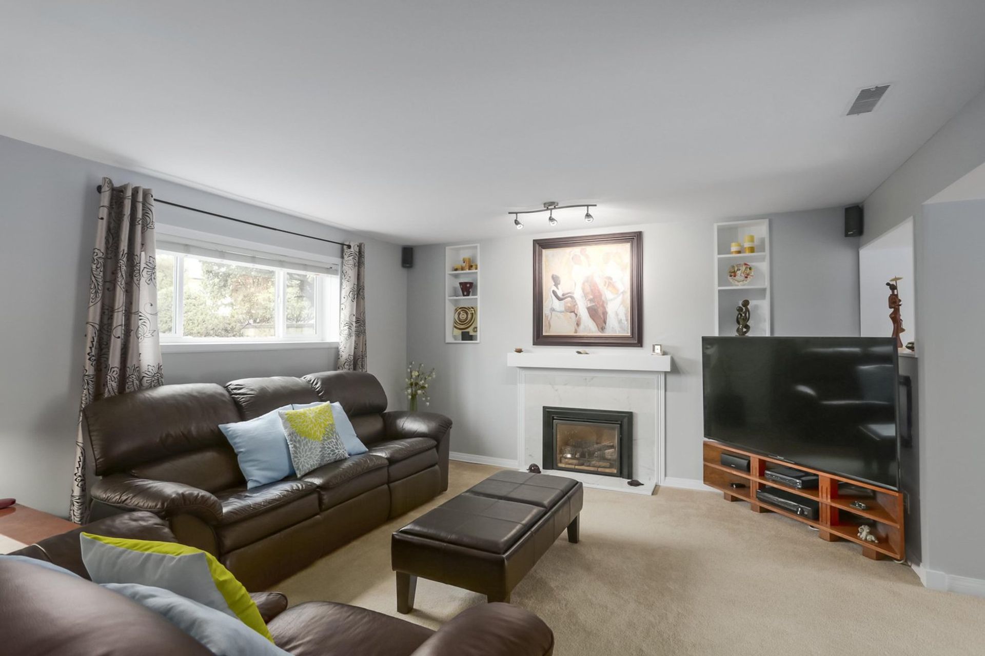 The living room includes an oversized north facing window for natural light that overlooks the homes front yard. A tiled gas fireplace acts as the focal point and ties the room together. All three of the main floor bedrooms have views of the green belt that the home backs on to, creating a sense of both peace and privacy. The master bedroom has two custom accent windows above the bed, a large wardrobe organizer with room for a TV, and sliding glass doors on to the home's four year old deck. The main bathroom was fully renovated within the last five years with subtle floor to ceiling tiling, accent lighting, and a large walk-in shower for a truly modern ascetic.
