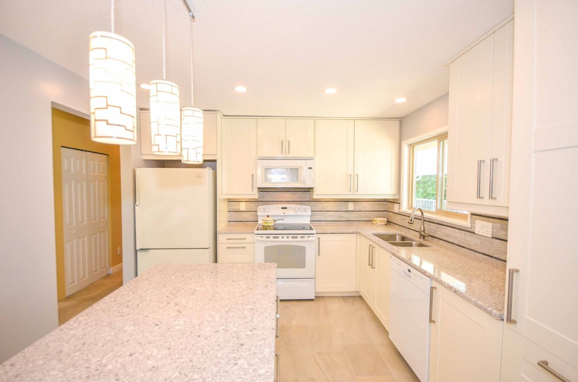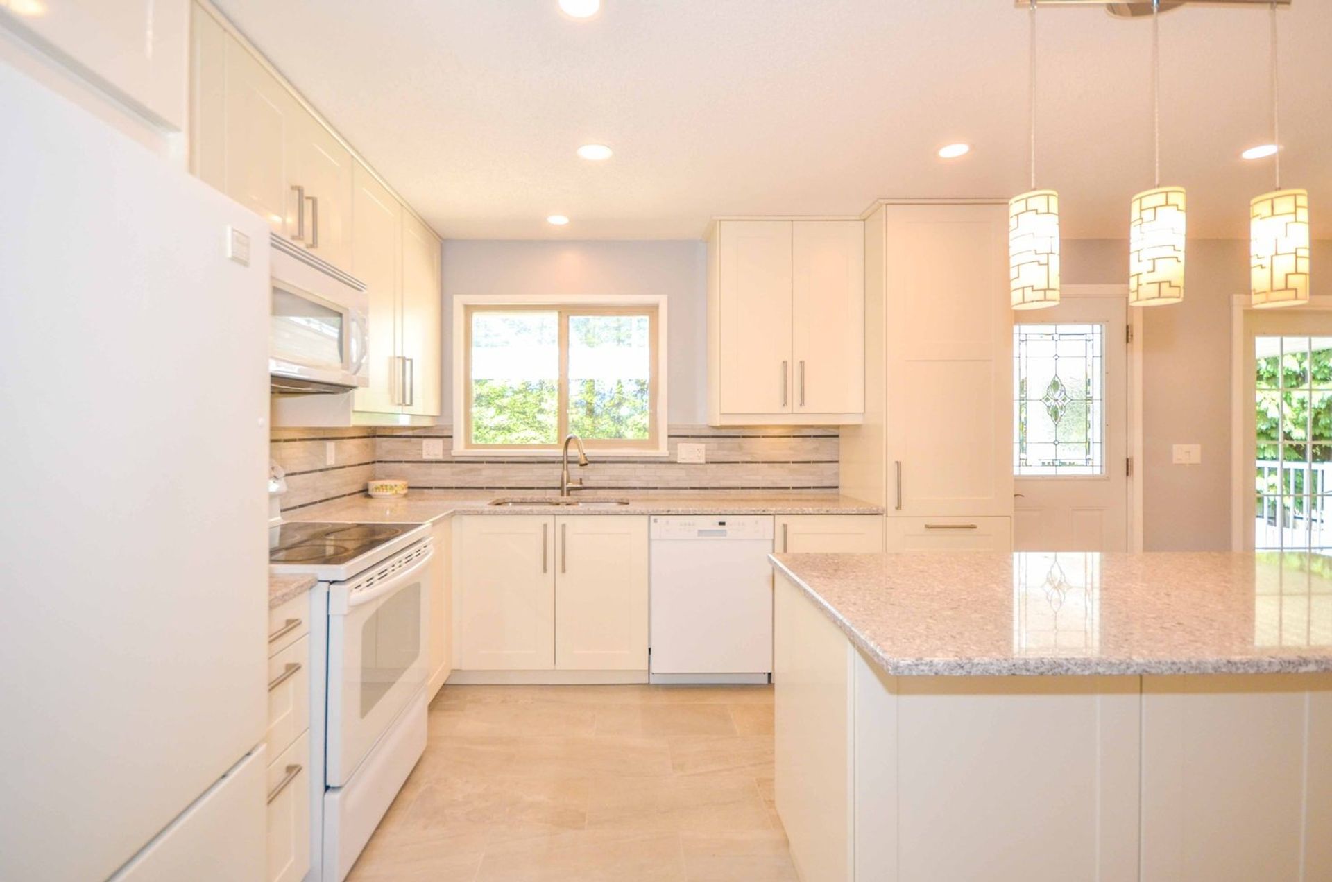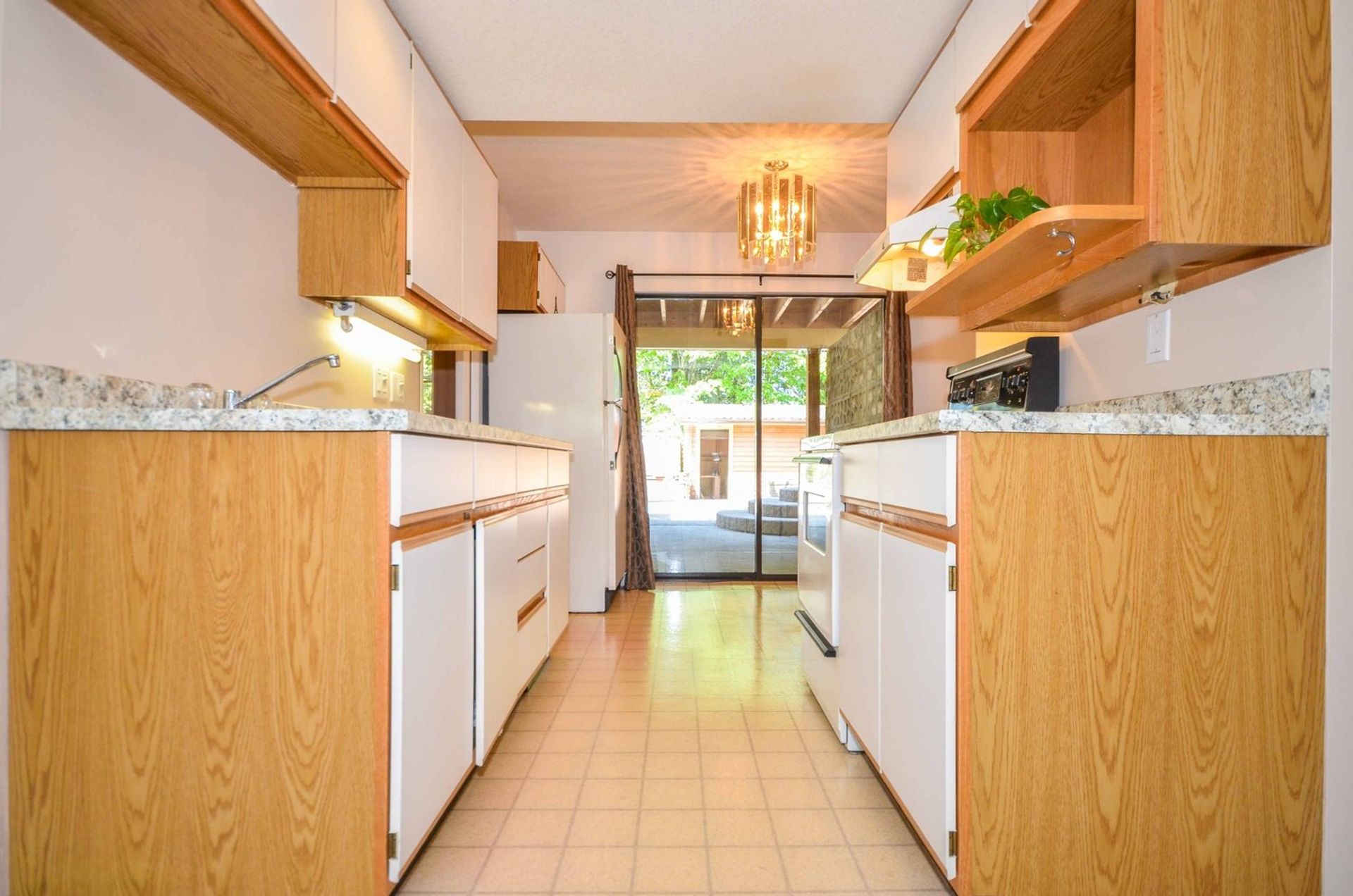 Unique layout in this well maintained home on a quiet Mary Hill street. The main level has the original hardwood floors and a renovated kitchen. The kitchen features center island eating bar, ample cupboards with pull-out shelves. Two bedrms up, master has huge walk-in closet (could be converted back to a bedrm). Downstairs 1 bedrm suite with electric heat, shared ldry, sep entrance/patio. Garage enclosed for extra space. Addition of 24x96 flex rm that has a roll up garage door that opens to side driveway, great home business or toy storage, plus there is a 3 piece bathrm. Huge 49'x14' covered deck w/ stairs to backyd & patio/gardens. Lots of parking including full size rv. Beautiful gardens and home is move in ready & immediate possession. Great family location; minutes to schools.