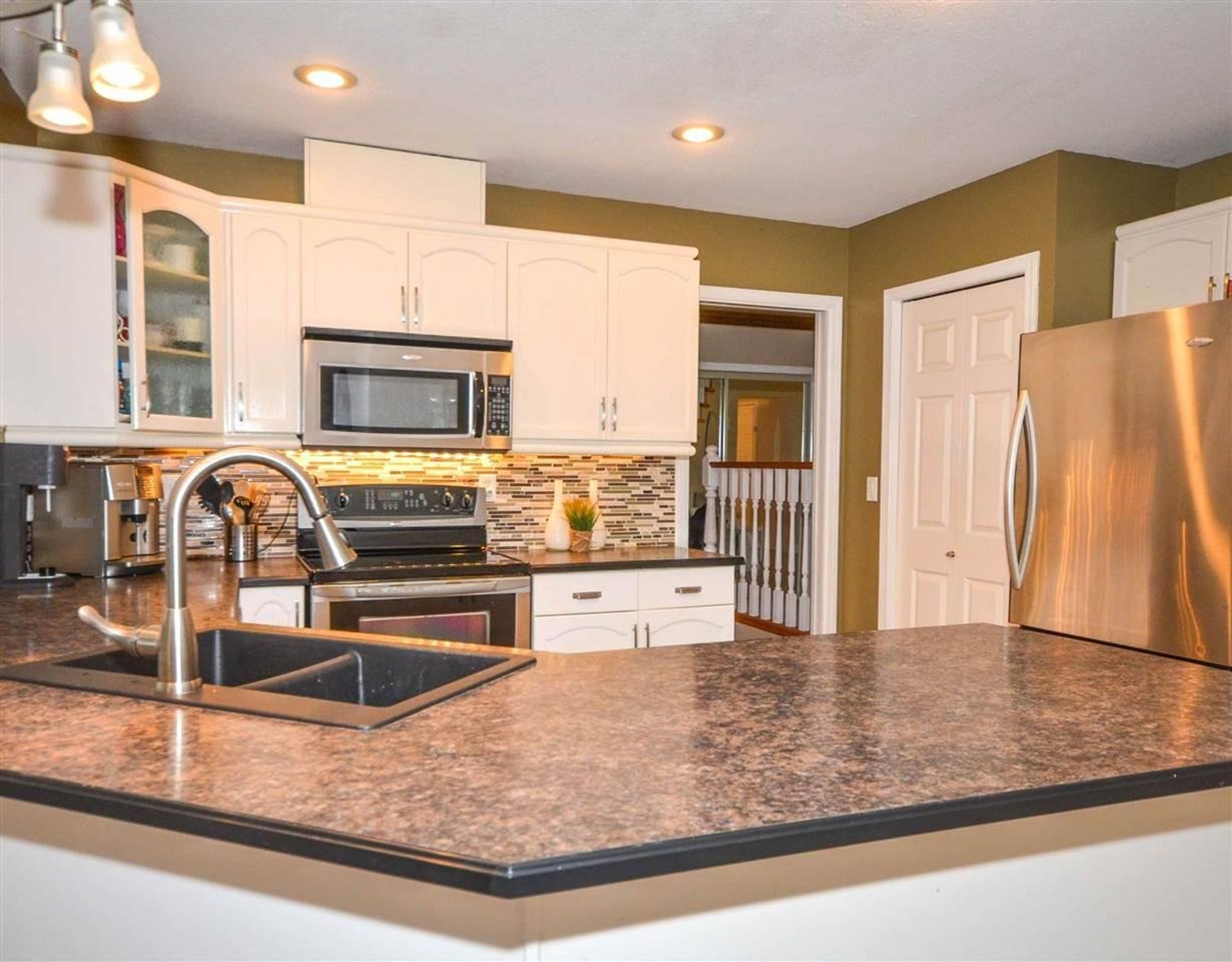 Upstairs are three bedrooms including the spacious master with a five piece updated ensuite. The ensuite has double sinks a tile & glass shower and a great soaker tub to relaxin after long days.