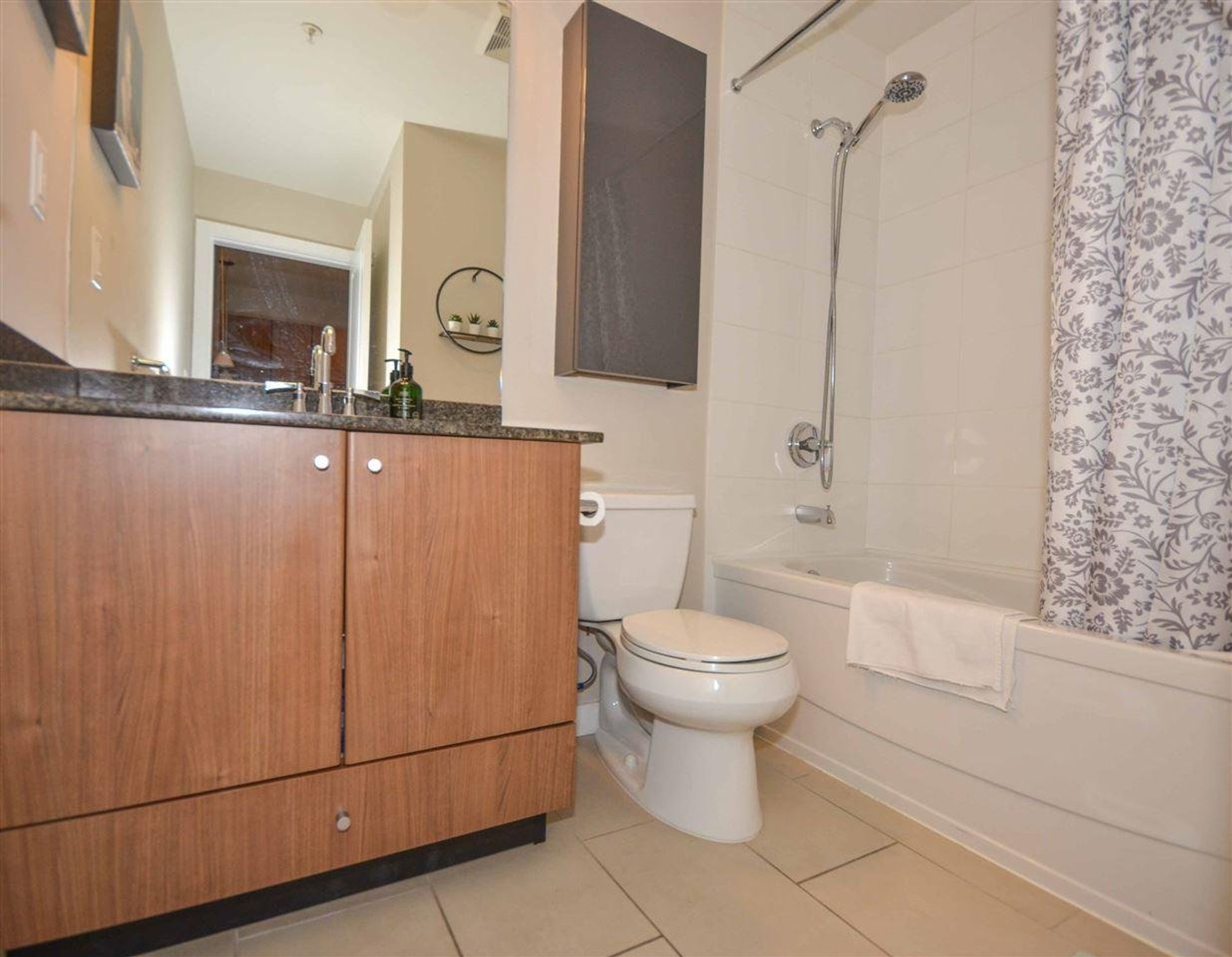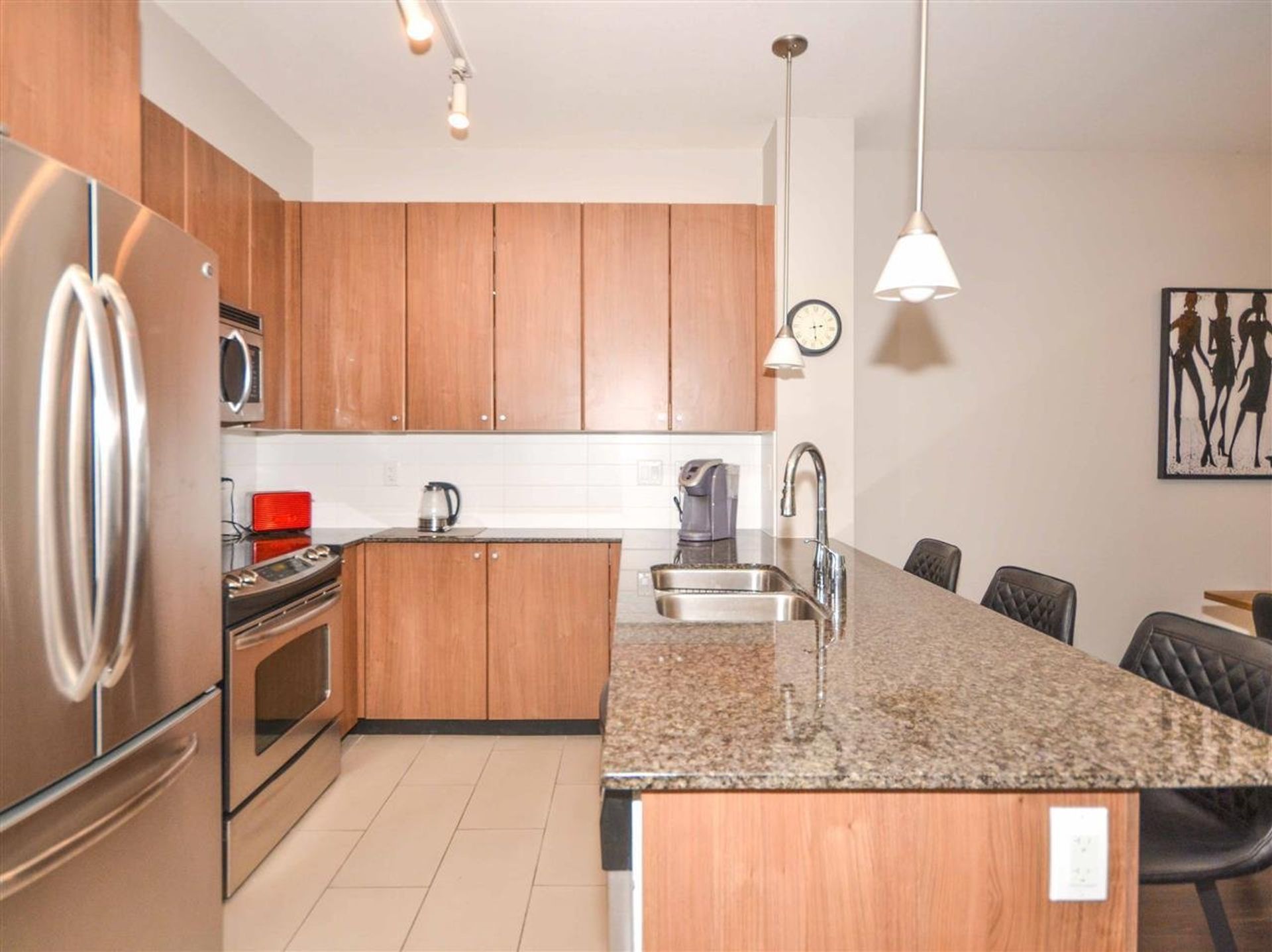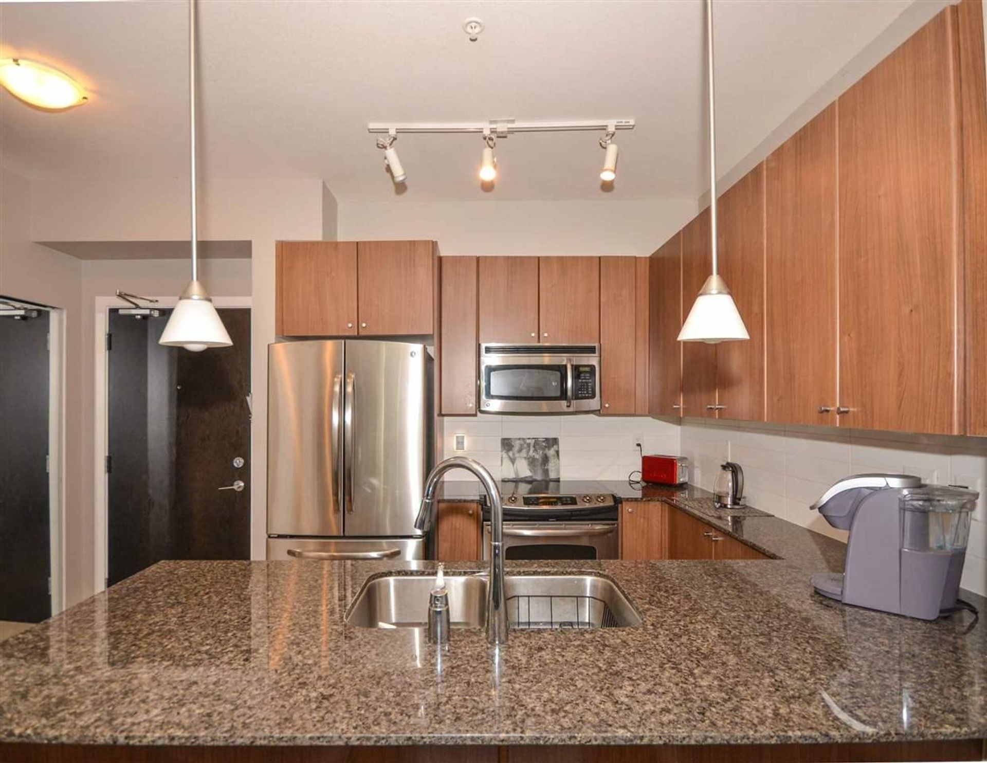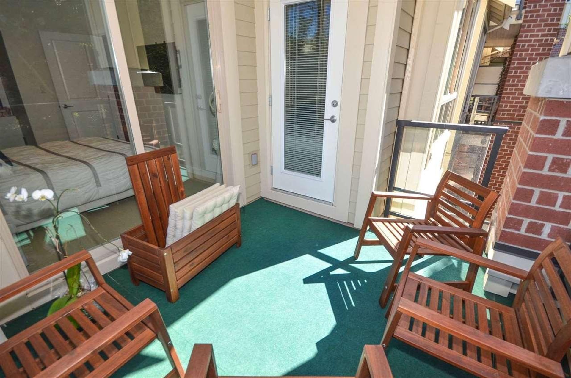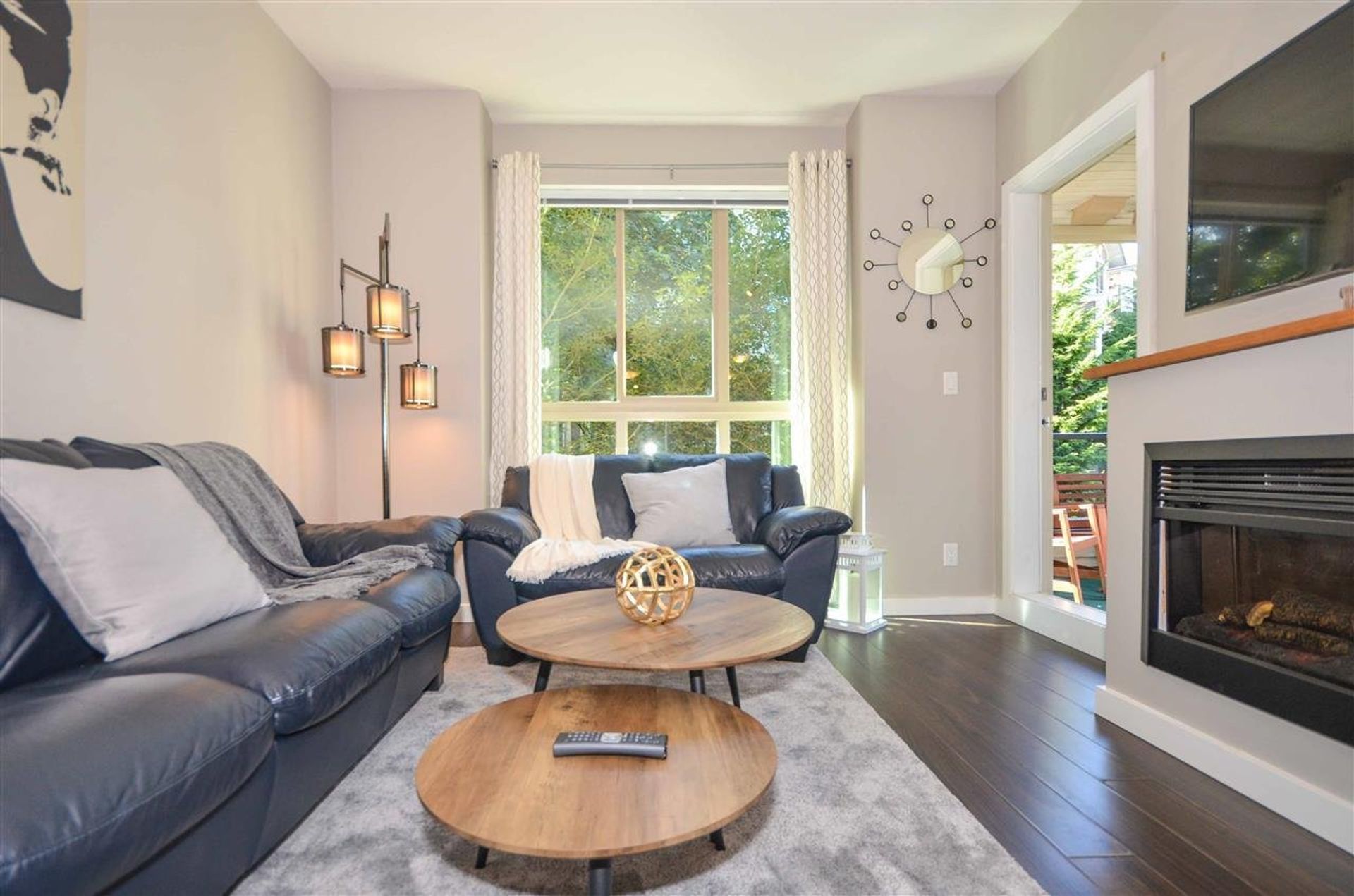 Welcome to Victoria Hill, New Westminster's premiere community. Tucked in among trees, ponds, and walkways the neighbourhood embraces a natural setting. A short walk across an overpass has residents in Queens Park; home to an abundance of both indoor and outdoor recreation options for the whole family. This immaculately kept one bedroom corner unit is directly adjacent to major bus routes, and within walking distance of the Sky Train as well as all levels of amenities. Featuring an open concept kitchen, dining room, and living room area this homes creates a spacious feeling perfect for connecting and unwinding on fall nights. The kitchen features granite counter tops, all stainless steel General Electric appliances, a garburator, a tile backsplash, abundant counter/cabinet space, and a large eating bar. A dining room area allows for enough room to accommodate a full dining room table set up. The living room has an electric fireplace, a large window facing a lovely green space which creates a sense of privacy, and access to a covered deck. The deck has a glass privacy wall, and is large enough for BBQ and a full patio set. Master bedroom is bright with glass sliding doors to the deck and a large walk-in closet. The homes main bathroom has a large soaker tub, a tiled floor, and granite counter vanity. This home is complete with in-suite laundry tucked away inside a large closet with ample room for storage. Victoria Hill includes a large gym facility with a full range of cardio equipment that feature individual TVs, a wide range of free weights, and multiple universal gym setups. Do not miss out on fantastic corner unit. Make sure to view the 3D tour: https://my.matterport.com/show/?m=tWCnNKLJCYR
