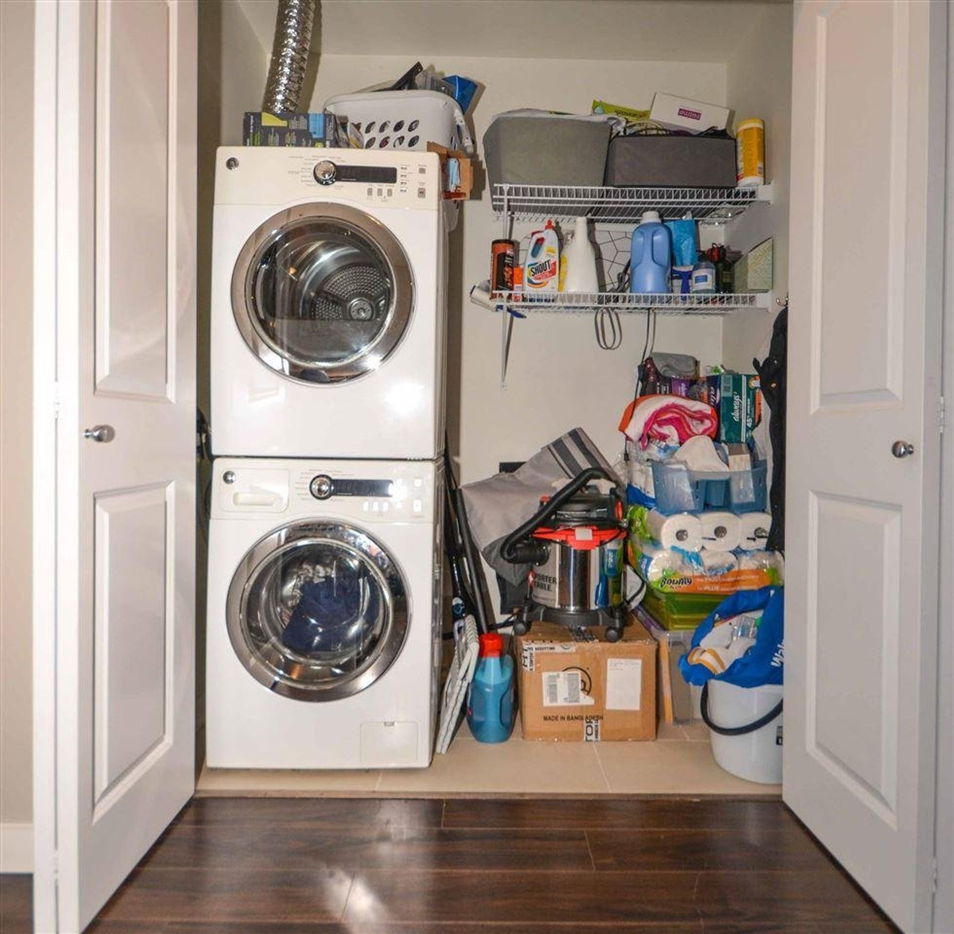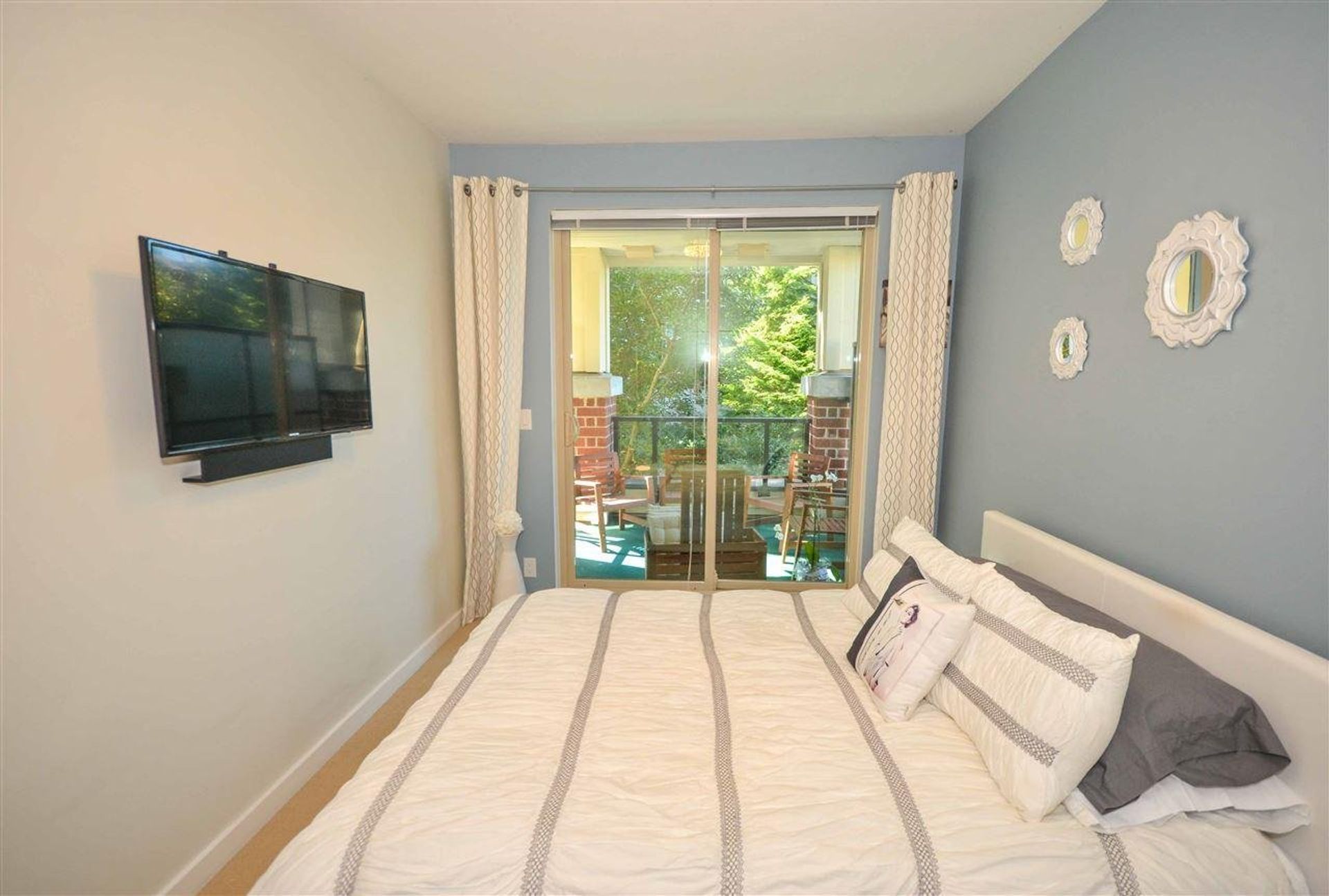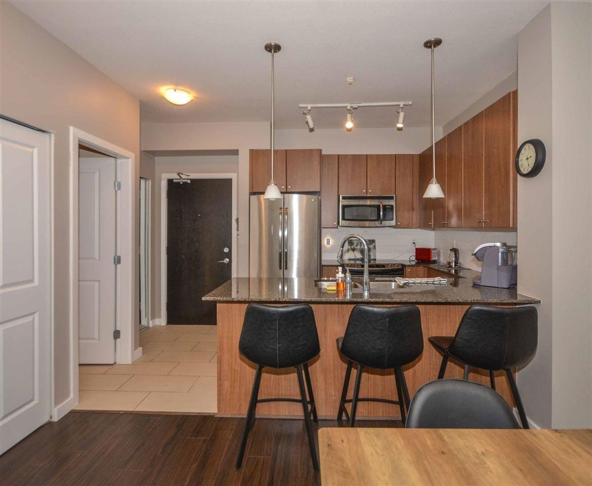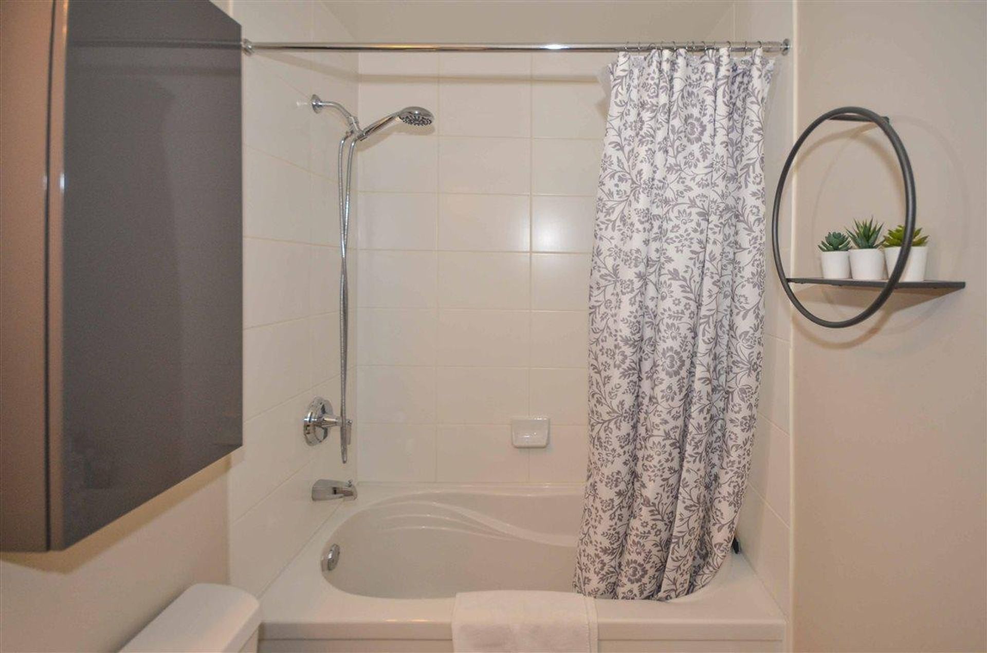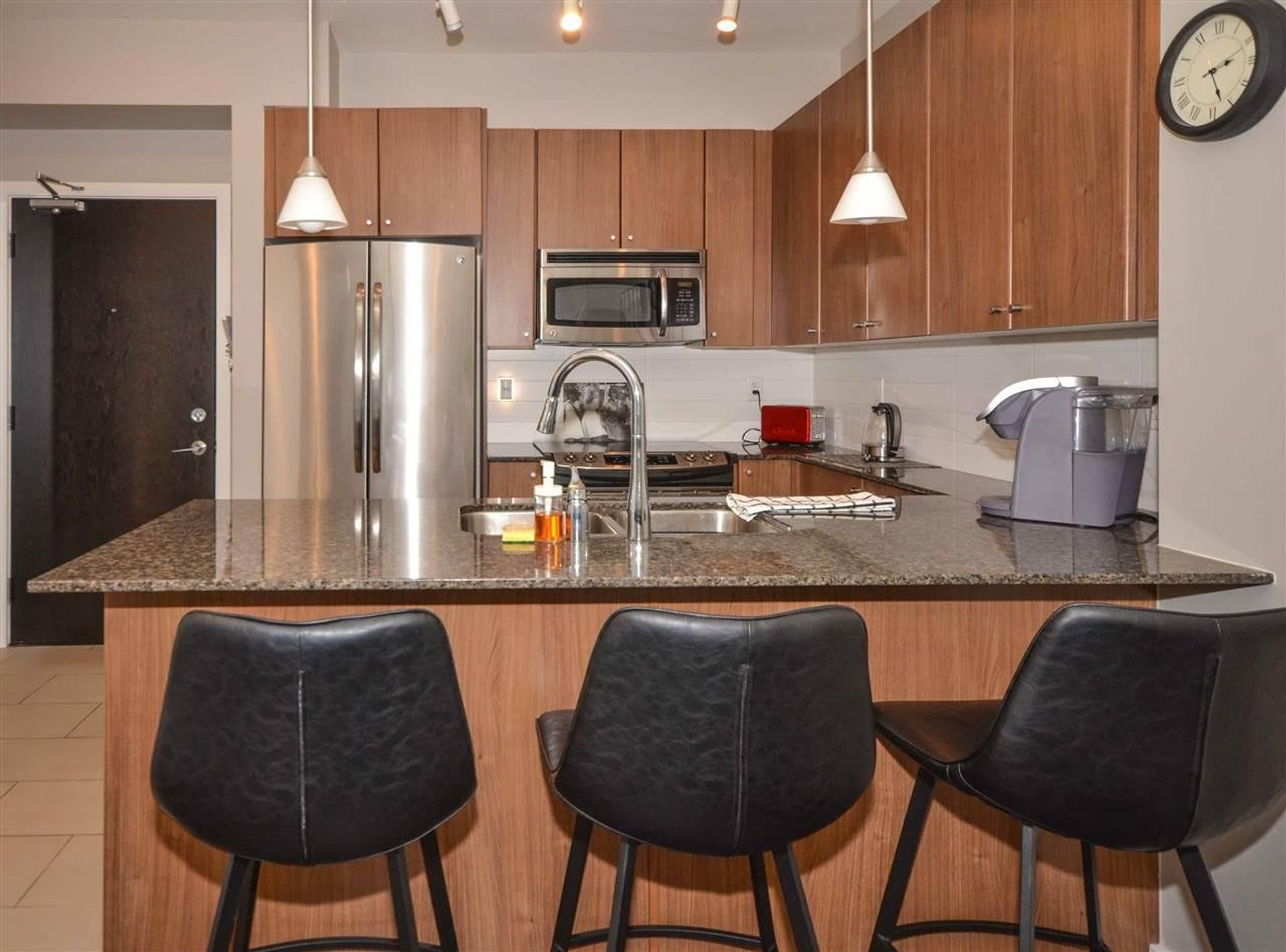 Welcome to Victoria Hill, New Westminster's premiere community. Tucked in among trees, ponds, and walkways the neighbourhood embraces a natural setting. A short walk across an overpass has residents in Queens Park; home to an abundance of both indoor and outdoor recreation options for the whole family. This immaculately kept one bedroom corner unit is directly adjacent to major bus routes, and within walking distance of the Sky Train as well as all levels of amenities. Featuring an open concept kitchen, dining room, and living room area this homes creates a spacious feeling perfect for connecting and unwinding on fall nights. The kitchen features granite counter tops, all stainless steel General Electric appliances, a garburator, a tile backsplash, abundant counter/cabinet space, and a large eating bar. A dining room area allows for enough room to accommodate a full dining room table set up. The living room has an electric fireplace, a large window facing a lovely green space which creates a sense of privacy, and access to a covered deck. The deck has a glass privacy wall, and is large enough for BBQ and a full patio set. Master bedroom is bright with glass sliding doors to the deck and a large walk-in closet. The homes main bathroom has a large soaker tub, a tiled floor, and granite counter vanity. This home is complete with in-suite laundry tucked away inside a large closet with ample room for storage. Victoria Hill includes a large gym facility with a full range of cardio equipment that feature individual TVs, a wide range of free weights, and multiple universal gym setups. Do not miss out on fantastic corner unit. Make sure to view the 3D tour: https://my.matterport.com/show/?m=tWCnNKLJCYR