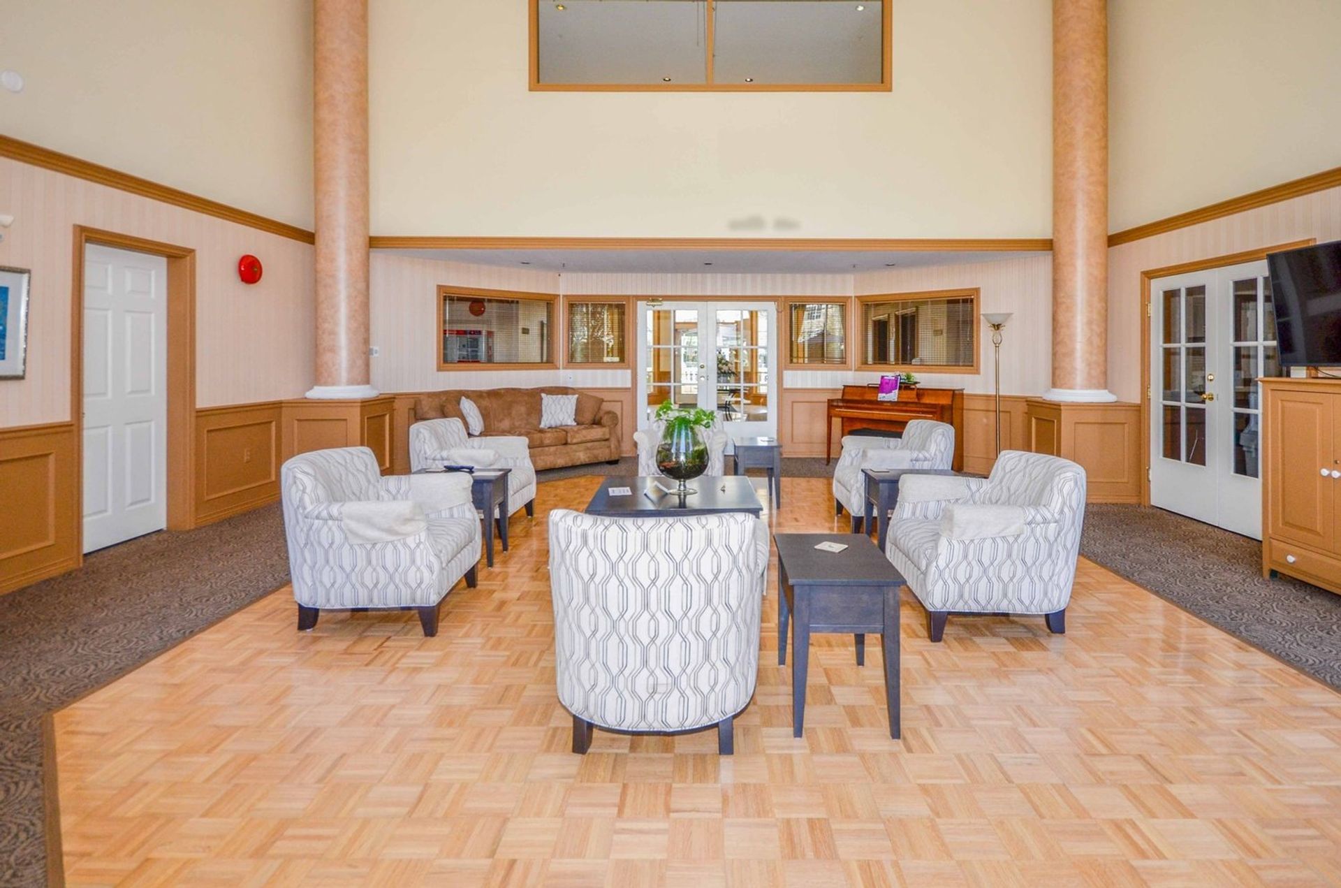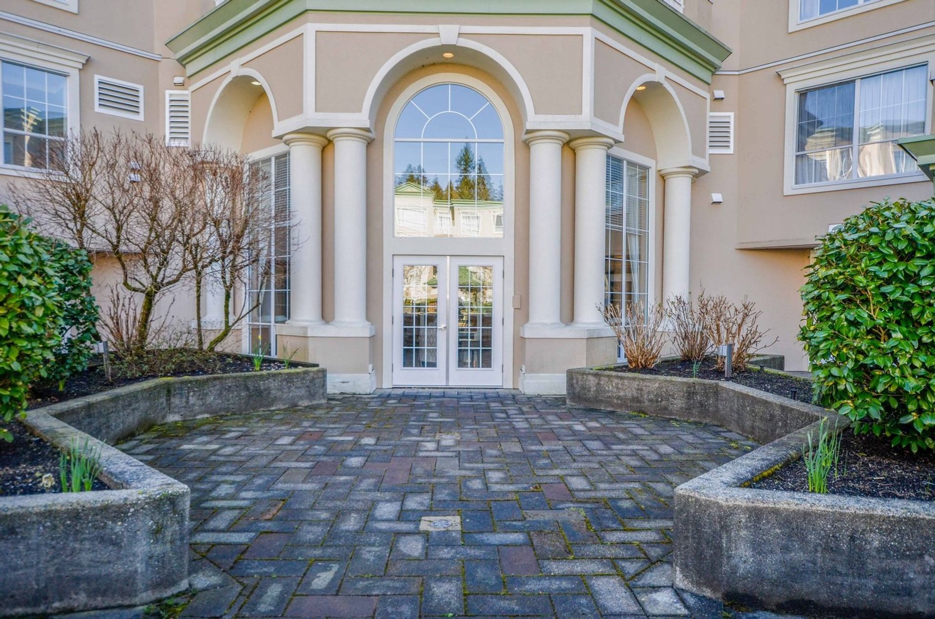 Secure 55+ living at its best with all the amenities you could possibly want right in your building; indoor pool & hot tub, well equipped workout facility, pub & billiards, lounge, full workshop, gardens, library, 3 guest suites & more! This condo features 9' ceilings & is a spacious 1,088' with a generous sized master with 5 piece ensuite & walk-in closet. Plus a 2nd bedroom & full bath. Fees include on site caretaker, hot water, gas for the fireplace & heat. You are steps from Lafarge Lake for picturesque strolls or entertainment at the Evergreen Theatre and the Skytrain station. The Aquatic centre is across the street or a short walk to Coquitlam Centre for all your shopping needs. This condo has in-suite storage plus a separate locker down the hall.