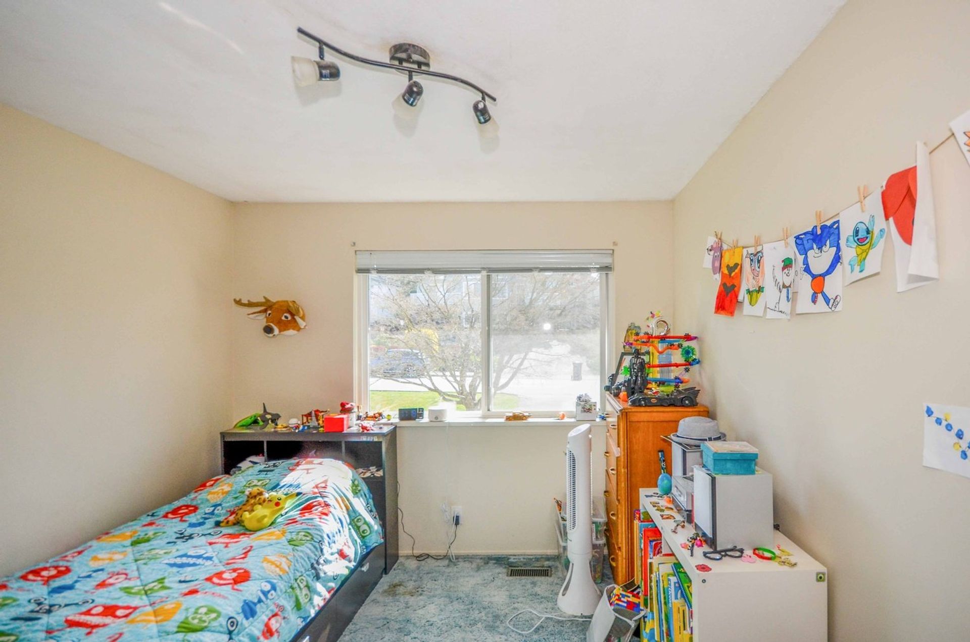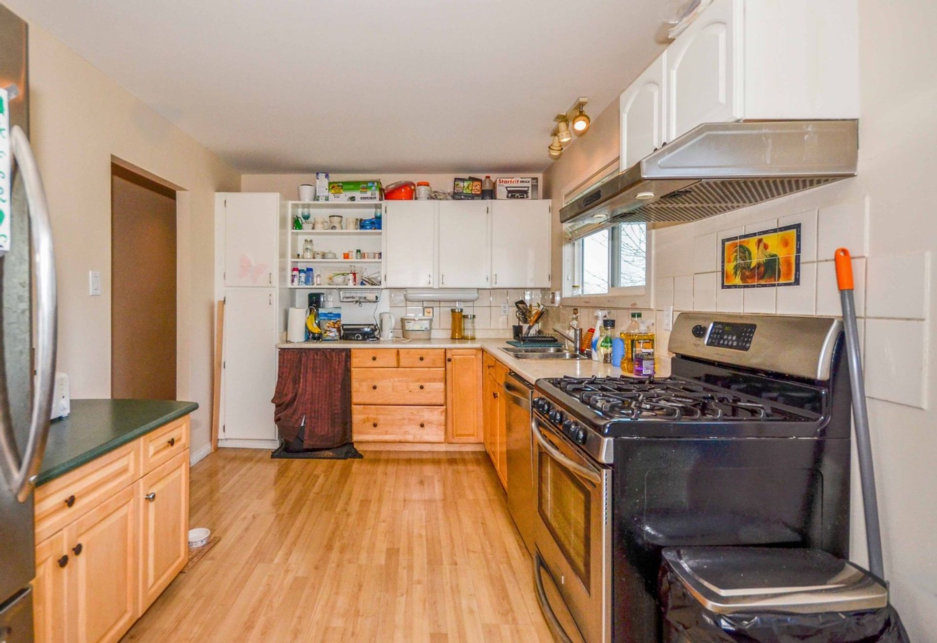 The main level of this split entry home features a kitchen with all stainless appliances, including a five burner gas range, abundant cabinet space, and access to an oversized north west facing back deck (which is set up with a gas line for a fire pit & BBQ). Living room and dining room are open to one another and both include large windows for fantastic natural light. The dining room is big enough for a full formal set up and the living room has a new gas fireplace and custom blinds. There are three bedrooms on the main level, one which over looks Colony Farm. This level is complete with a four-piece main bathroom.
