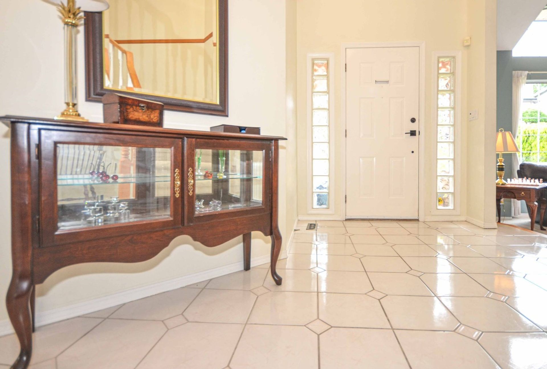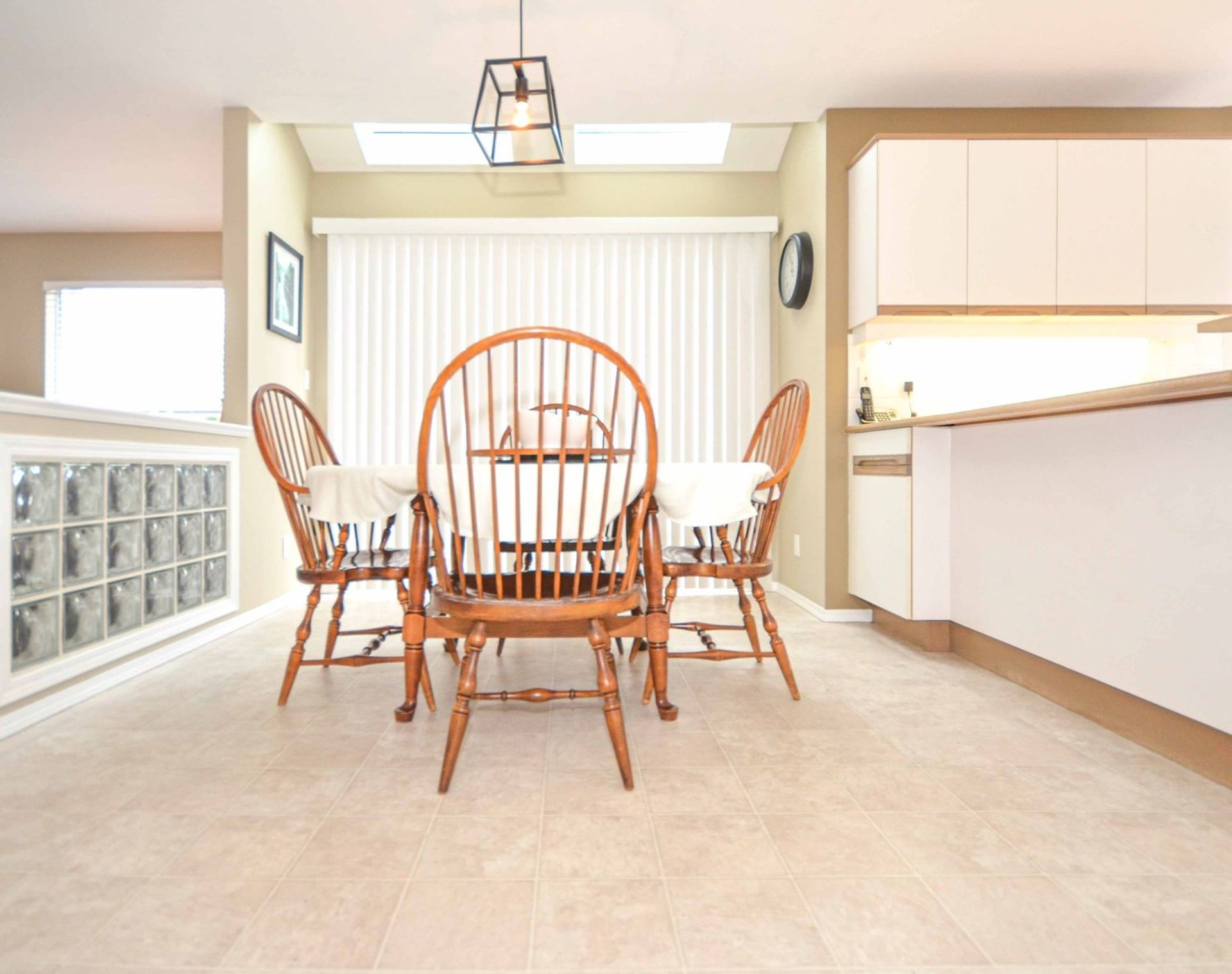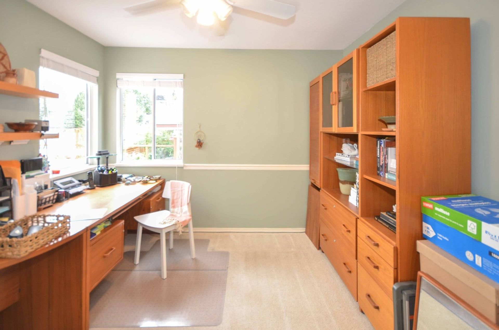 The main level is complete with a two-piece washroom and a secluded office/den that has a view straight-through to Pitt Meadows farm land.