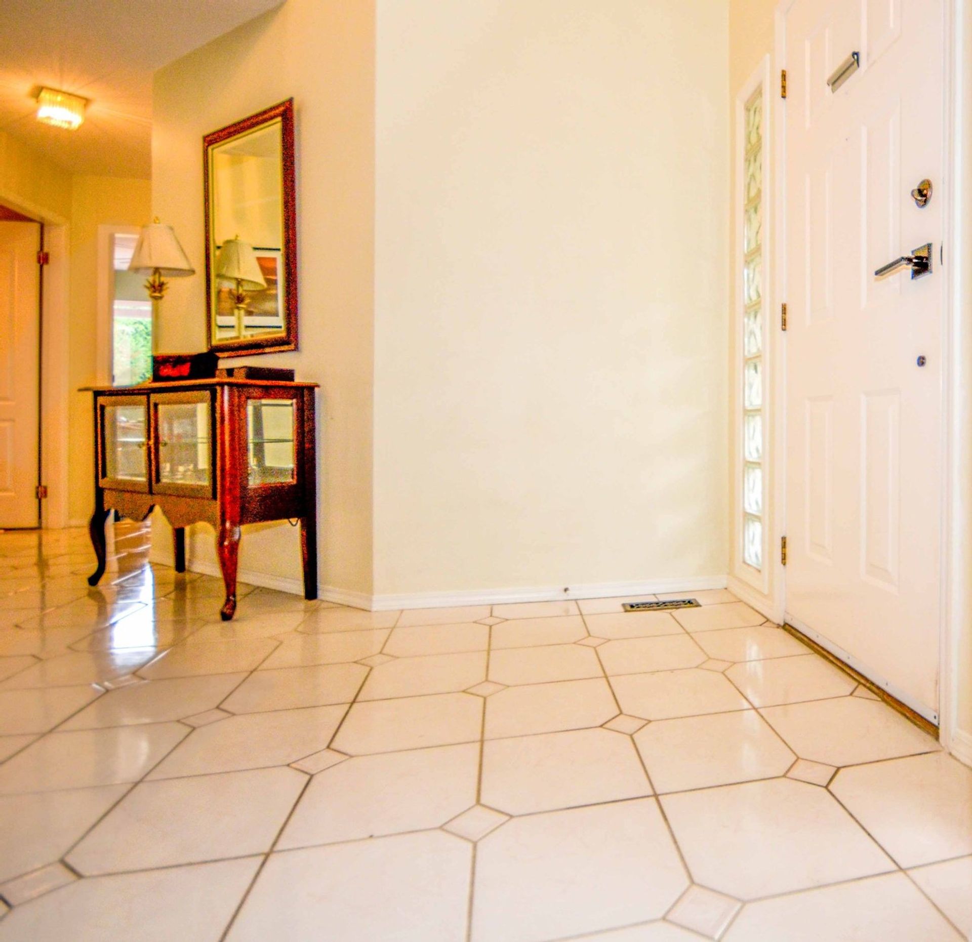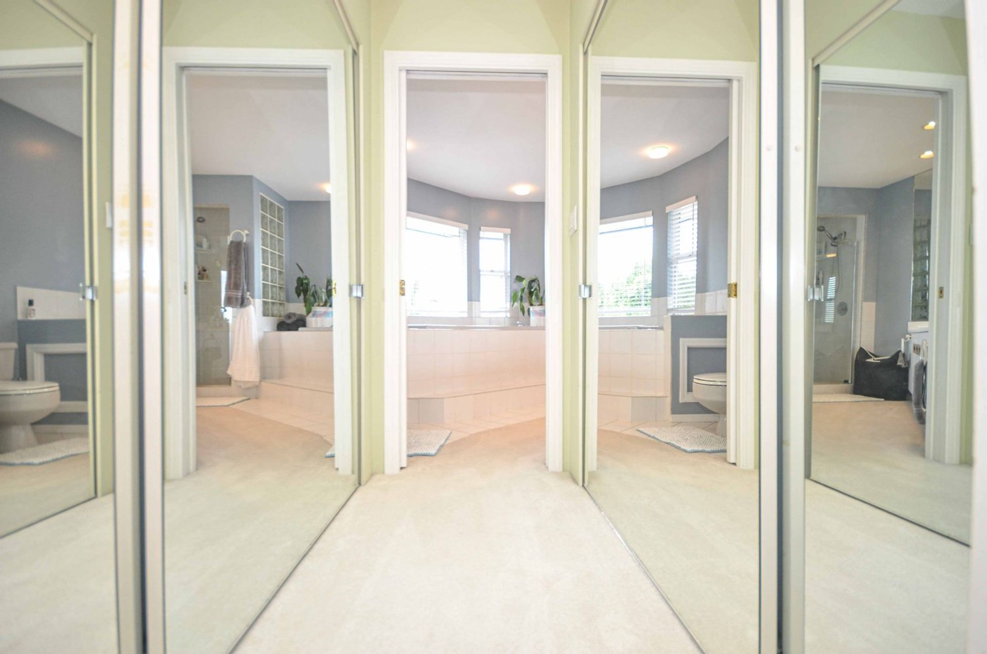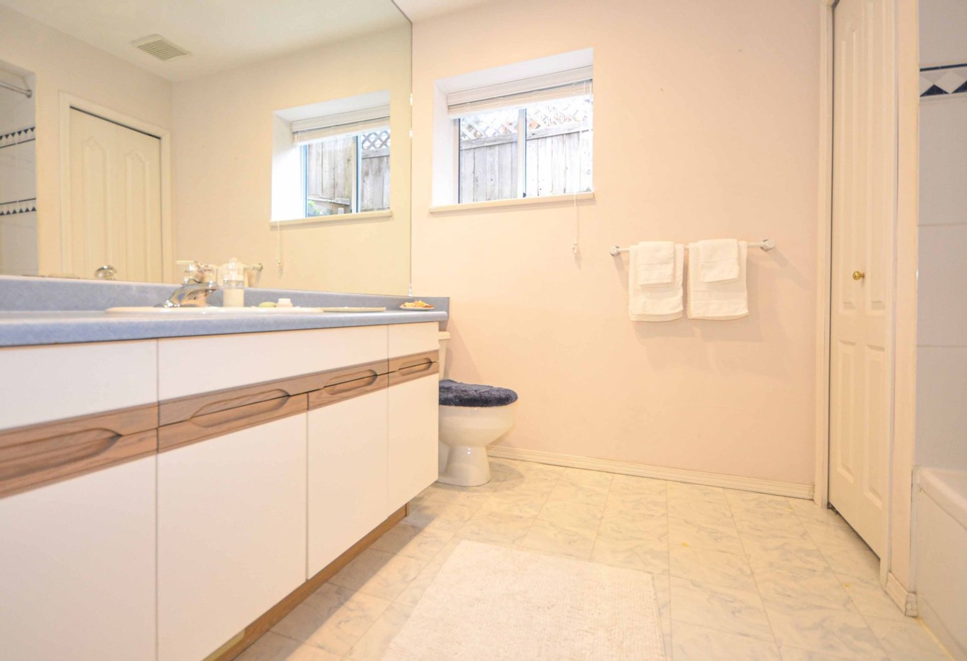 The main level is complete with a two-piece washroom and a secluded office/den that has a view straight-through to Pitt Meadows farm land.
