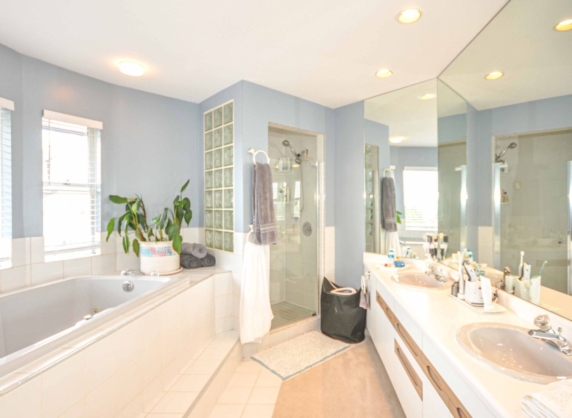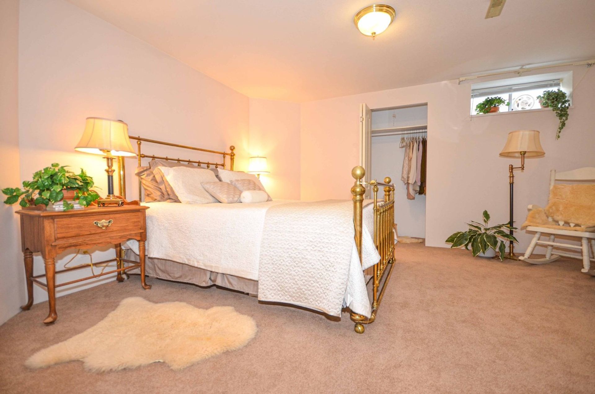 A large open landing ushers you to the home’s second floor with two extra large double closets (perfect for storage), two skylights, and a new closeted washer/dryer area with built-in shelving. The master suite is palatial with plenty of room for a king-sized bed. There is a windowed enclave ideal as a reading area and spacious enough for a desk. Dual elongated walk-through closets (there is a skylight here furthering the homes emphasis on natural light) lead to a five-piece ensuite. The ensuite includes two sinks, a separate tiled shower, updated pot lights, and a large raised jetted tub with an unobstructed river view. There are two more bedrooms on the upper floor along with a four-piece main bathroom with a view.