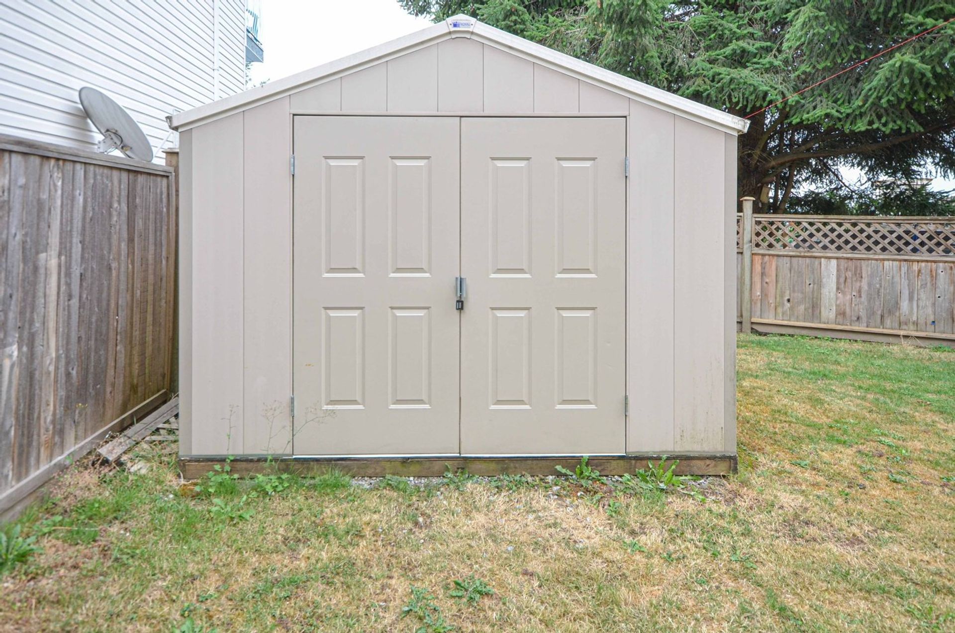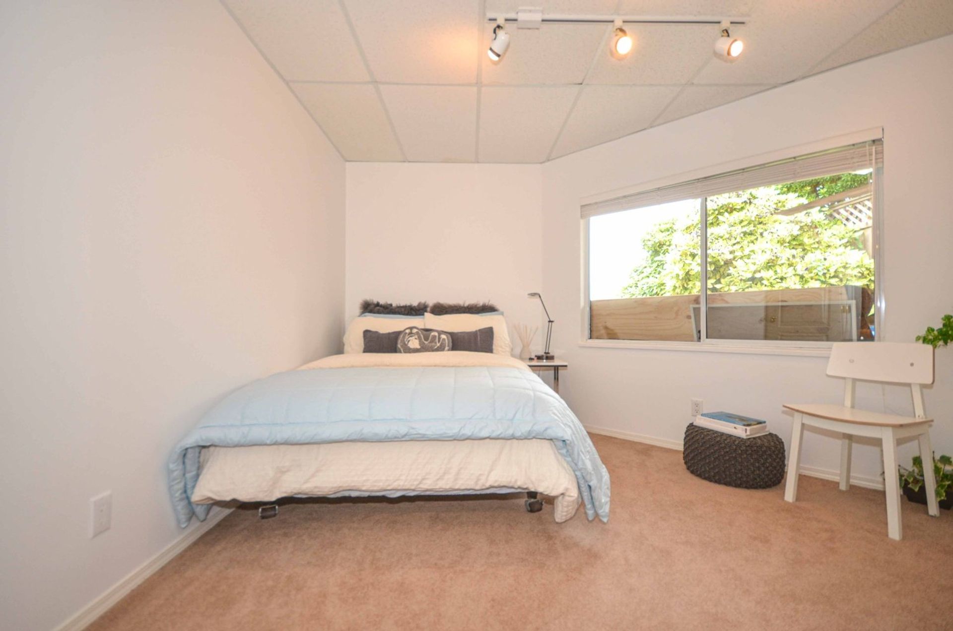 The lower level is over 1100 square feet and easily converted to a suite; it has its own subpanel and one room has been fully plumbed to be converted to a kitchen. There are two bedrooms on this level, one is substantial in size and the other has sizable windows to the backyard. There is abundant storage space with two large closets, and under stair storage area, and a dedicated storage room. A recreation room with a glass sliding door to a covered patio in the homes full fenced backyard could easily be converted to an eating area and living room. There is also a bright four piece bathroom with linen closet. The home has a spacious two car garage with built-in storage shelves and a wash sink. There is a large storage shed in the backyard, all skylights were replaced two years ago, the roof is two years new, the furnace is 2013, and the home has central AC.