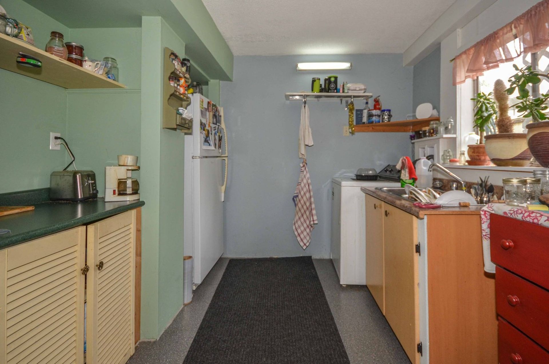 Downstairs there is everything you need to get a three-bedroom suite up and running. The back of the home is above ground providing ample light for a suite. The living room is open to the kitchen and the existing bar could be converted into an eating area. In the kitchen are hookups for a stove and a stacking washer/dryer; there is already a fridge and a double sink in place. Three bedrooms (one without a window), and a three-piece washroom complete the lower level.