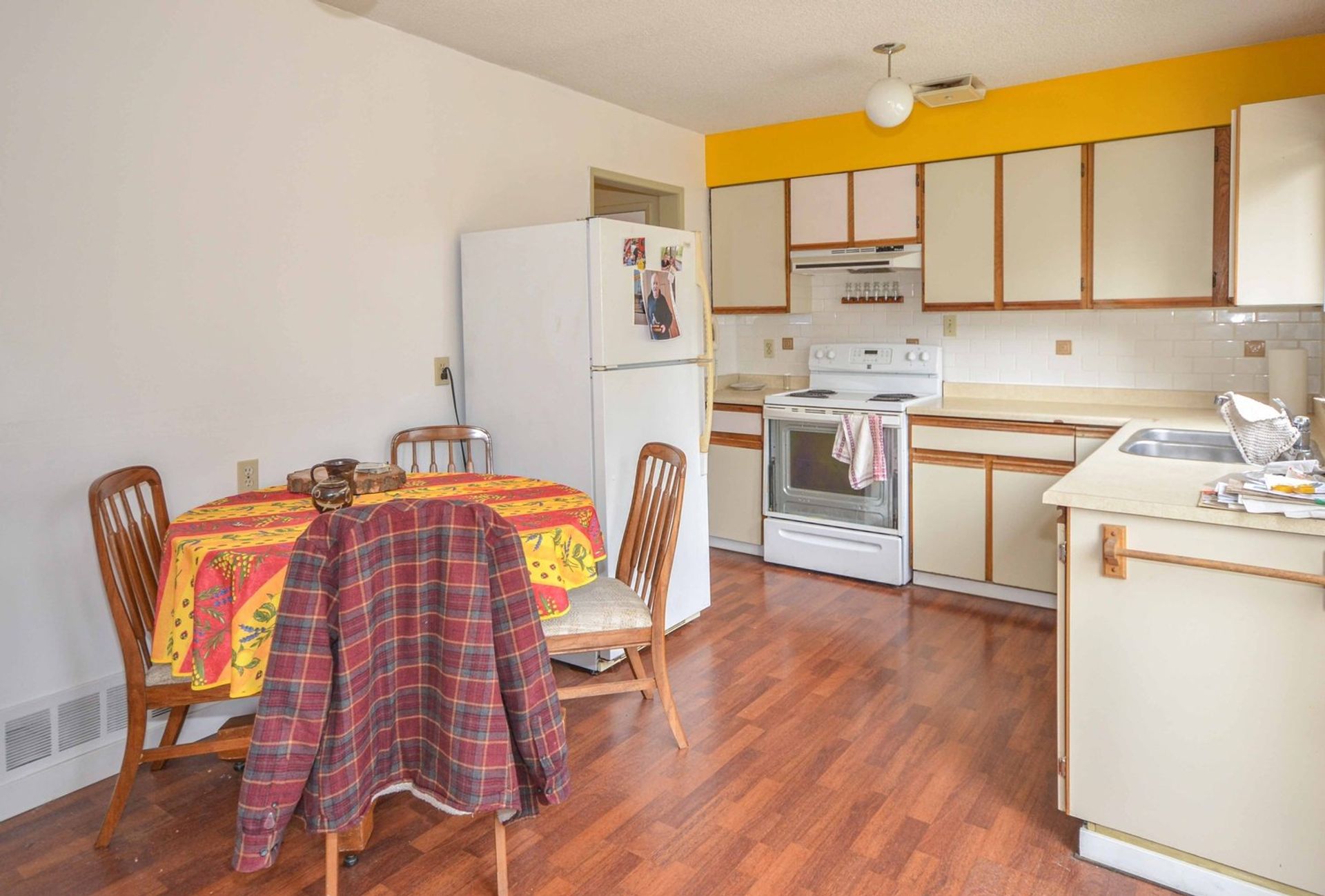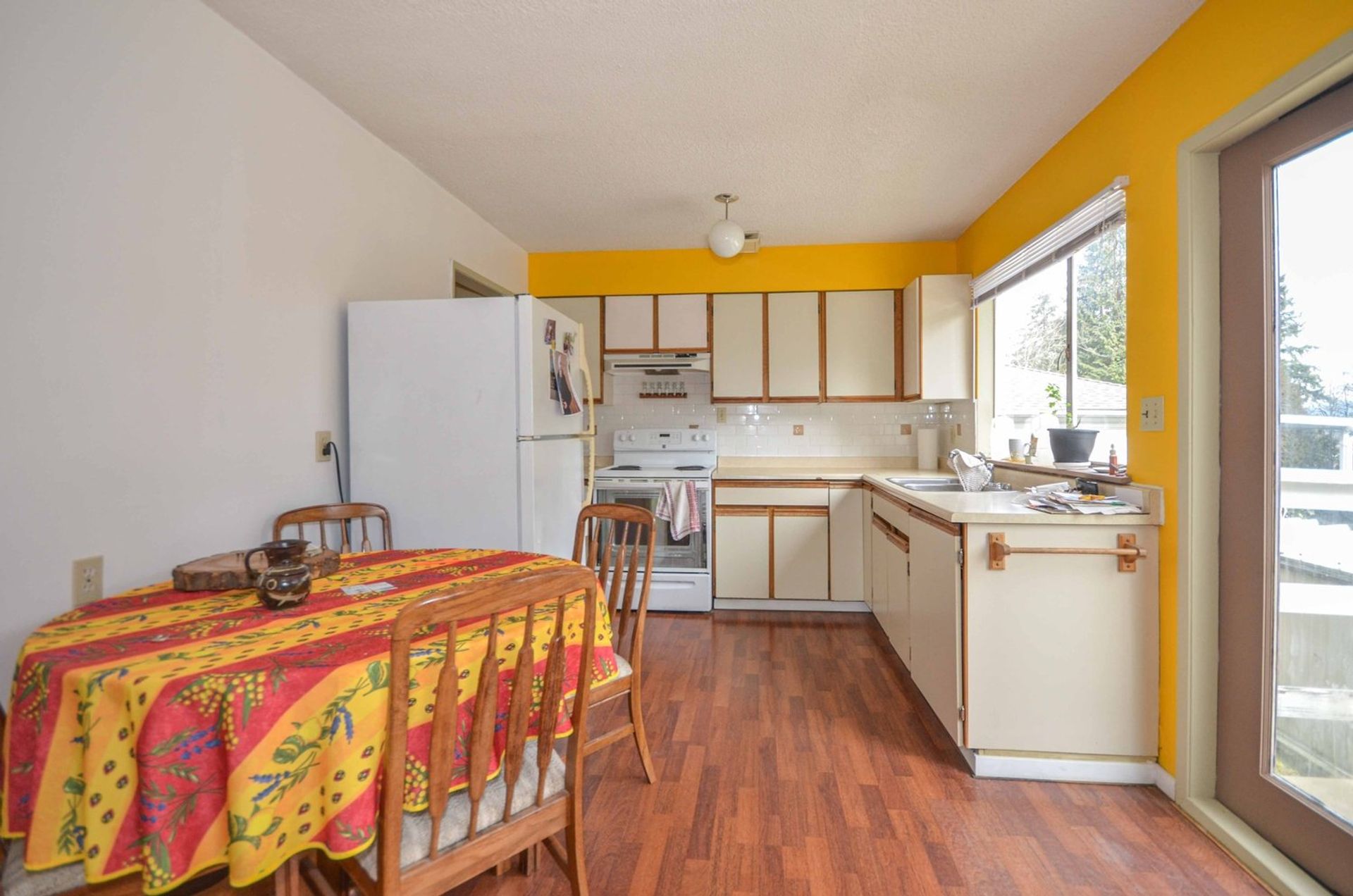 The home's main level features a kitchen with an eating area, which has access to a sizable back deck with stairs down to a sprawling, fully fenced, backyard. There is a large living room with two oversized windows providing great natural light creating a sense of openness perfect for entertaining. Three bedrooms and a four-piece bathroom complete the main level; the master bedroom currently has a stacked washer/dryer in the closet.