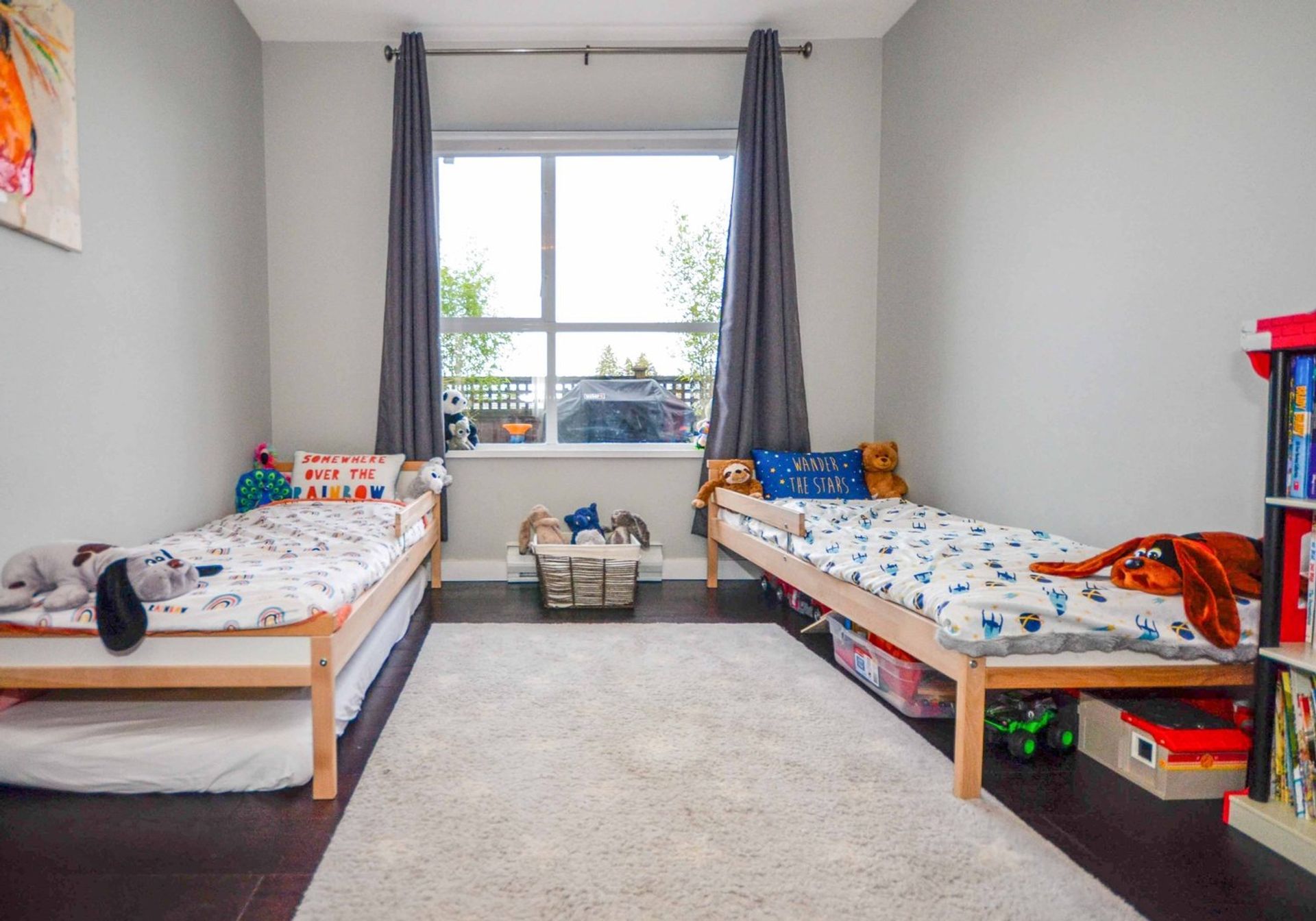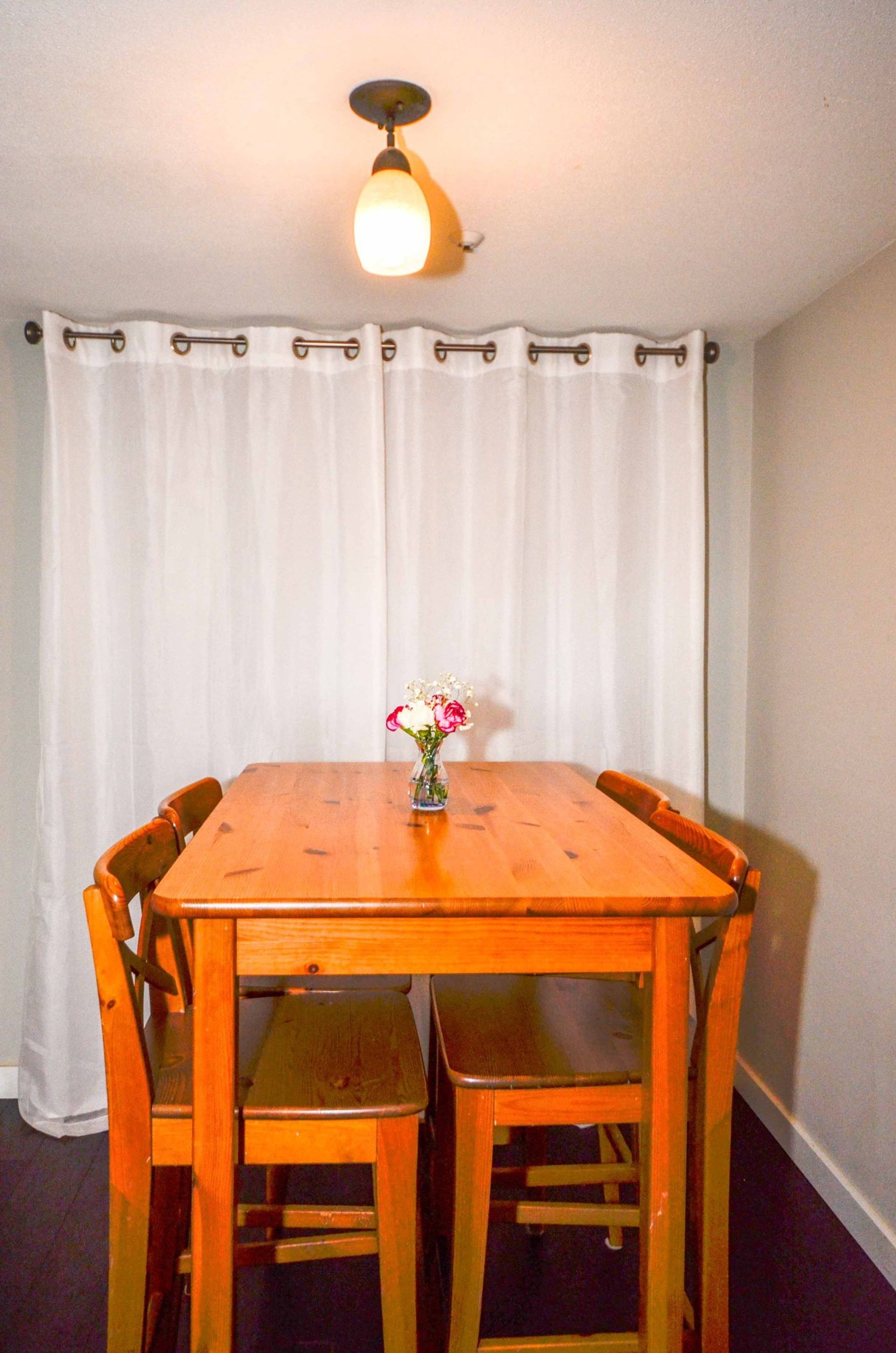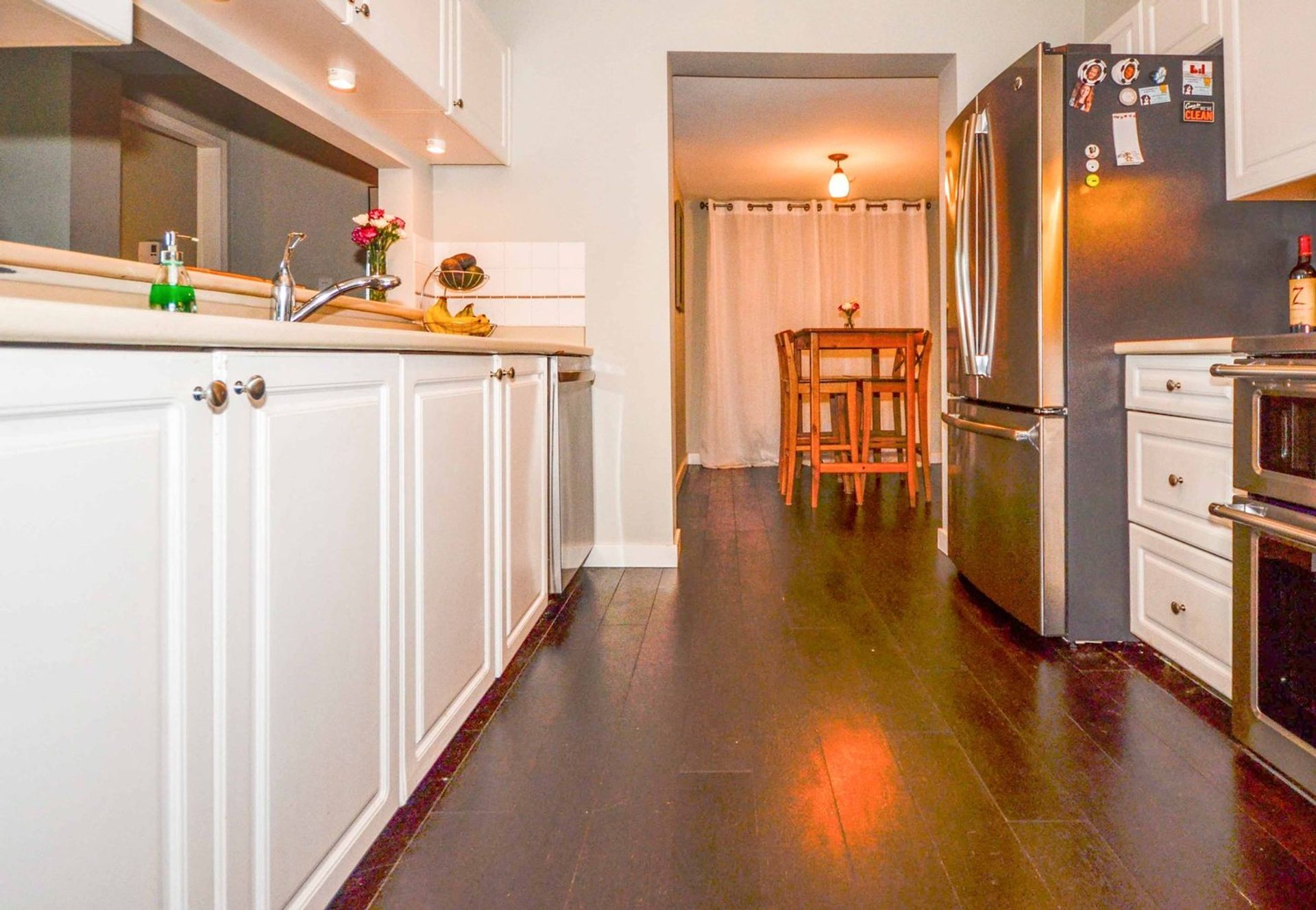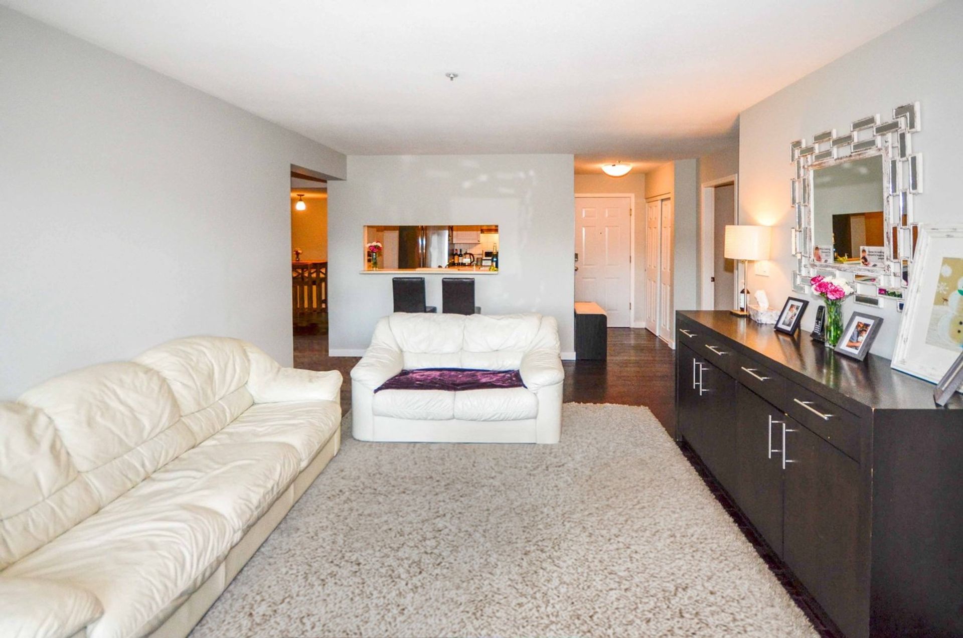 The master bedroom is tucked away to one side of the home allowing for maximum privacy. Flush with natural light, the room comes with new multi-directional light filtering window shades, also installed in a second bedroom. The master is complete with two closets which you pass through to reach the four-piece ensuite. The remaining two rooms (one without a closet) are side-by-side and both have large windows which give a spacious sense of openness. The main washroom is a three piece with tile flooring and a walk-in shower. Flooring has been updated throughout the home, oak hardwood with a walnut finish. It includes two side by side parking spaces, as well as a large storage locker which is roughly eight feet high. Maintenance fees include hot water and gas. Pets are allowed. View our 3D tour and book your showing today. This one won’t be around for long.