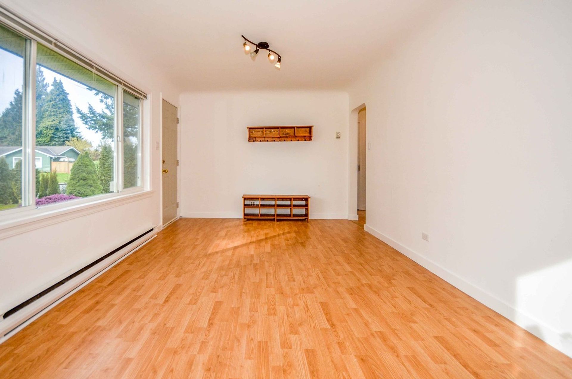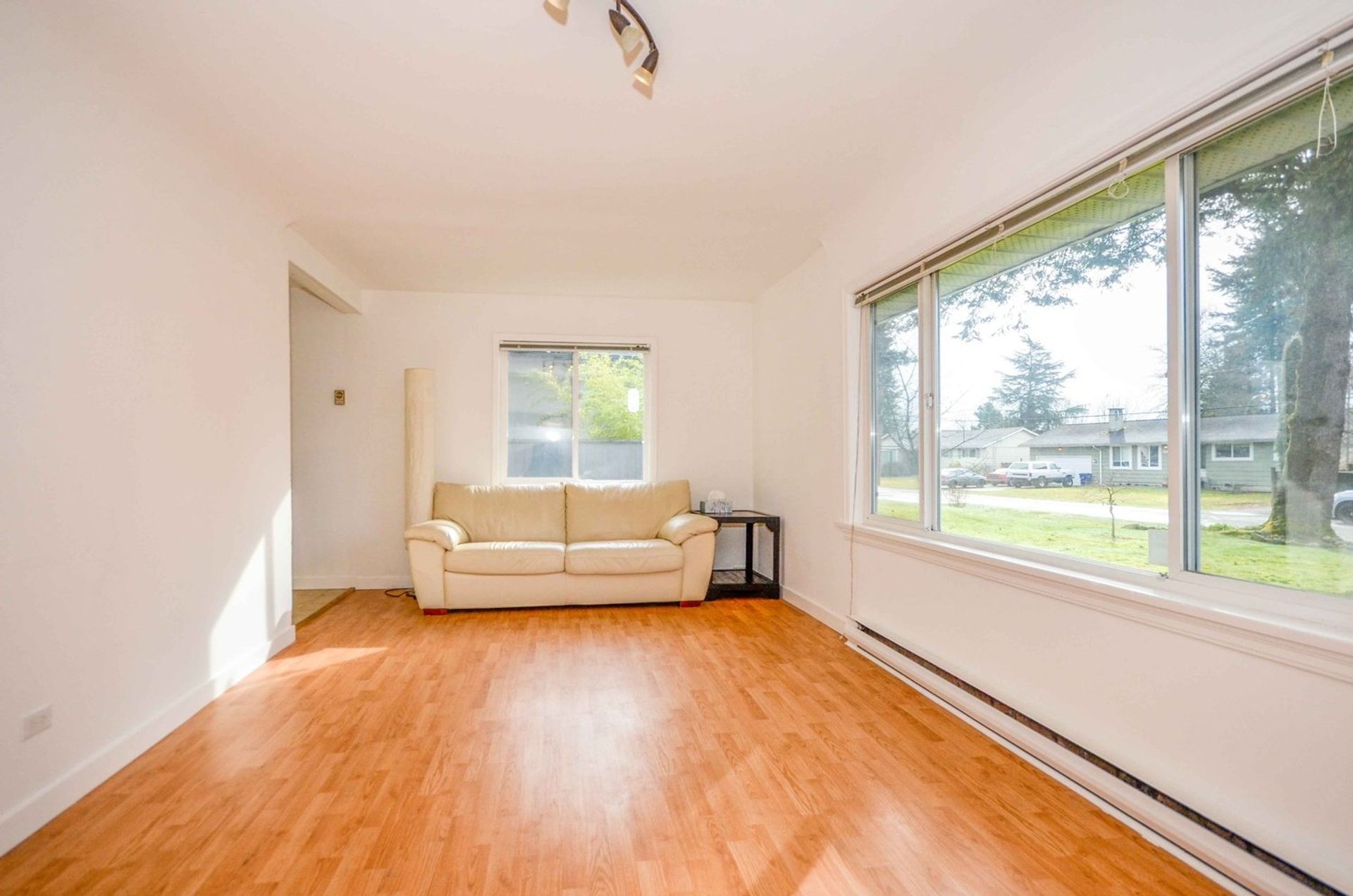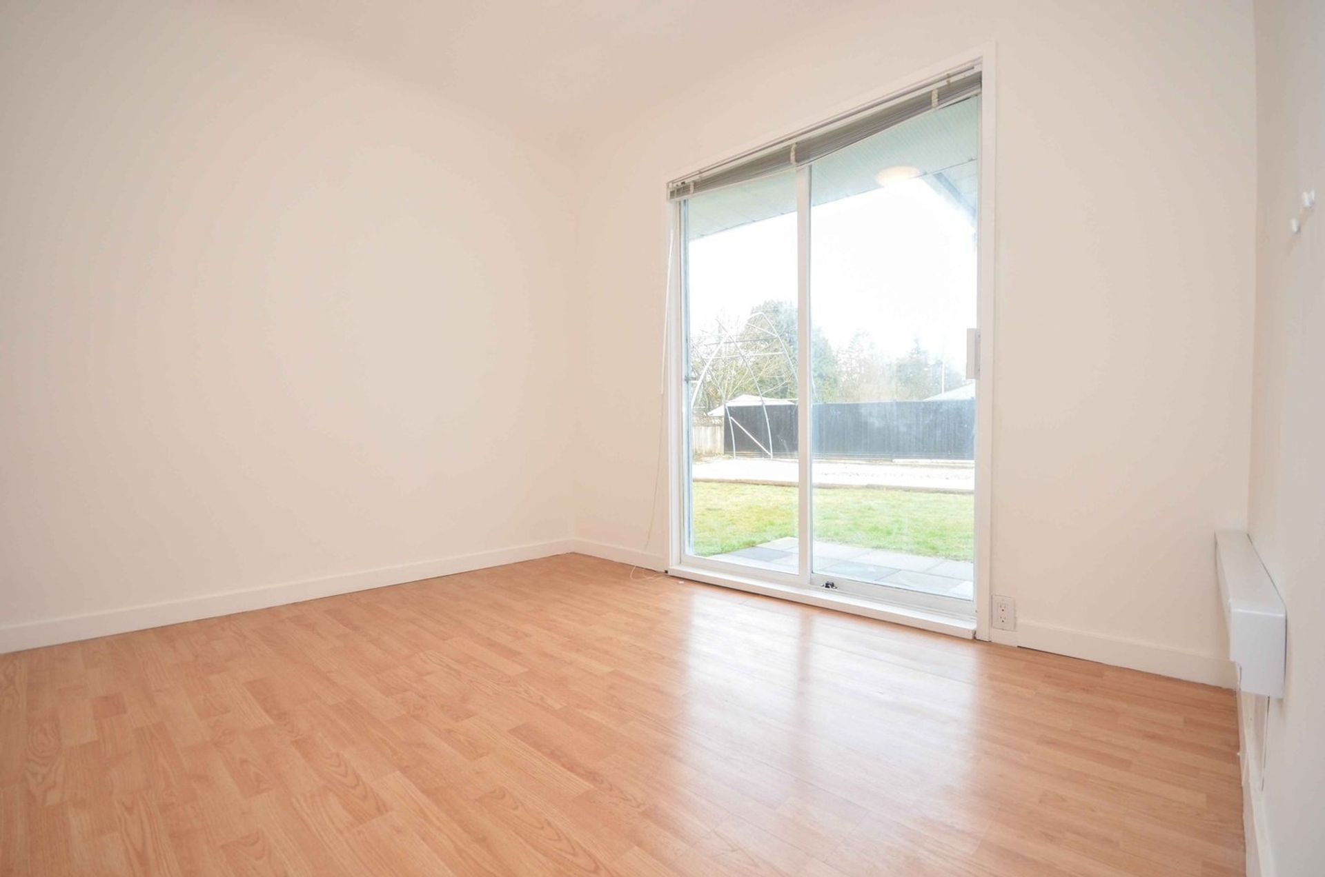 The home's kitchen is tiled and open to an eating area which has access to the extra-large backyard. There is a decent sized living room with a large window to the front yard. Every inch of the home's square footage has been maximized as living space. There are two bedrooms (one without a closet), one with glass sliding doors to the patio area in the backyard. The house is complete with a three-piece bathroom which features a large walk-in shower. The bathroom has a stacked washer and dryer, along with a newer hot water tank. Both bedrooms and the living room have newer laminate flooring and every window is double paned vinyl. Both the interior and exterior of the home has been freshly painted, new flashing has been installed and a new baseboard heater has been installed in one of the bedrooms.