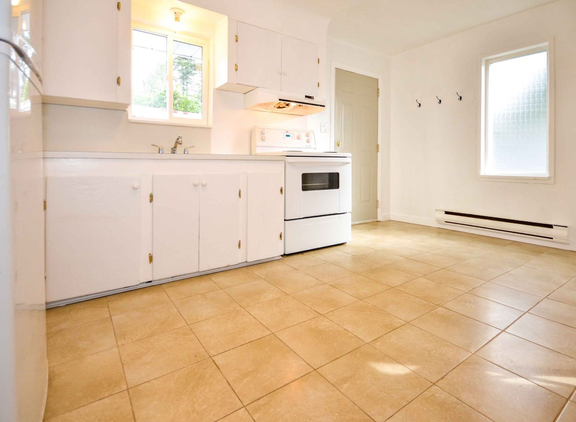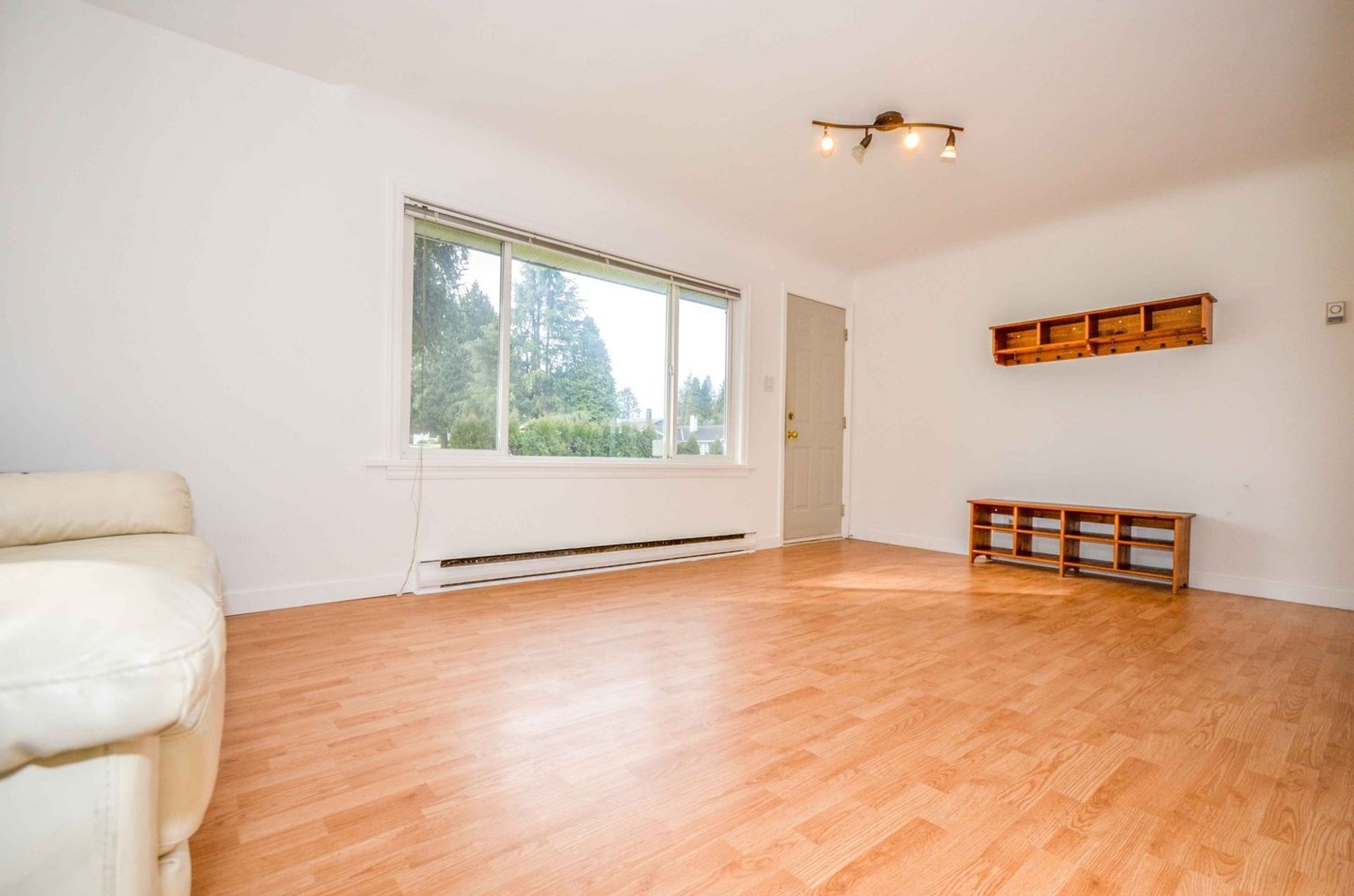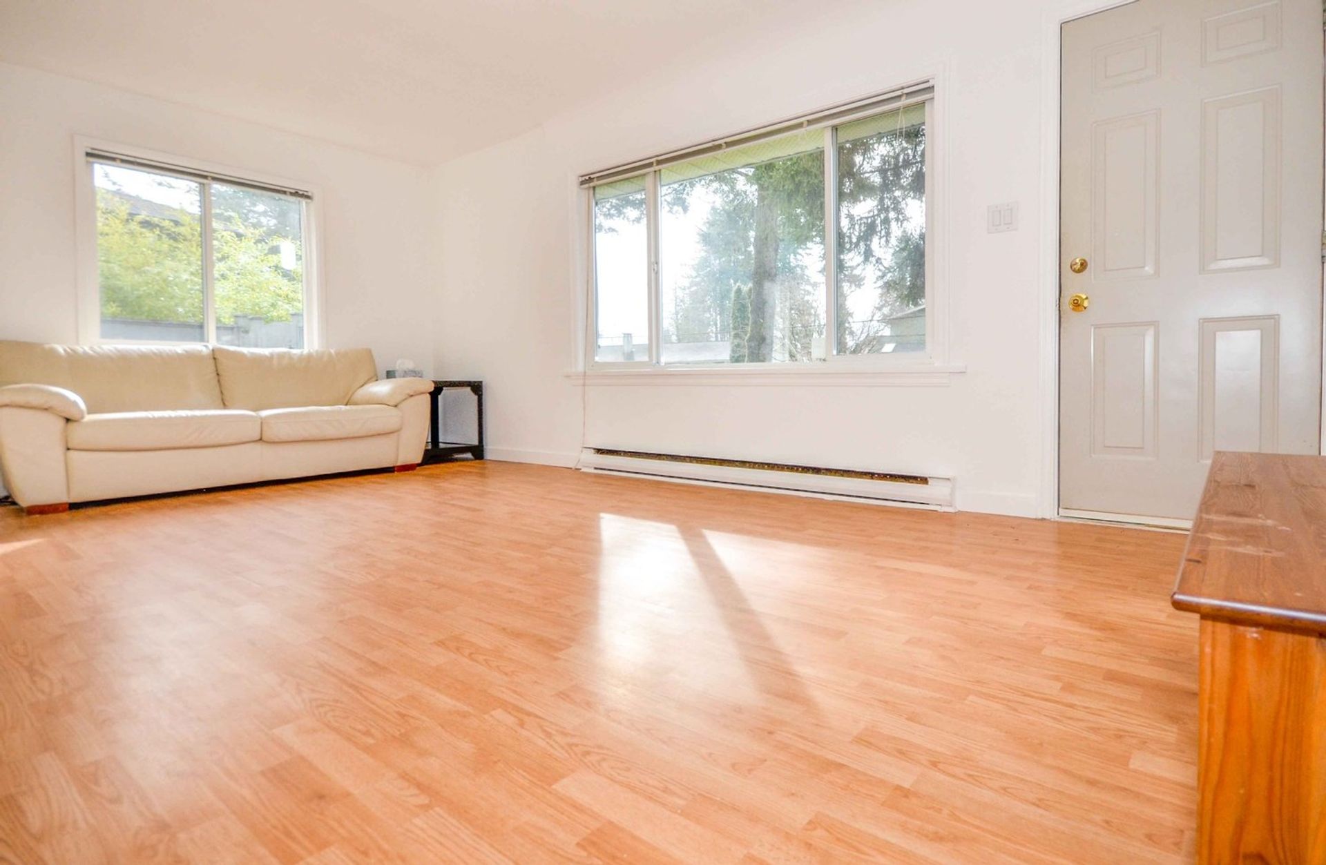 The home's kitchen is tiled and open to an eating area which has access to the extra-large backyard. There is a decent sized living room with a large window to the front yard. Every inch of the home's square footage has been maximized as living space. There are two bedrooms (one without a closet), one with glass sliding doors to the patio area in the backyard. The house is complete with a three-piece bathroom which features a large walk-in shower. The bathroom has a stacked washer and dryer, along with a newer hot water tank. Both bedrooms and the living room have newer laminate flooring and every window is double paned vinyl. Both the interior and exterior of the home has been freshly painted, new flashing has been installed and a new baseboard heater has been installed in one of the bedrooms.