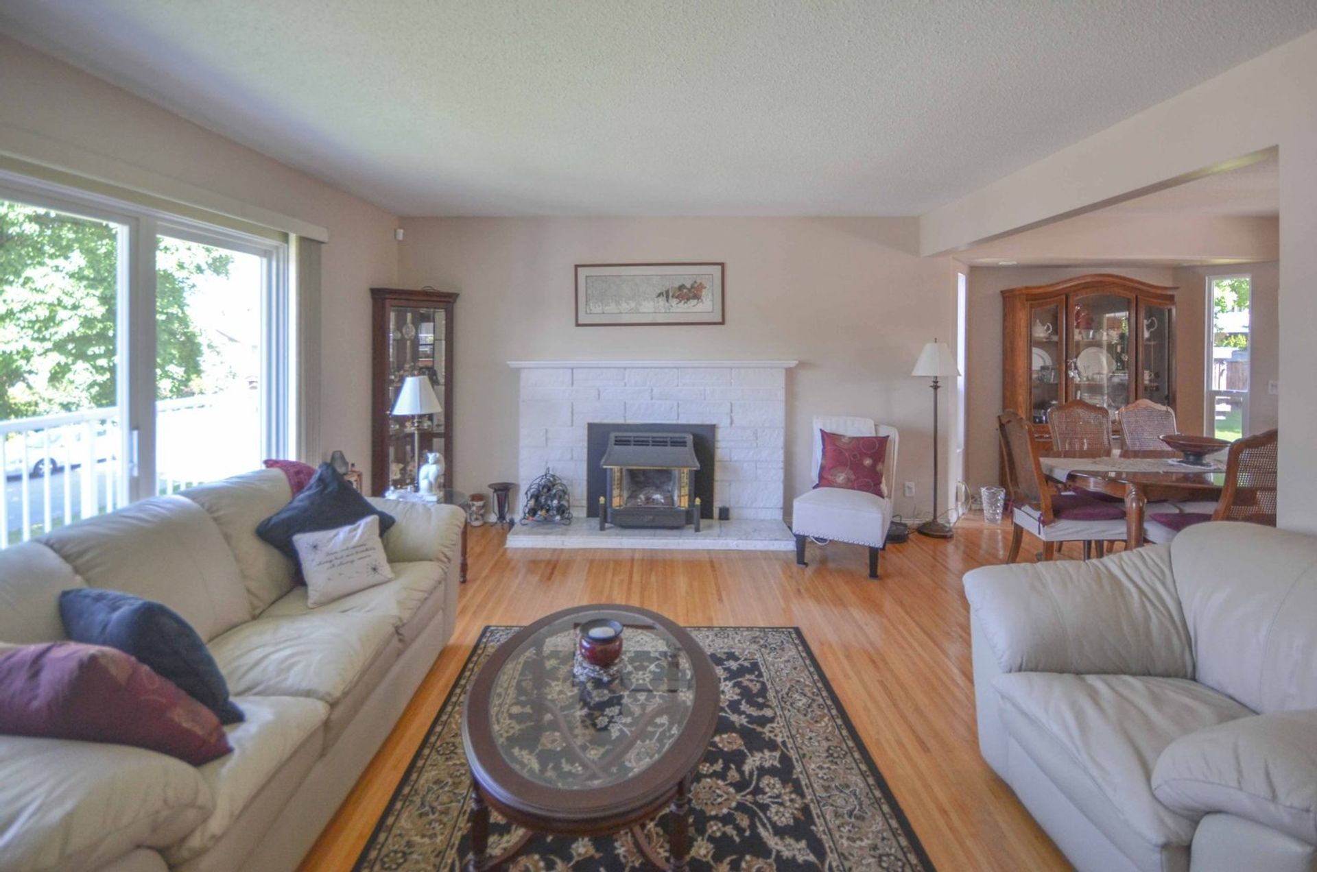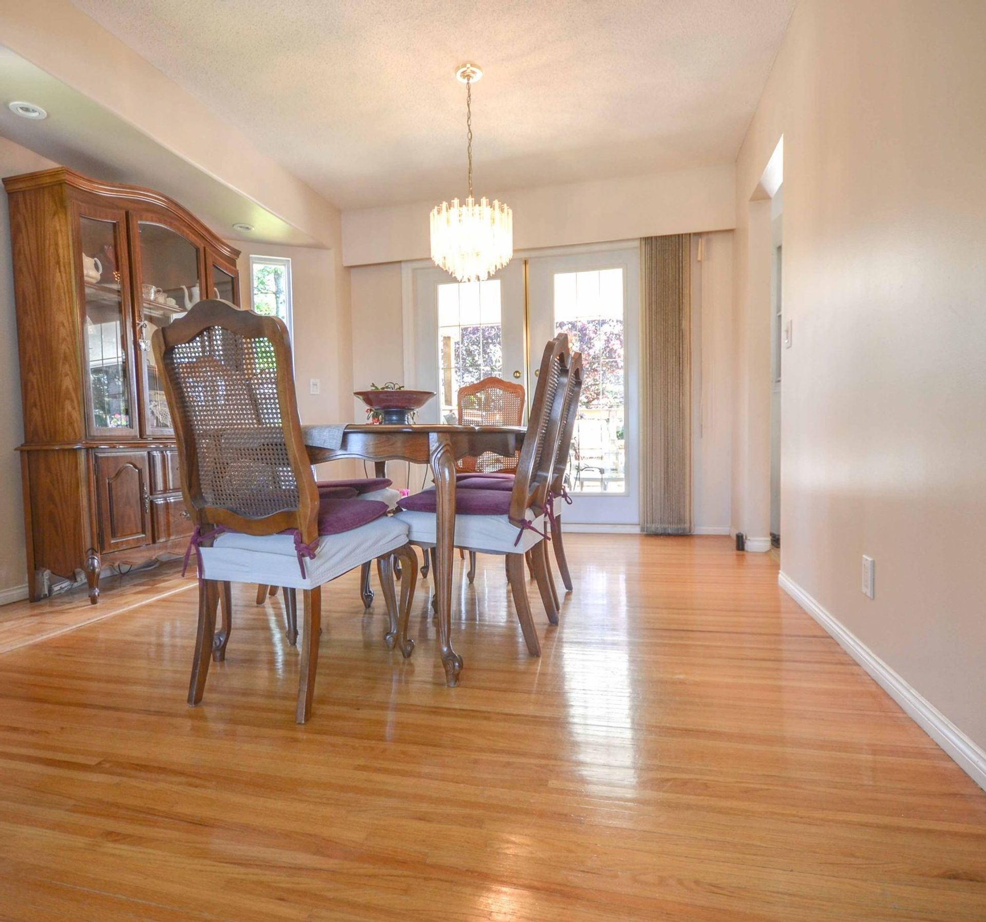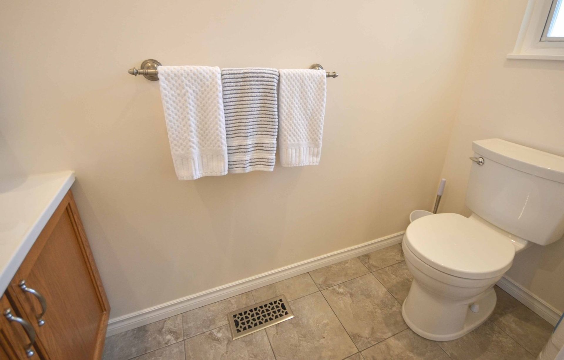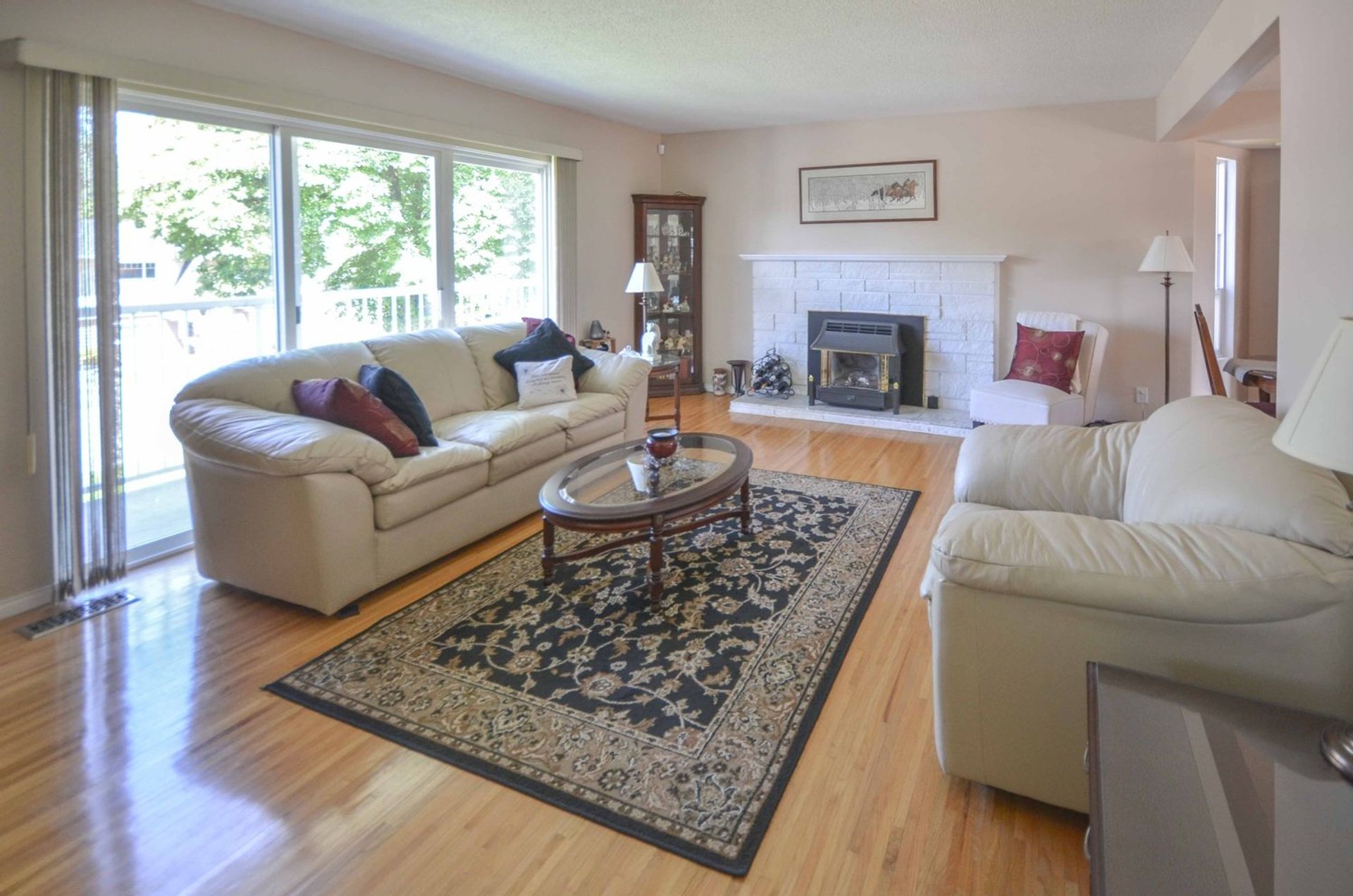 The kitchen provides buyers with enough space for an eating area that could easily be converted into additional storage or counter space as the home’s dining room allows for a full size formal dining table. With all stainless appliances, a built-in microwave, tile backsplash, and updated LED pot lights; the kitchen opens on to a palatial deck. This beautiful outdoor space can also be accessed by French doors from the dining room. The deck is tiered with a substantial covered area providing ample room for year-round use along with a lower section perfect for sun lovers. The outdoor space is ideal for a socially distanced summer of entertaining close friends and family. There is also a small deck at the front of the home through a sliding glass door in the living room which is positioned between two floor-to-ceiling windows leaving the space flushed with natural light. The living room has a gas fireplace and lovingly maintained hardwood floors which are present in the remainder of the main level. There are three bedrooms on this level including the master, which has a walk-in closet and a two-piece ensuite. The main washroom has been renovated to include a deep tiled soaker tub, a linen cabinet, and new lighting. Storage is in no short supply with three deep closets on the main floor.