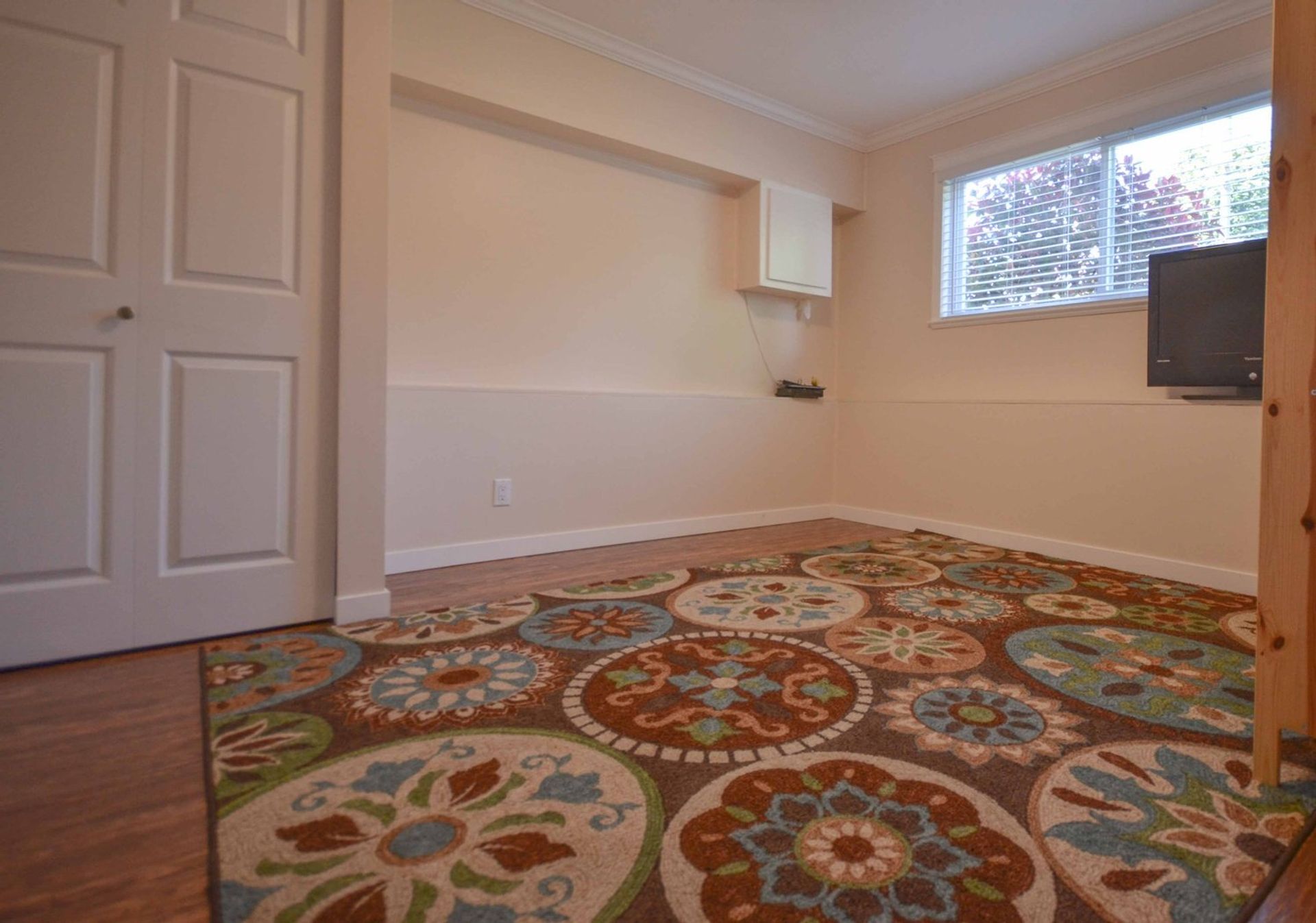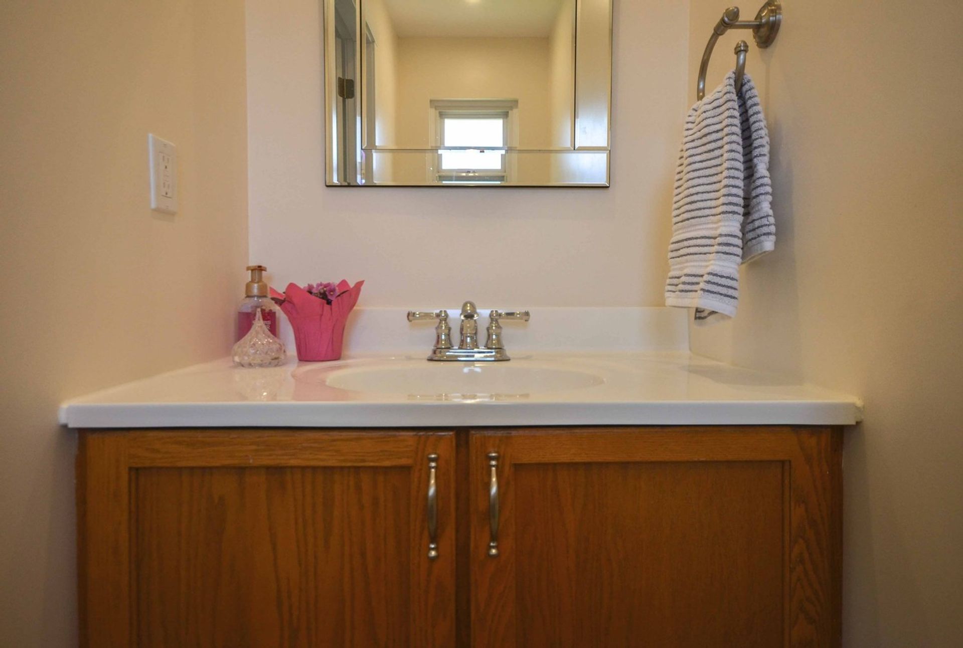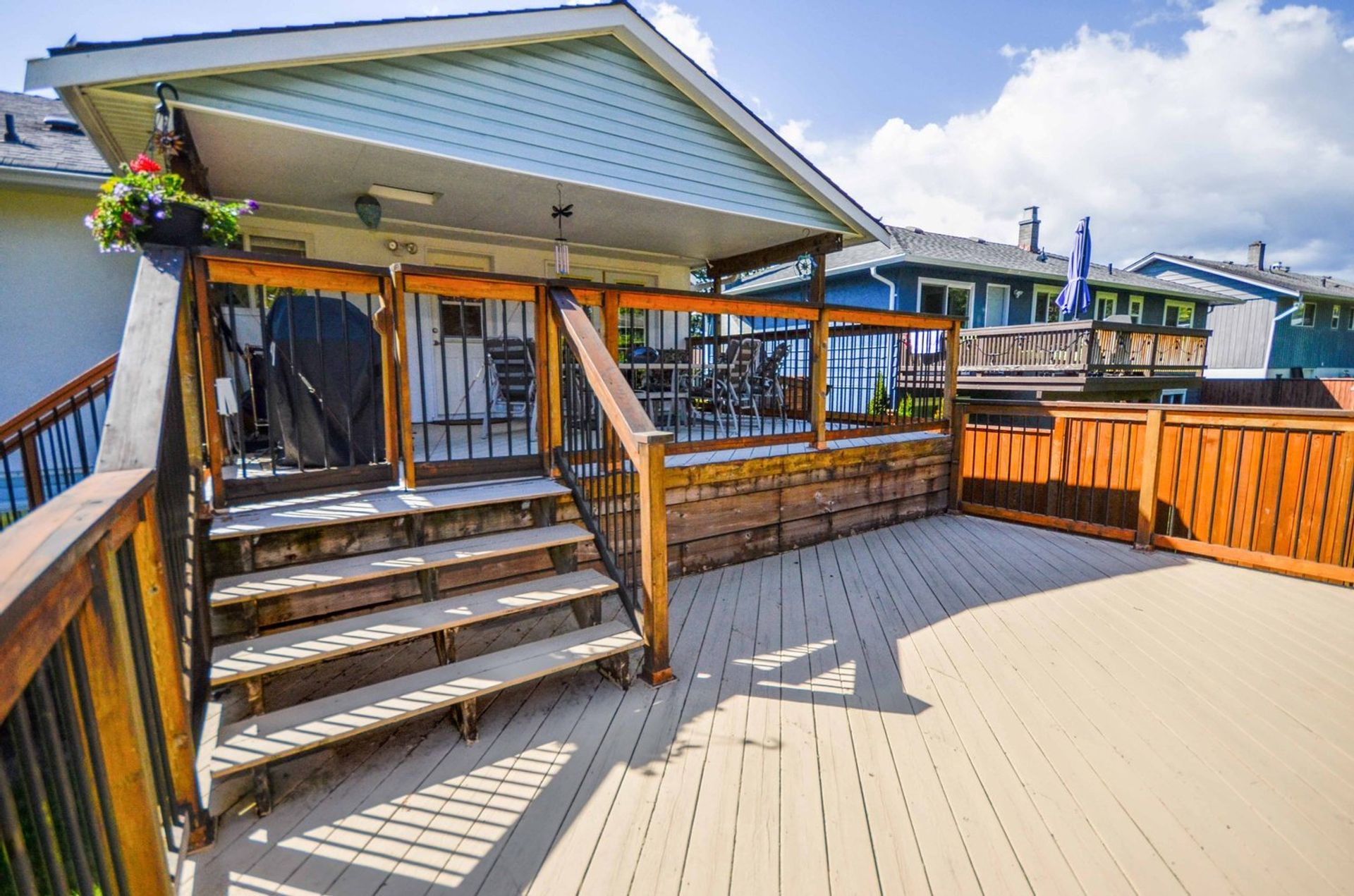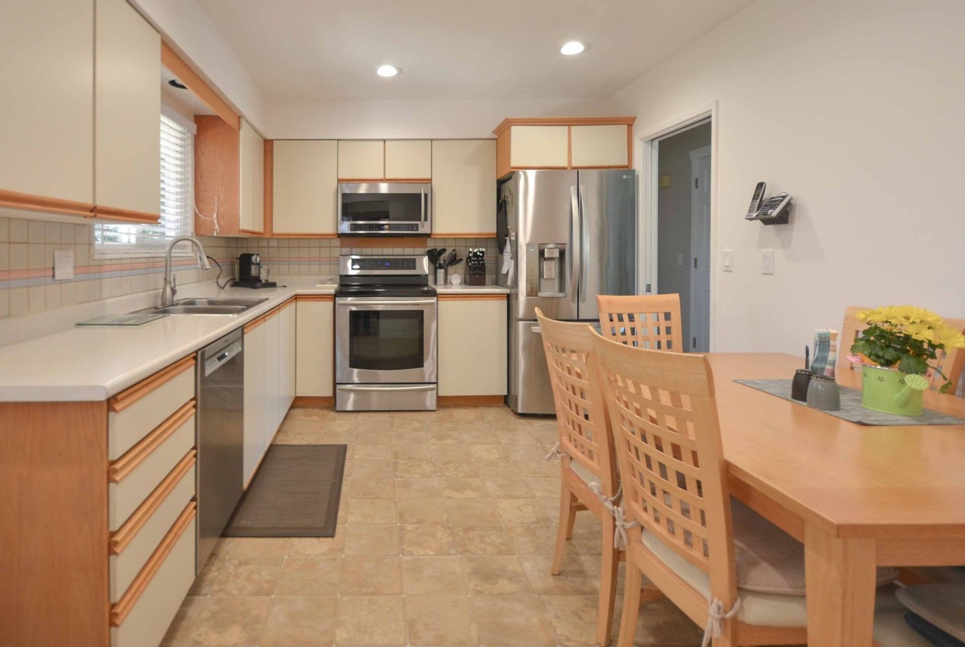 The kitchen provides buyers with enough space for an eating area that could easily be converted into additional storage or counter space as the home’s dining room allows for a full size formal dining table. With all stainless appliances, a built-in microwave, tile backsplash, and updated LED pot lights; the kitchen opens on to a palatial deck. This beautiful outdoor space can also be accessed by French doors from the dining room. The deck is tiered with a substantial covered area providing ample room for year-round use along with a lower section perfect for sun lovers. The outdoor space is ideal for a socially distanced summer of entertaining close friends and family. There is also a small deck at the front of the home through a sliding glass door in the living room which is positioned between two floor-to-ceiling windows leaving the space flushed with natural light. The living room has a gas fireplace and lovingly maintained hardwood floors which are present in the remainder of the main level. There are three bedrooms on this level including the master, which has a walk-in closet and a two-piece ensuite. The main washroom has been renovated to include a deep tiled soaker tub, a linen cabinet, and new lighting. Storage is in no short supply with three deep closets on the main floor.