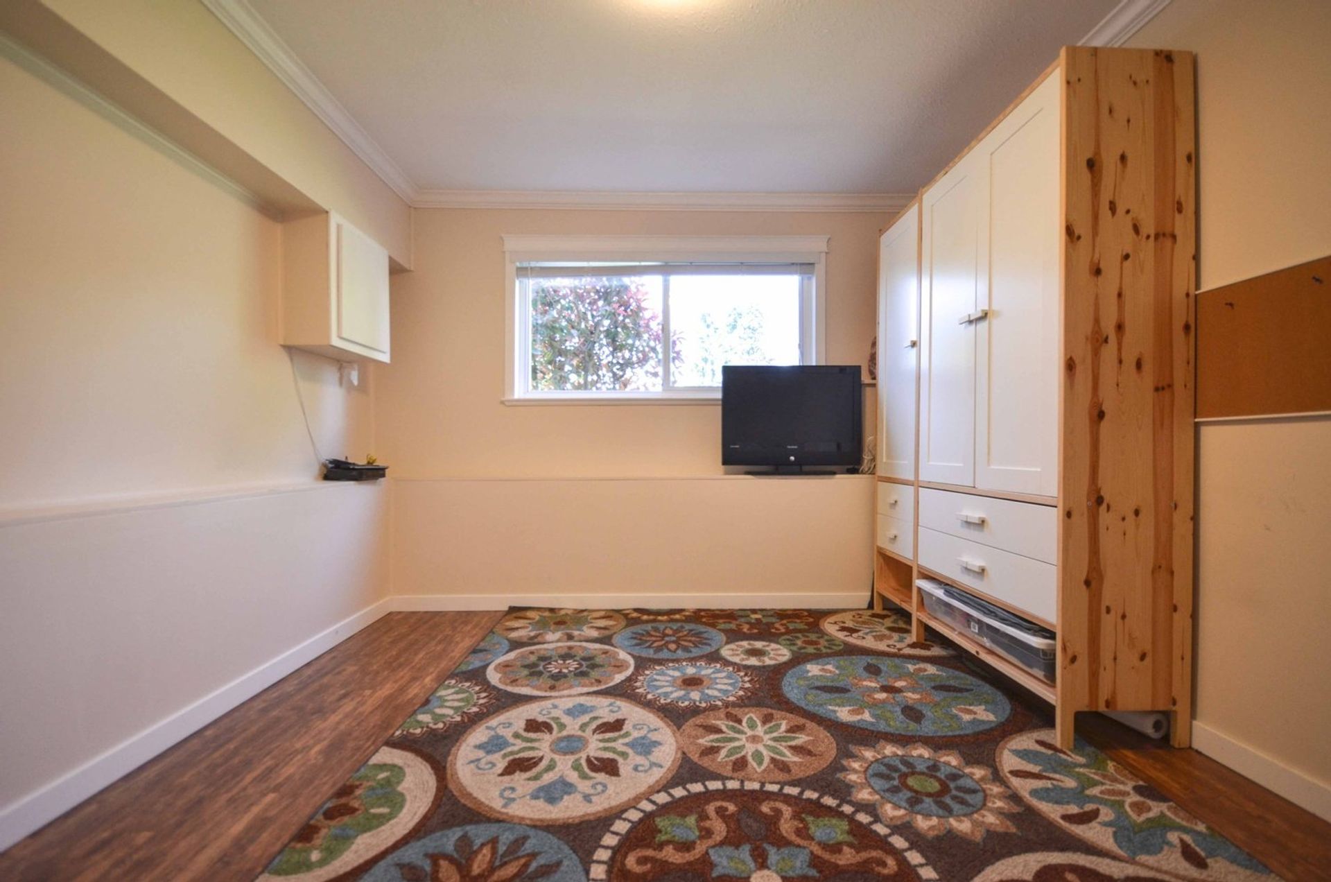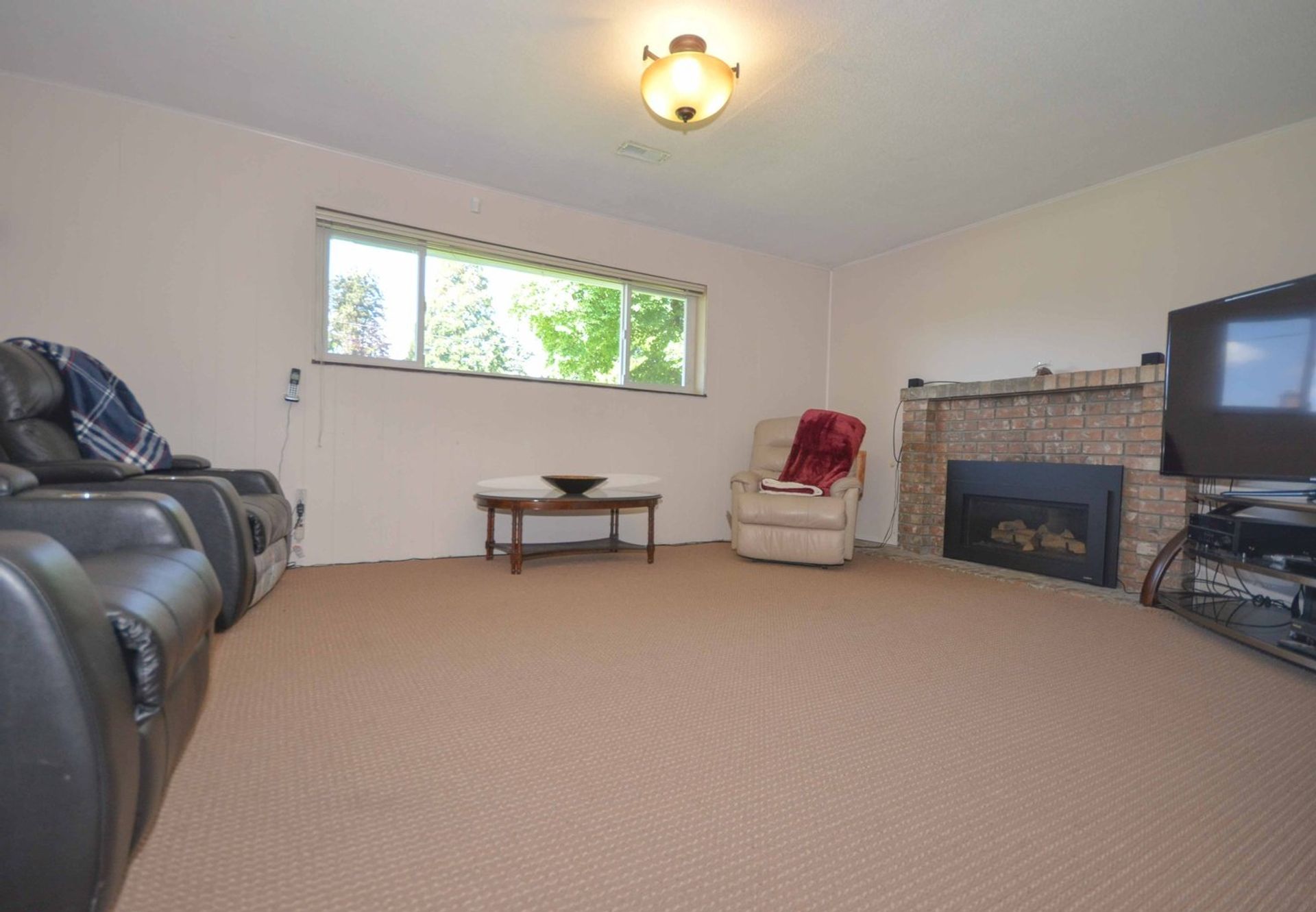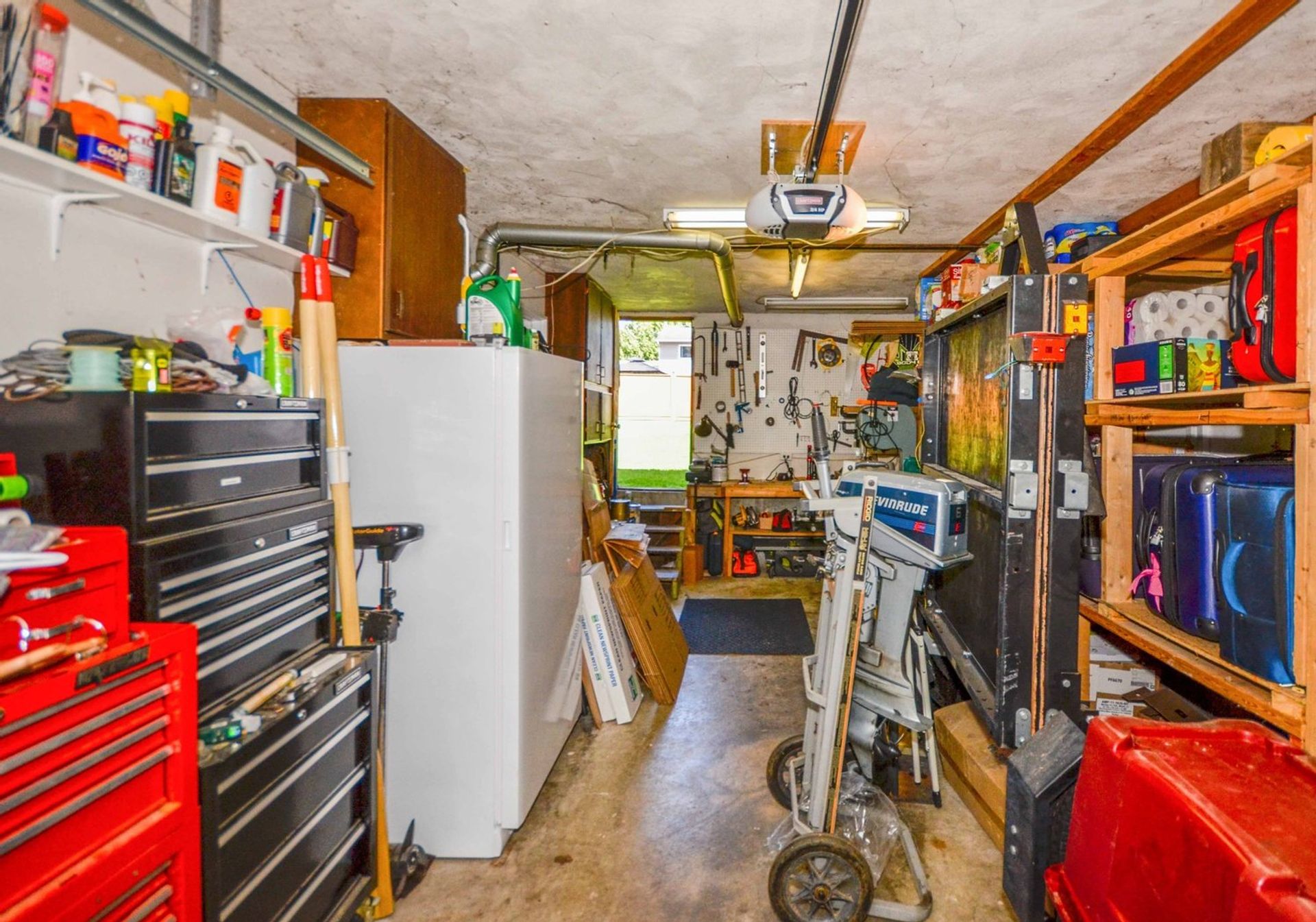 Heading down to the potential suite, the main entrance has been updated and is almost entirely etched glass, allowing for extra light and a fantastic sense of openness. On the lower level there are two bedrooms, both tucked away at opposite ends of the home. There is a recreation room which is open to a flex area that could easily be converted to a kitchen and living room. The flex area houses a double sink with cabinetry and a fridge, while the recreation room has a one year old gas fireplace with a brick mantle and a window to the front yard. The laundry room has a dedicated wash sink and leads to a three-piece washroom. There is a single car garage which is currently used as a shop and storage area as there is room to park multiple cars and an RV on the driveway. Under stair storage completes the lower level of this family home.