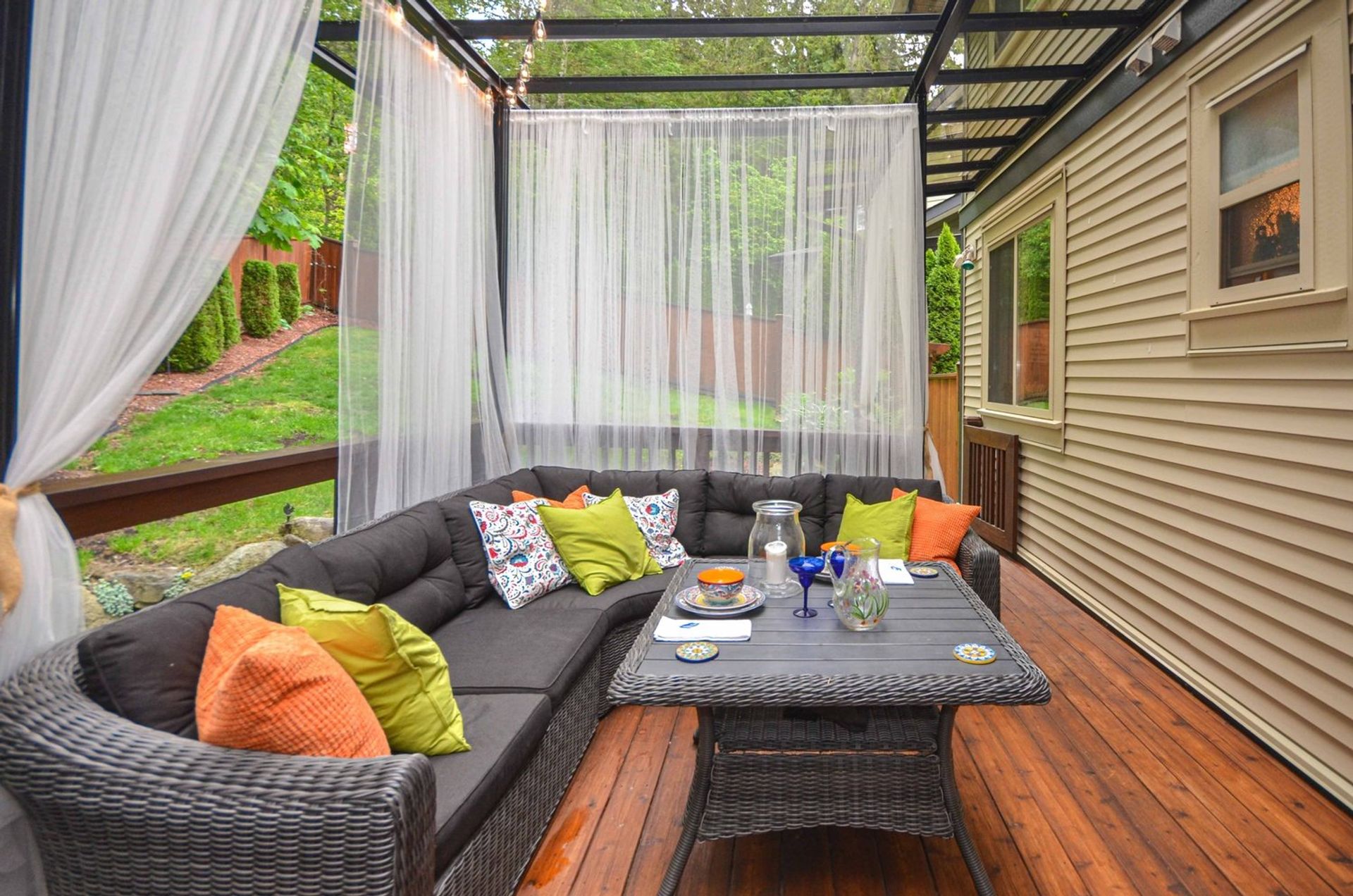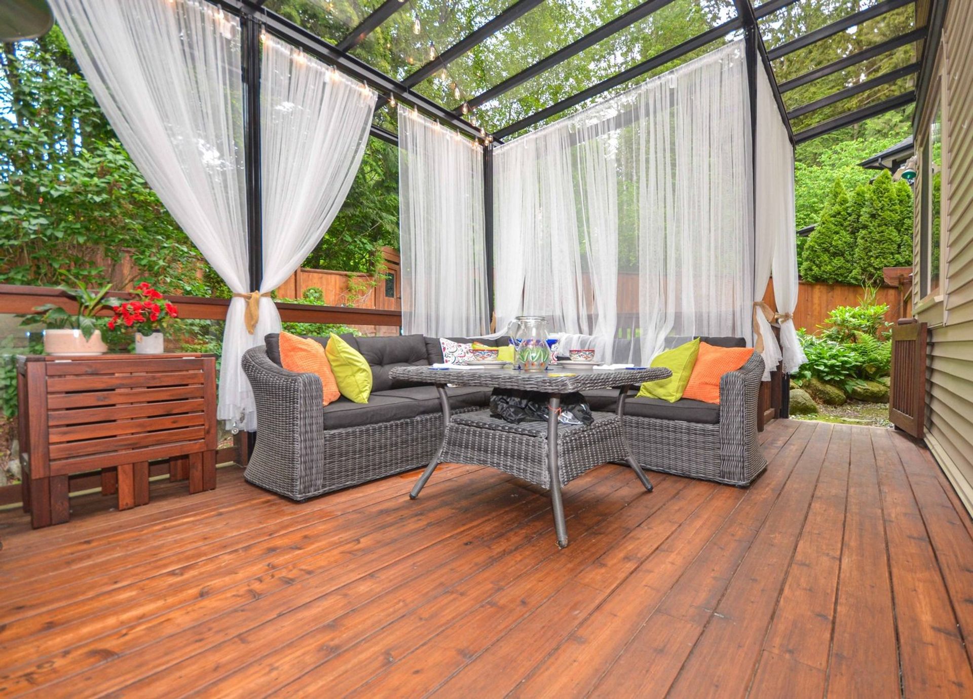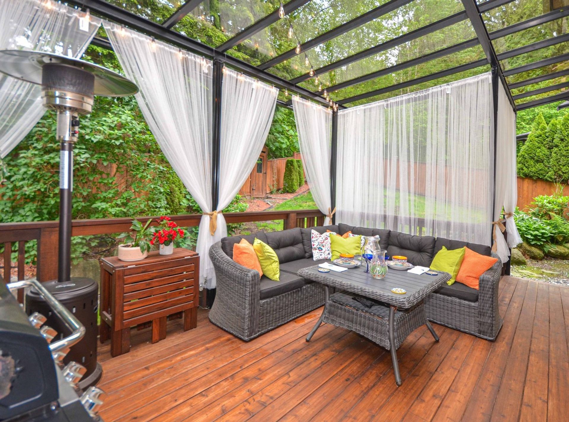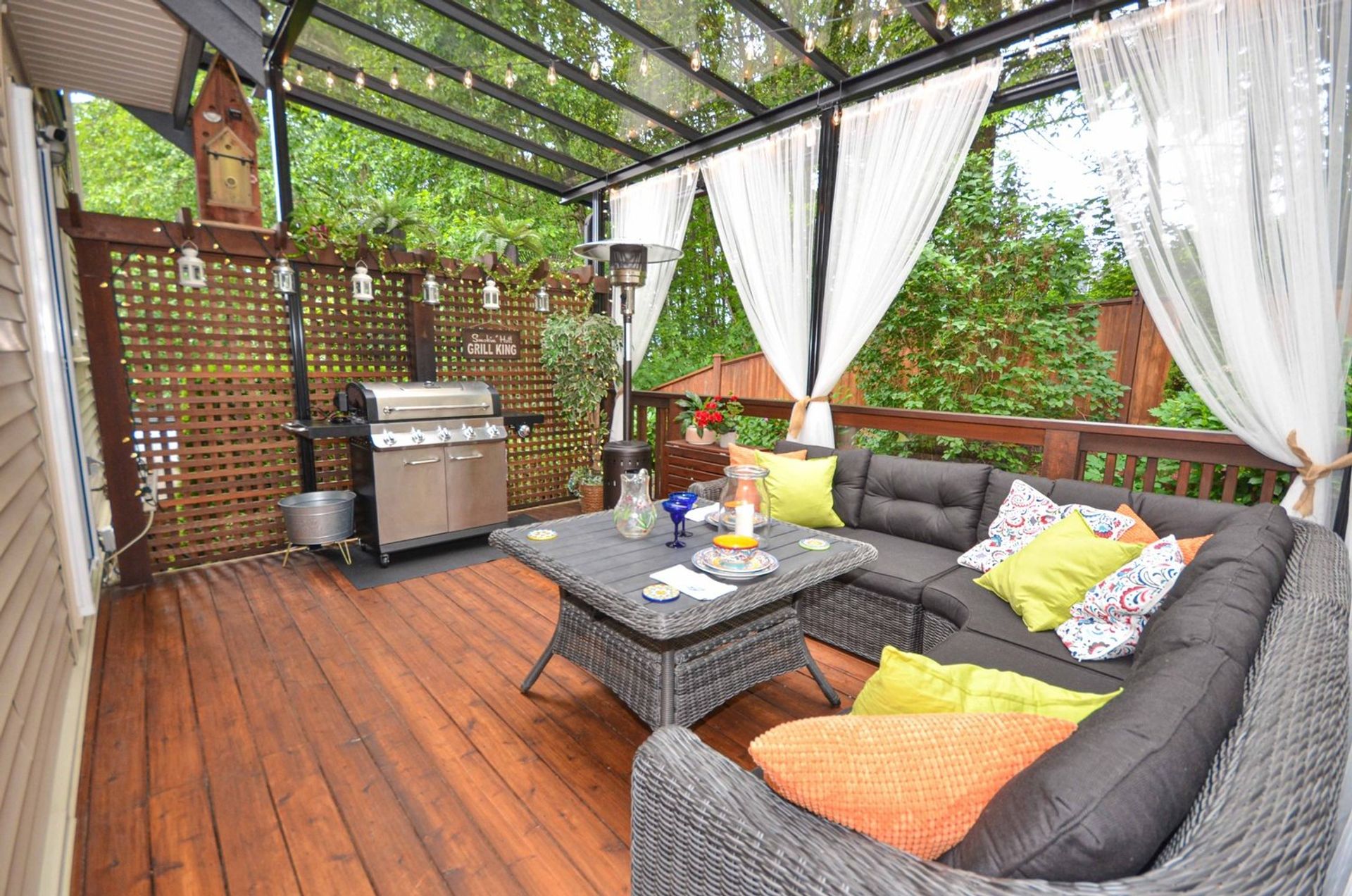 All of this without mention of the home's idyllic backyard set up; accessible off the home’s kitchen. A fully covered back deck with a glass roof creates a year-round outdoor oasis. The beautifully stained wooden deck is large enough for a full patio set including a dedicated BBQ area. The backyard itself is fully fenced and backs on to a preserved greenbelt acting as the perfect barrier from neighbouring home’s and creating a sense of calmness.