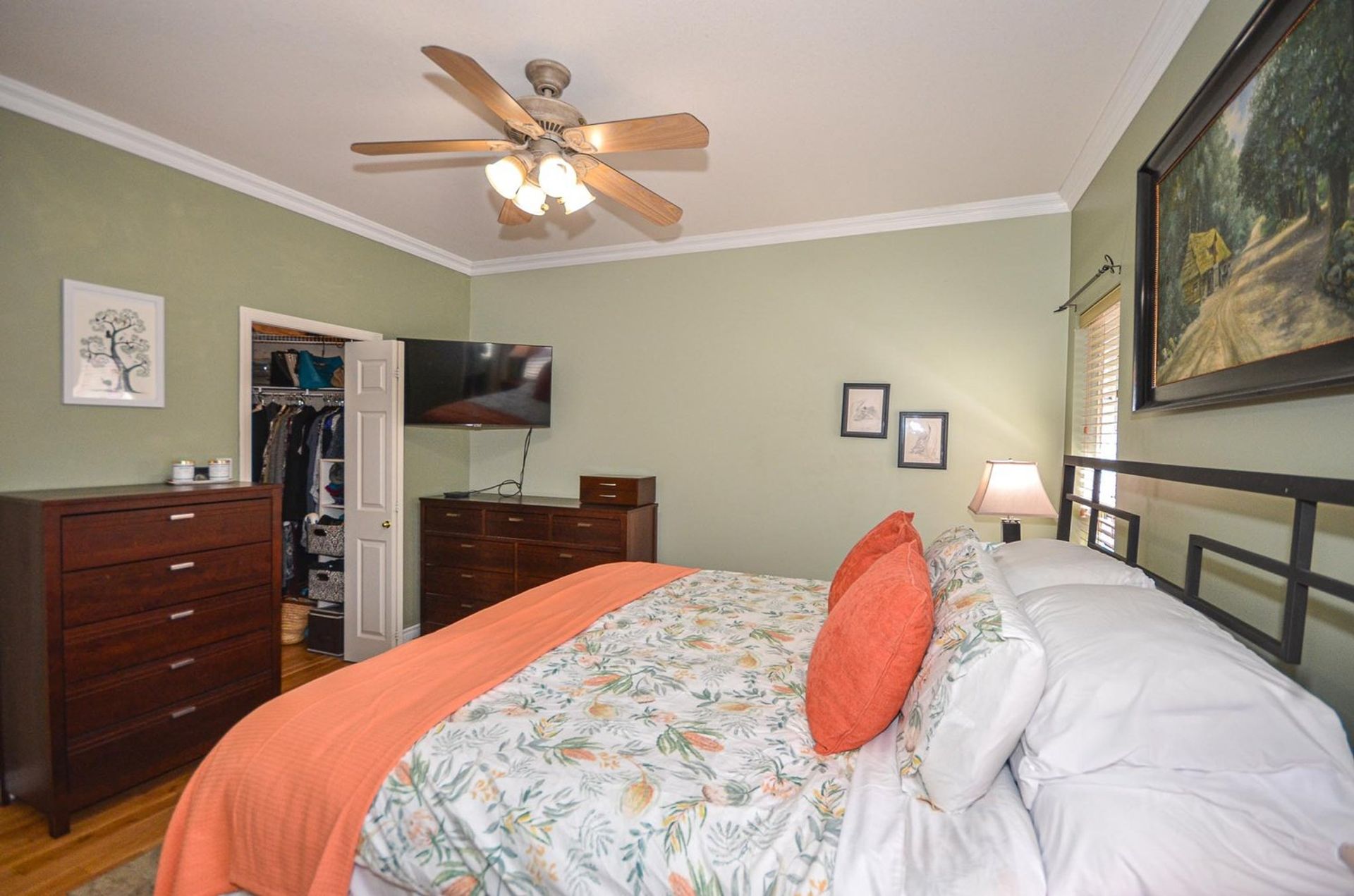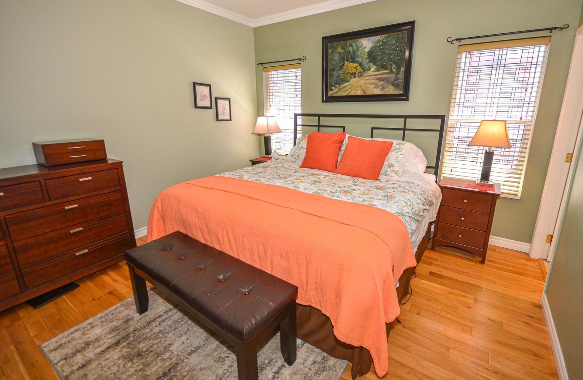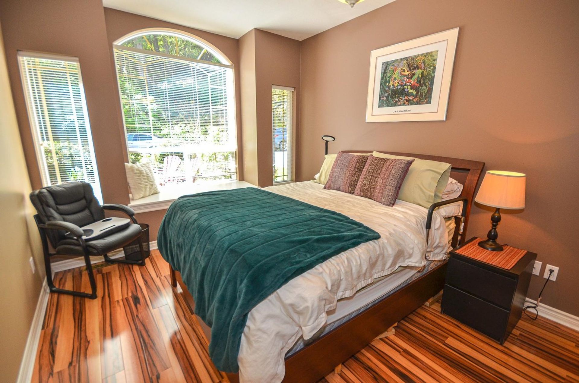 The kitchen has a gas range, a built-in microwave, a deep double sink with a stellar view, a French door fridge, and a dedicated pantry. It is open to an eating area which has a sliding glass door onto a covered back deck with enough space for a BBQ and sitting area. The living room and dining room have eleven-foot vaulted ceilings, a gas fireplace, and large centralized windows to accentuate the view. There are two bedrooms on the main floor including the primary bedroom with a sizable walk-in closet and a three-piece ensuite; the secondary bedroom is flush with natural light and features a reading nook. Main level is complete with a laundry room and access to the home's double garage.
