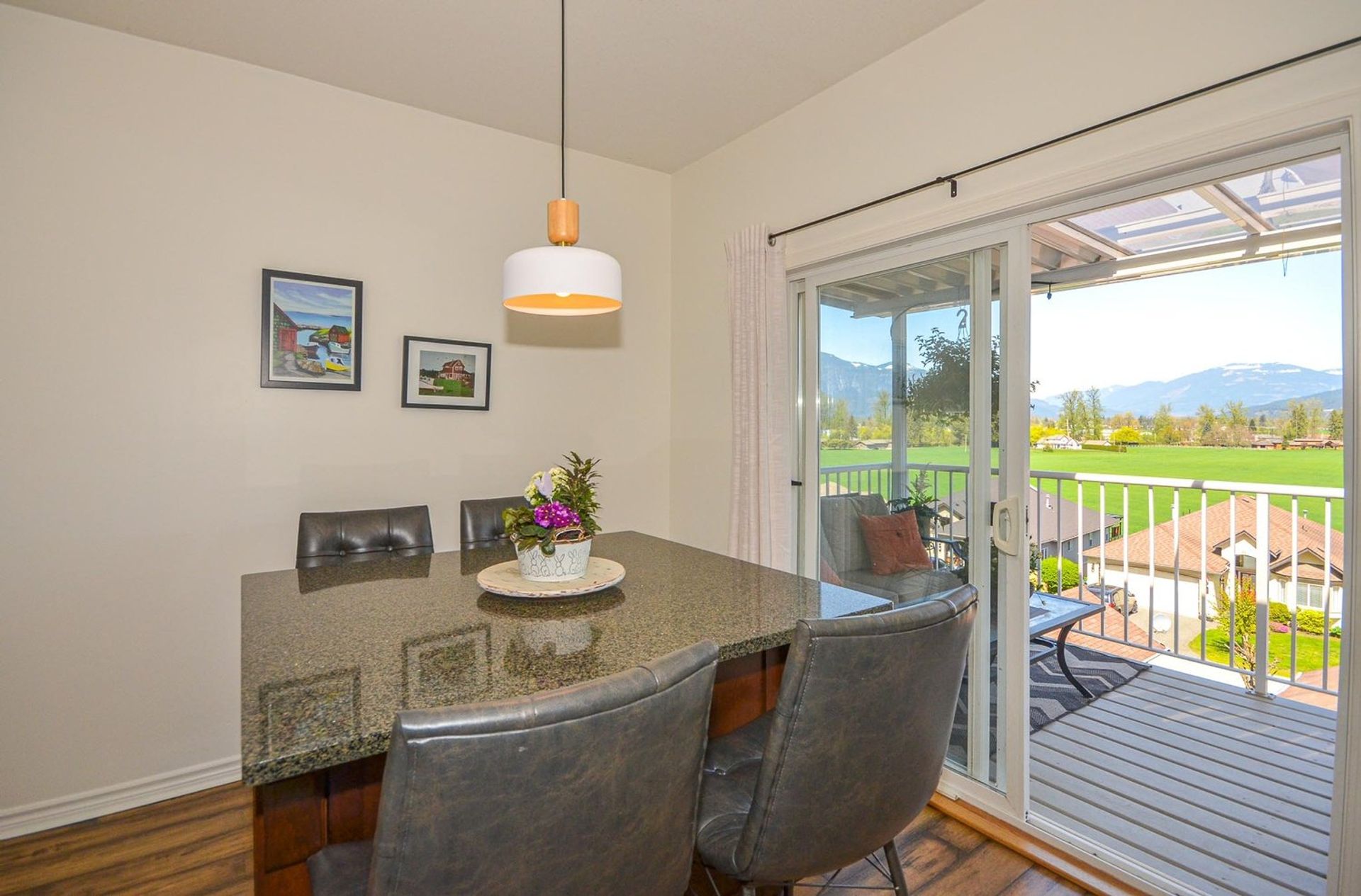 The home has air conditioning, the hot water tank is new, the roof is two years old, and the strata fee is $160 a month. Fresh air, a natural setting, space for a suite and/or extended family potential. Less than 30 minutes from Harrison Lake, and five to Chilliwack’s town centre. Book a showing and come experience the view firsthand. It needs to be seen in person.