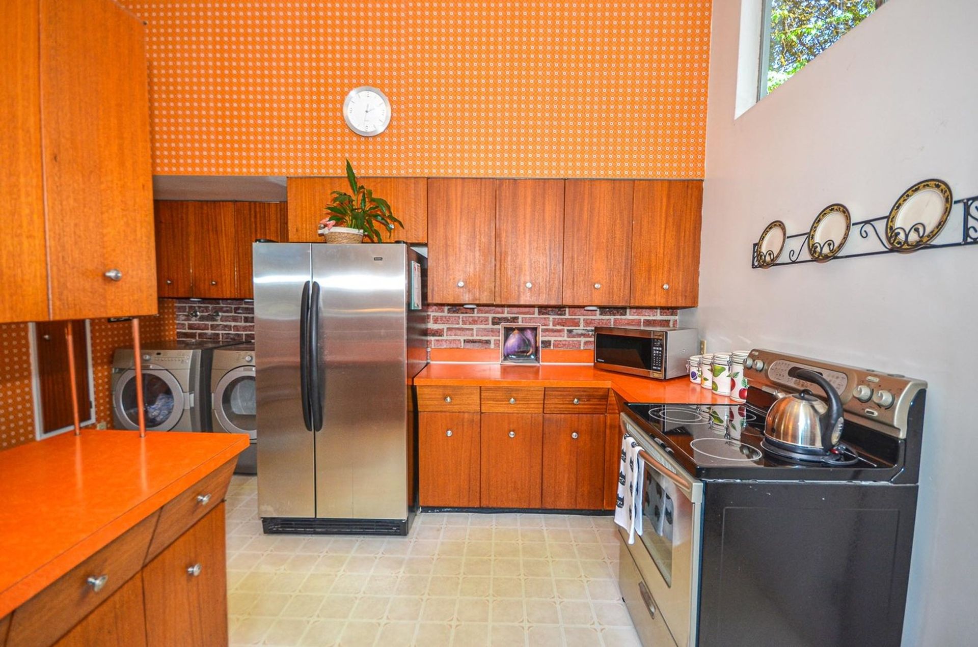 The original owners of this split-level home have kept it in immaculate condition over the years. There are preserved hardwood floors under the carpet in the living room and a vaulted ceiling throughout the main level. To say that this home has character is an understatement. There are three bedrooms upstairs, one with mountain views towards Golden Ears. The basement is partially finished and has roughed in plumbing; there is room for an extra bedroom or a bachelor suite.