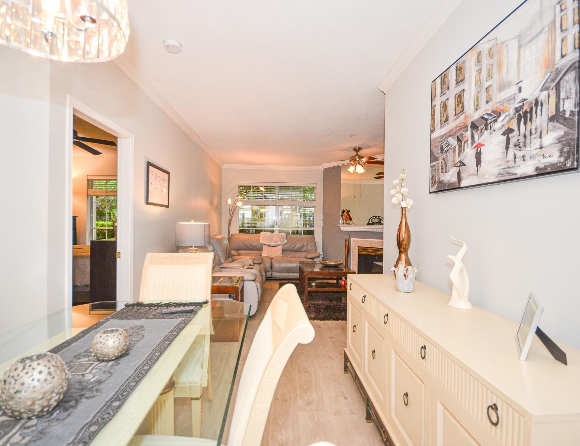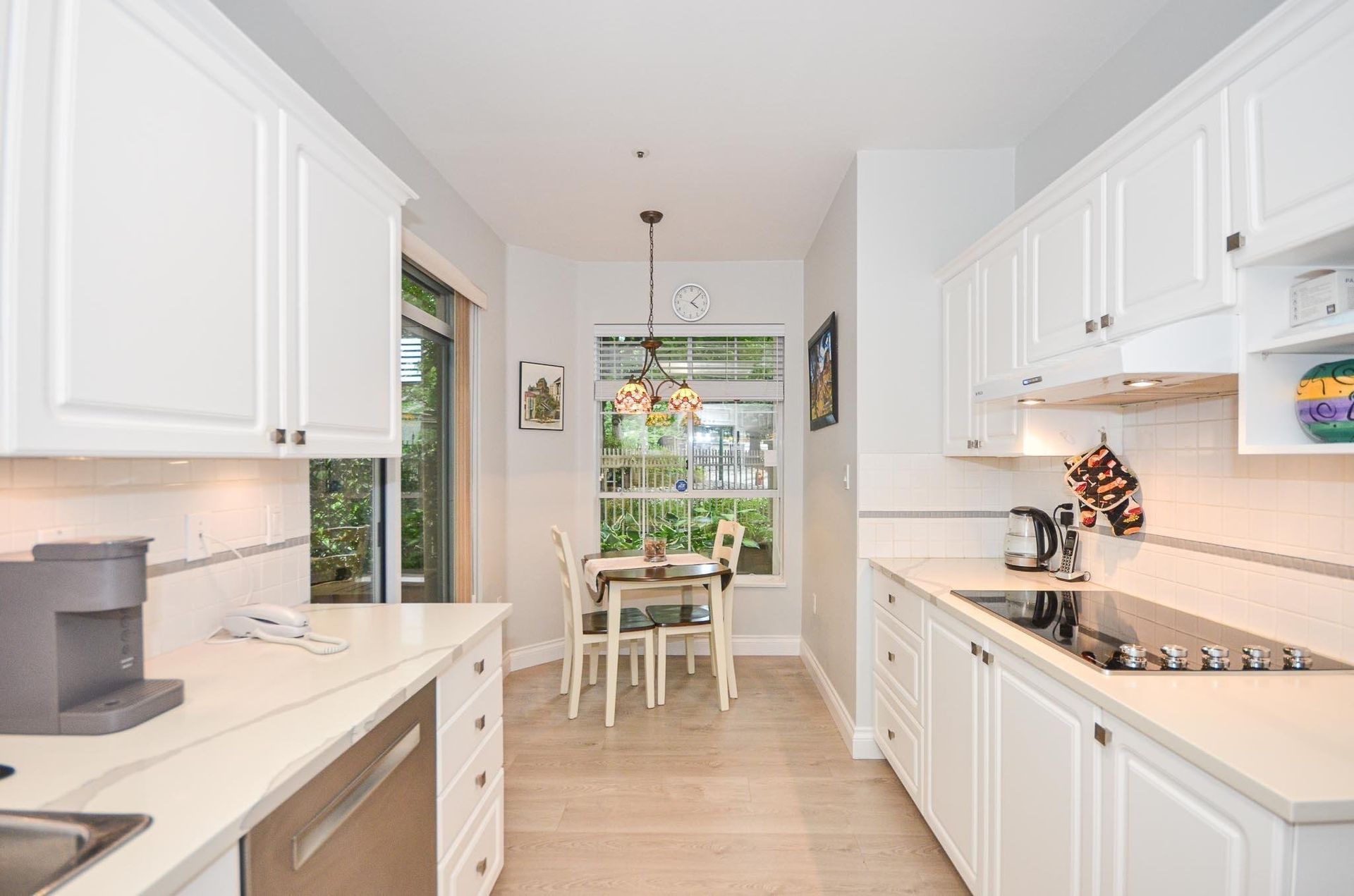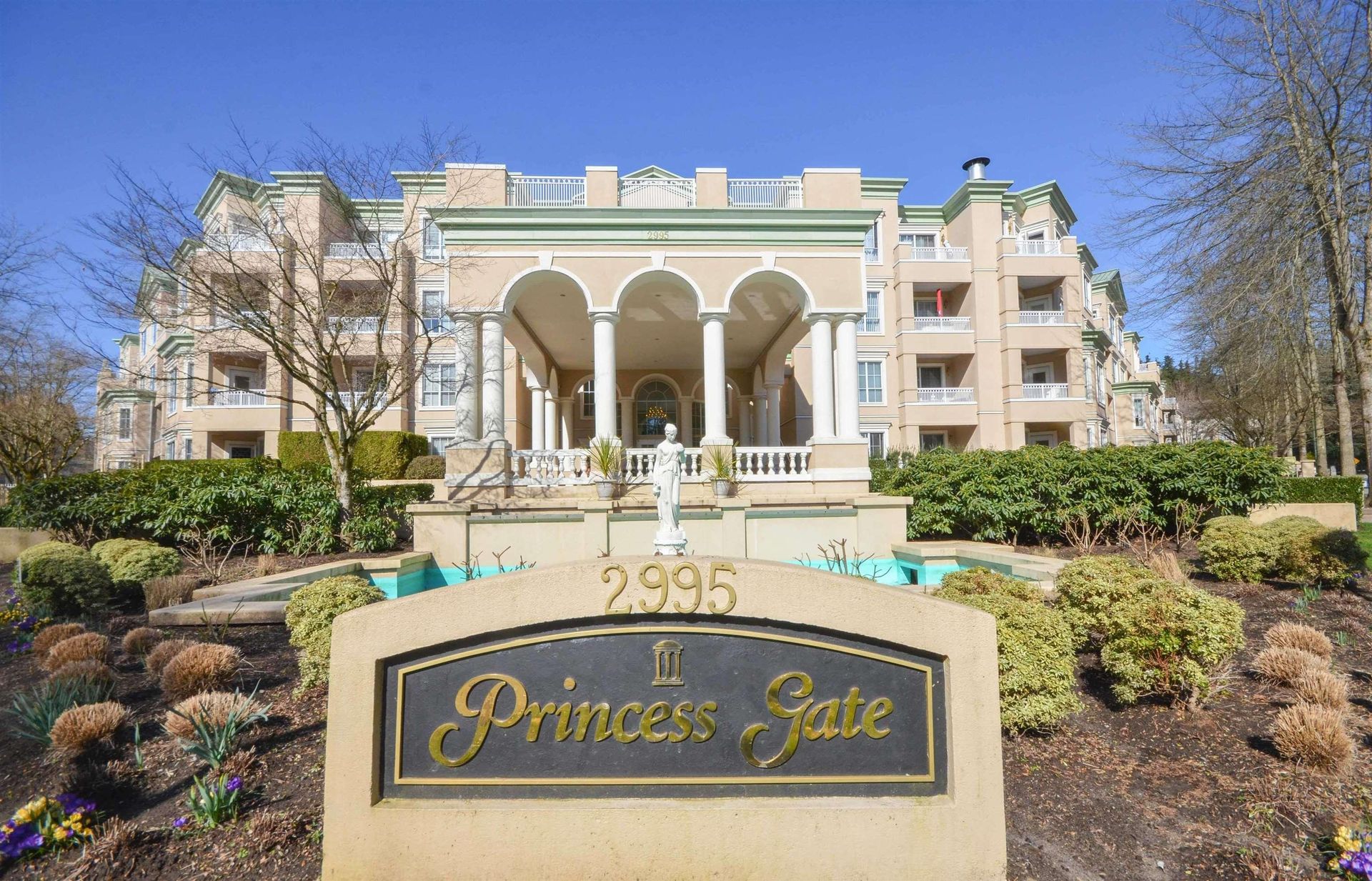 Welcome to Princess Gate and this exceptional ground floor updated home. A corner condo that gives you direct access to the street, ideal for groceries & guests. You look out onto a tree lined walkway creating a calm & peaceful setting for enjoying your patio. This home features 9' ceilings, 2 bed/2 bath, laundry/storage area & lots of natural light. Updates; kitchen, ensuite, lighting, paint. Conveniently located across the hall are the guests suites & your storage locker. 2 side by side parking stalls are close to the elevator. This complex offers; pool, gym, library, 'pub', full workshop, grandchild's play room, bike storage, car wash & more. Walk to all of your needs including Coquitlam Centre, Lafarge Lake, Skytrain,bus, parks, restaurants. This is PLUS 55 age building, one pet allowed either a dog or cat.