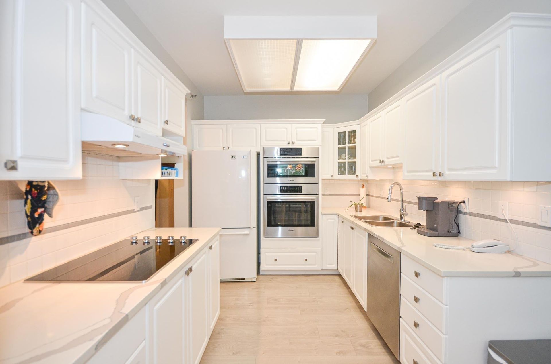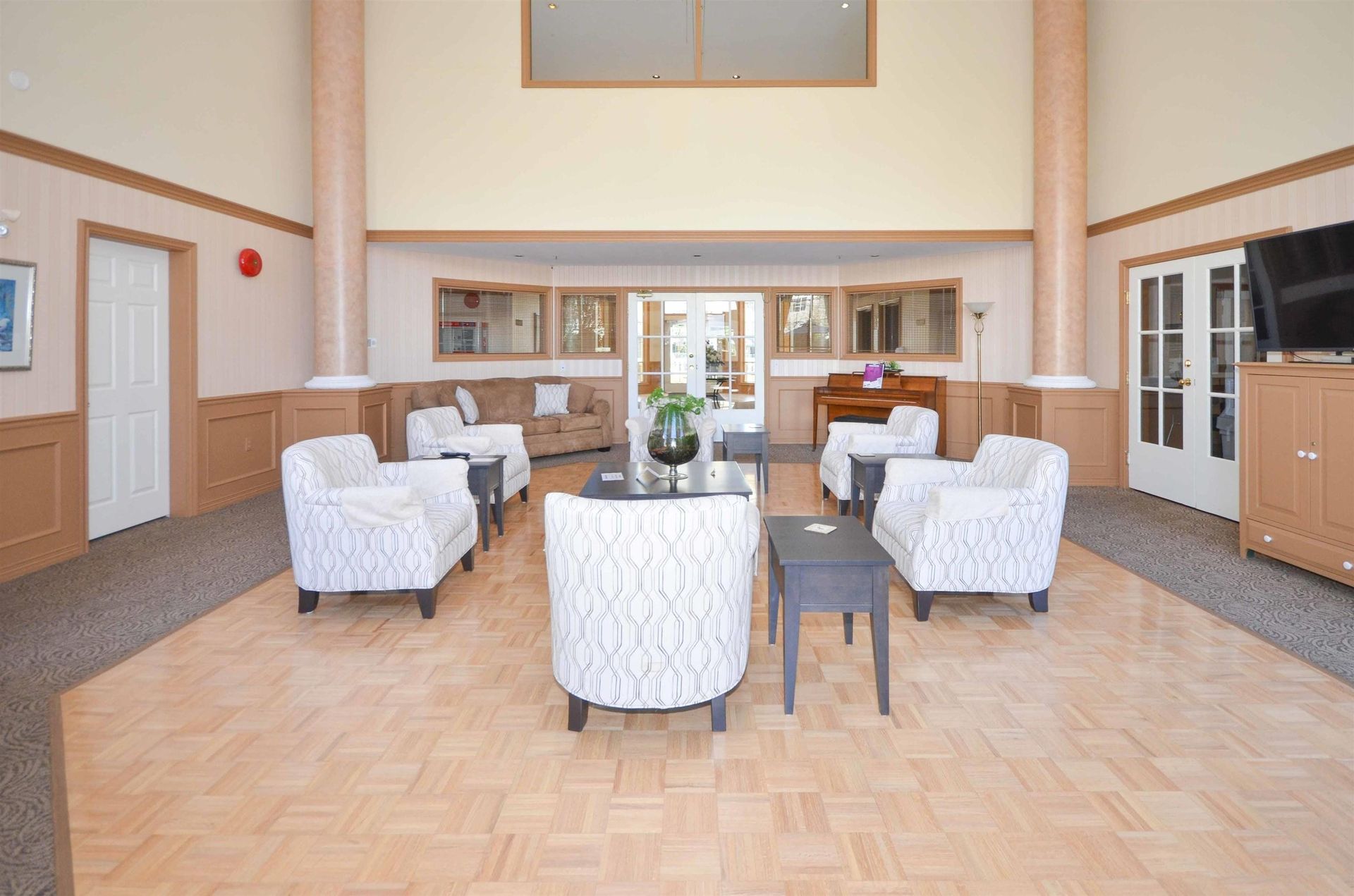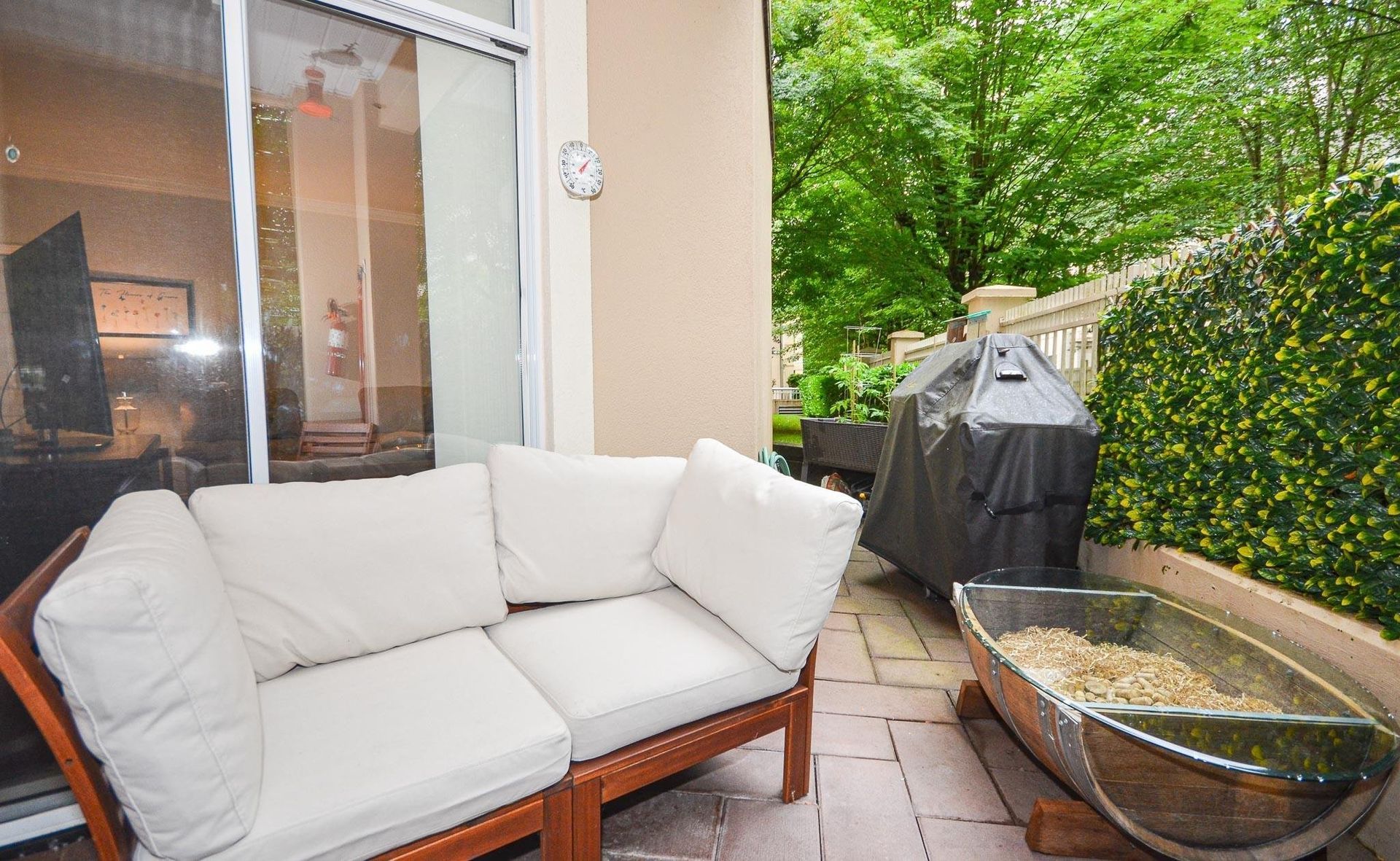 Welcome to Princess Gate and this exceptional ground floor updated home. A corner condo that gives you direct access to the street, ideal for groceries & guests. You look out onto a tree lined walkway creating a calm & peaceful setting for enjoying your patio. This home features 9' ceilings, 2 bed/2 bath, laundry/storage area & lots of natural light. Updates; kitchen, ensuite, lighting, paint. Conveniently located across the hall are the guests suites & your storage locker. 2 side by side parking stalls are close to the elevator. This complex offers; pool, gym, library, 'pub', full workshop, grandchild's play room, bike storage, car wash & more. Walk to all of your needs including Coquitlam Centre, Lafarge Lake, Skytrain,bus, parks, restaurants. This is PLUS 55 age building, one pet allowed either a dog or cat.