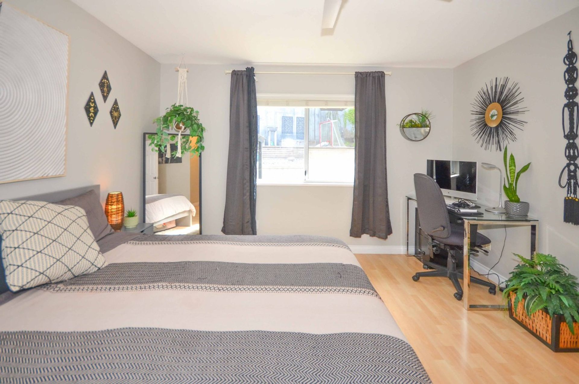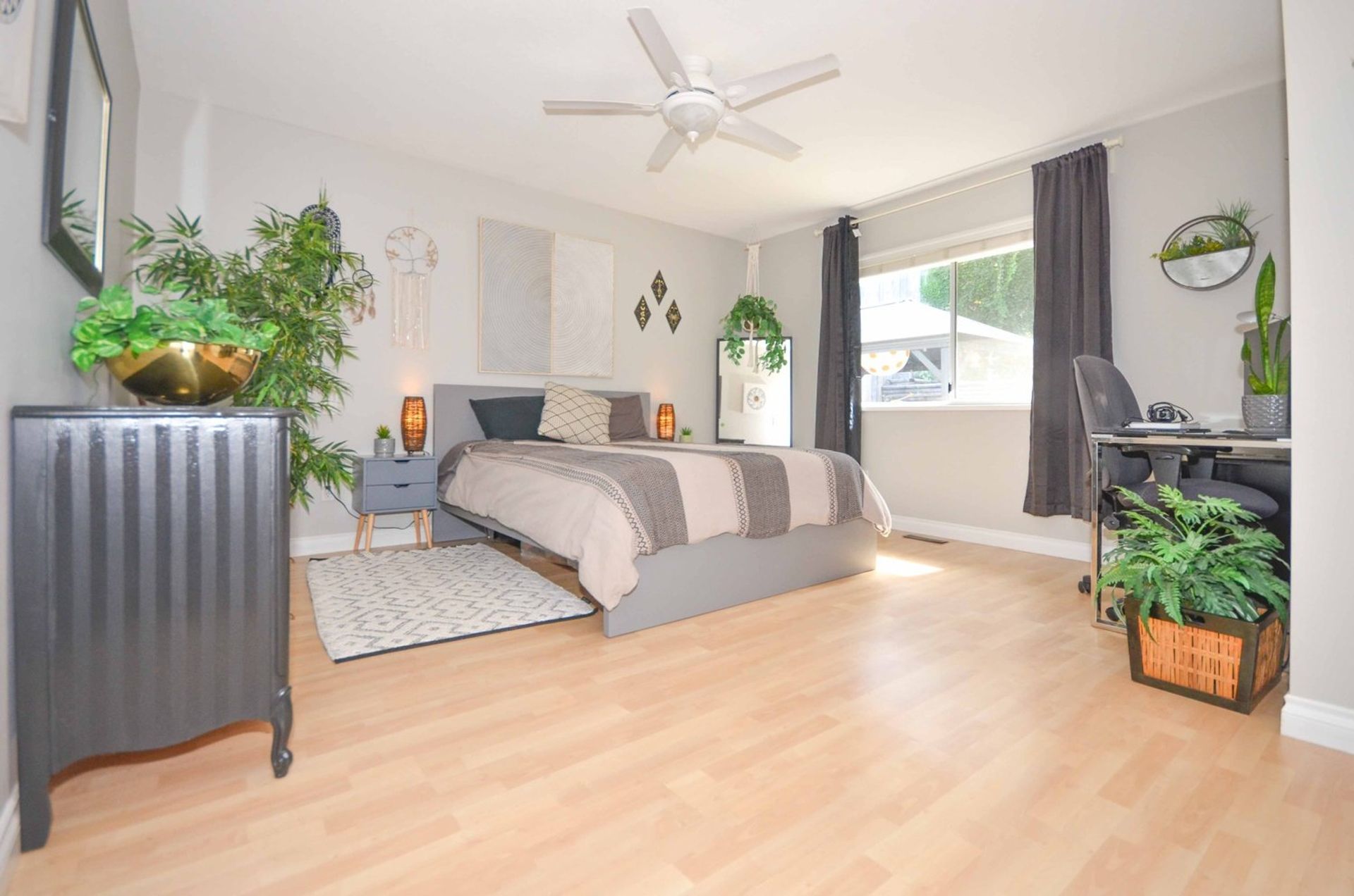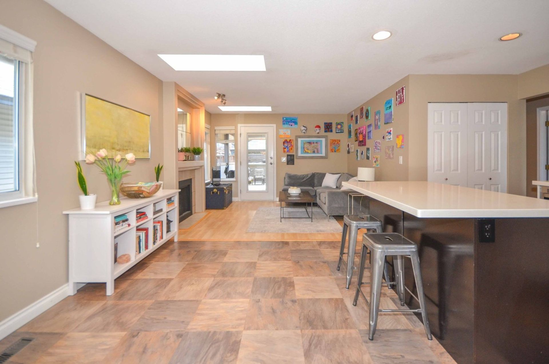 The primary bedroom is substantial with a walk-in closet, four-piece ensuite, and enough room for a dedicated work area. Two additional bedrooms and a main bathroom complete the main living area of this home.
