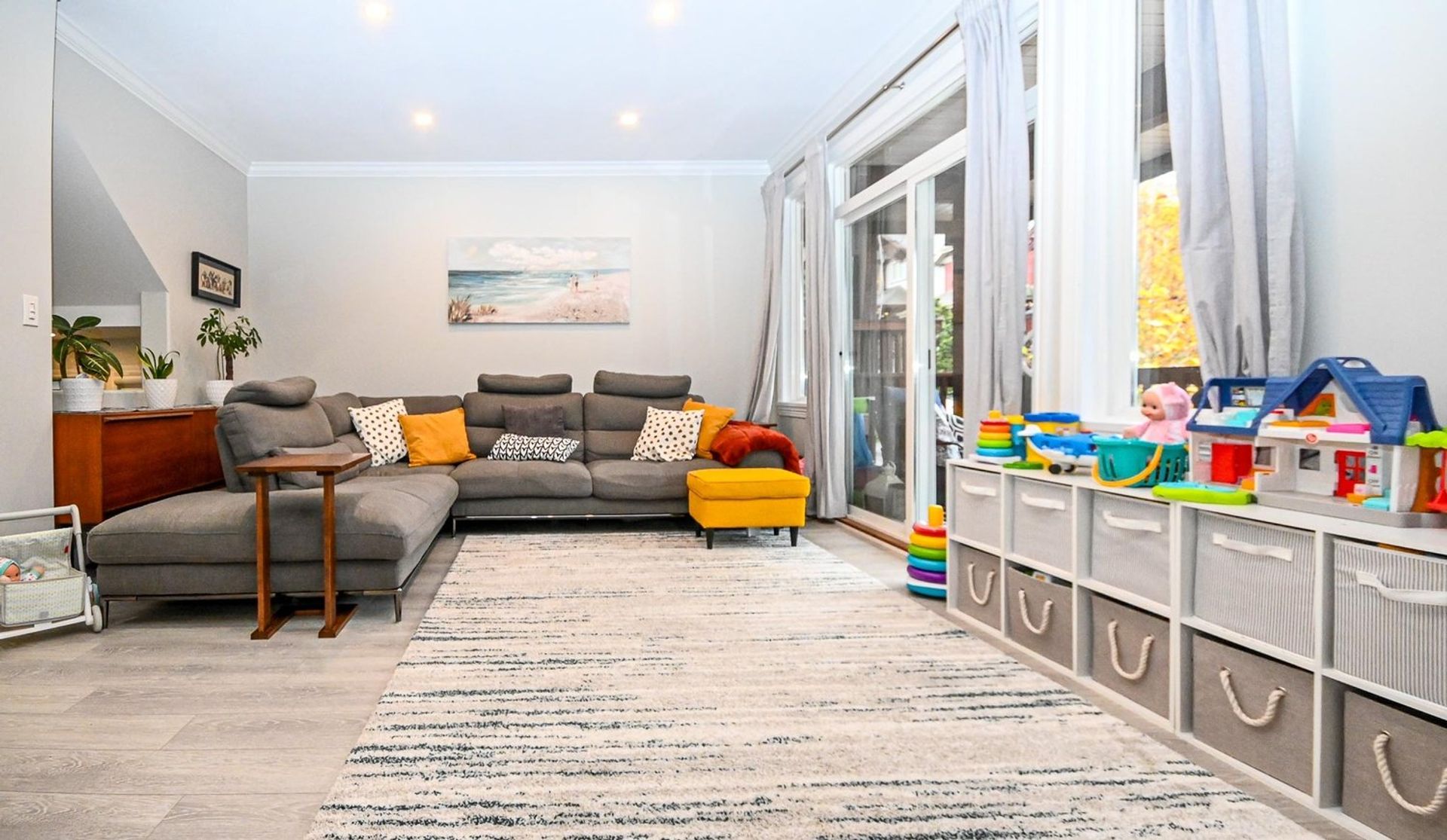 The home’s lower level has a large recreation room with wainscotting and a sliding glass door onto a patio area in the backyard. There is also a three-piece bathroom, under stair storage, and access to the home’s two car garage. The entire home has been painted, including all closets, doors, ceilings, garage, protective layer on plywood before flooring went in, & all door/window casings. To complete the renovations central air conditioning was added, new light fixtures were installed in the entirety of the home, a garage door keypad was added, and both decks were refinished by strata.