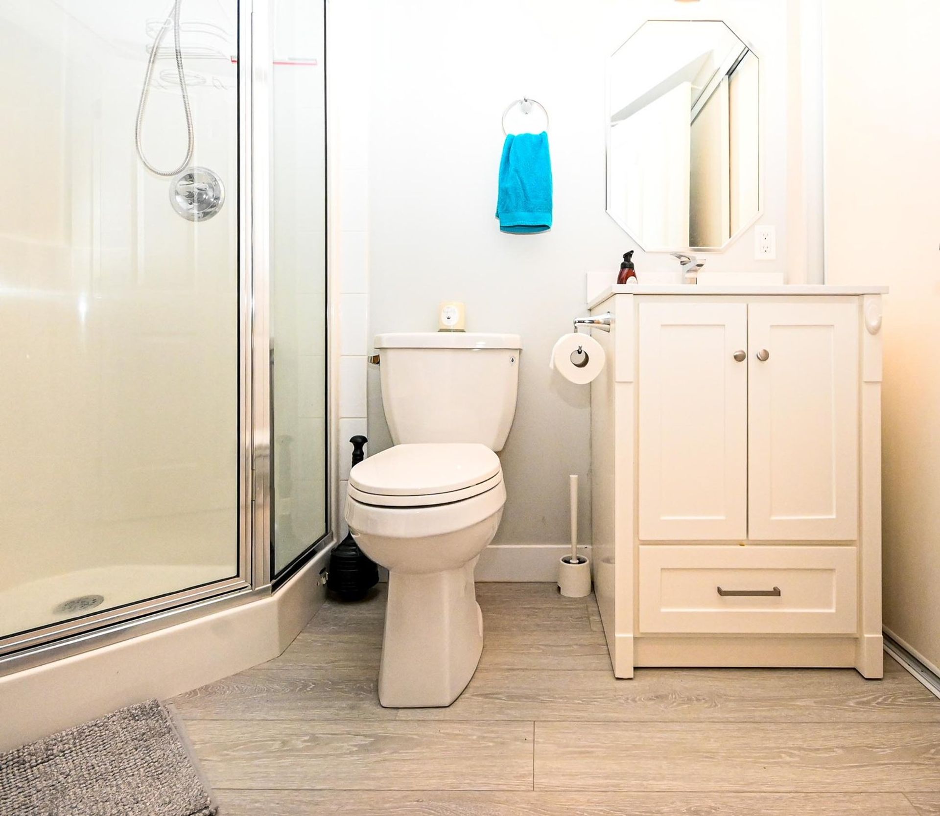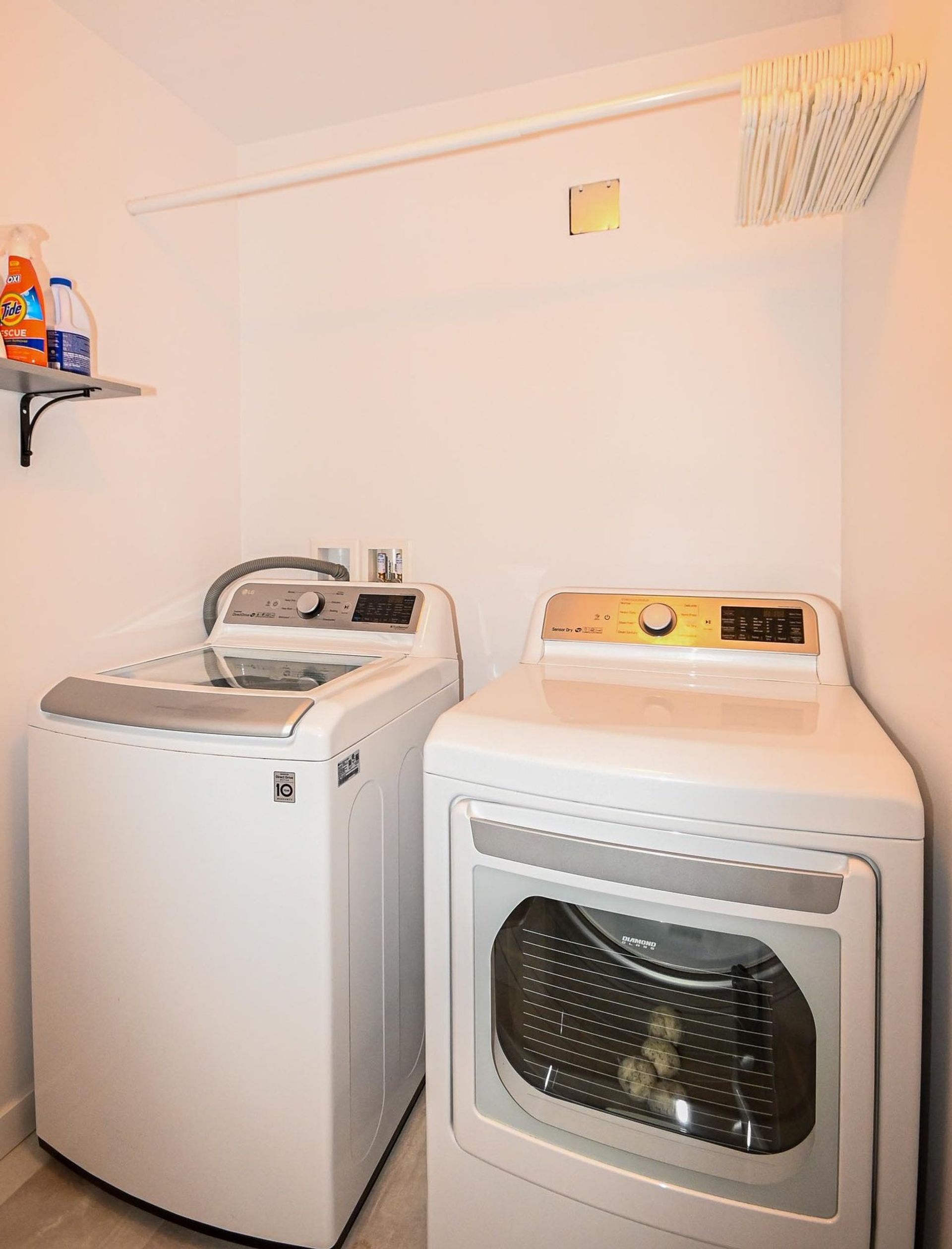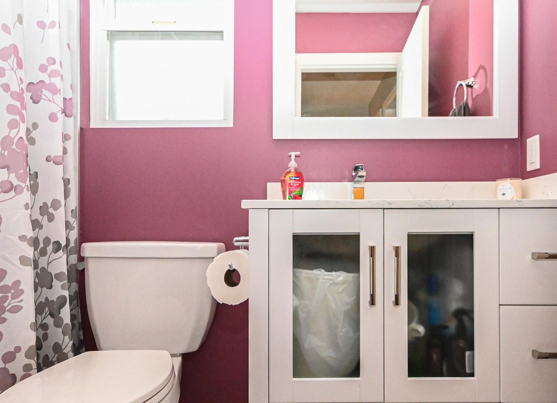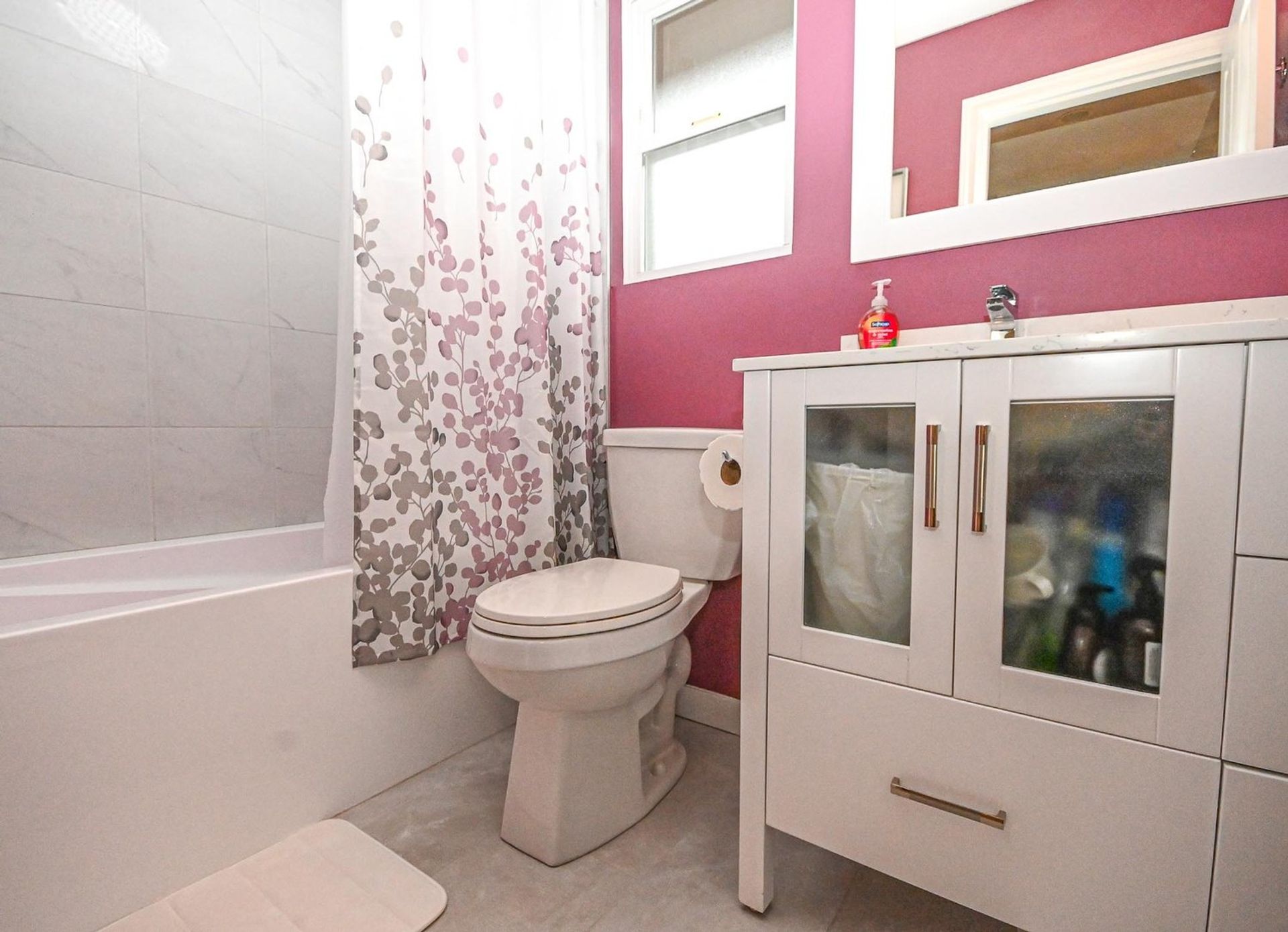 There are two remaining bedrooms on the upper floor (one without a closet), an updated main bathroom— with all three bathrooms (separate from the ensuite) having new marbleized quartz counters, a soft close vanity, new toilets & updated flooring—and an actual laundry room with new side-by-side washer and dryer and ample room to hang dry clothes.