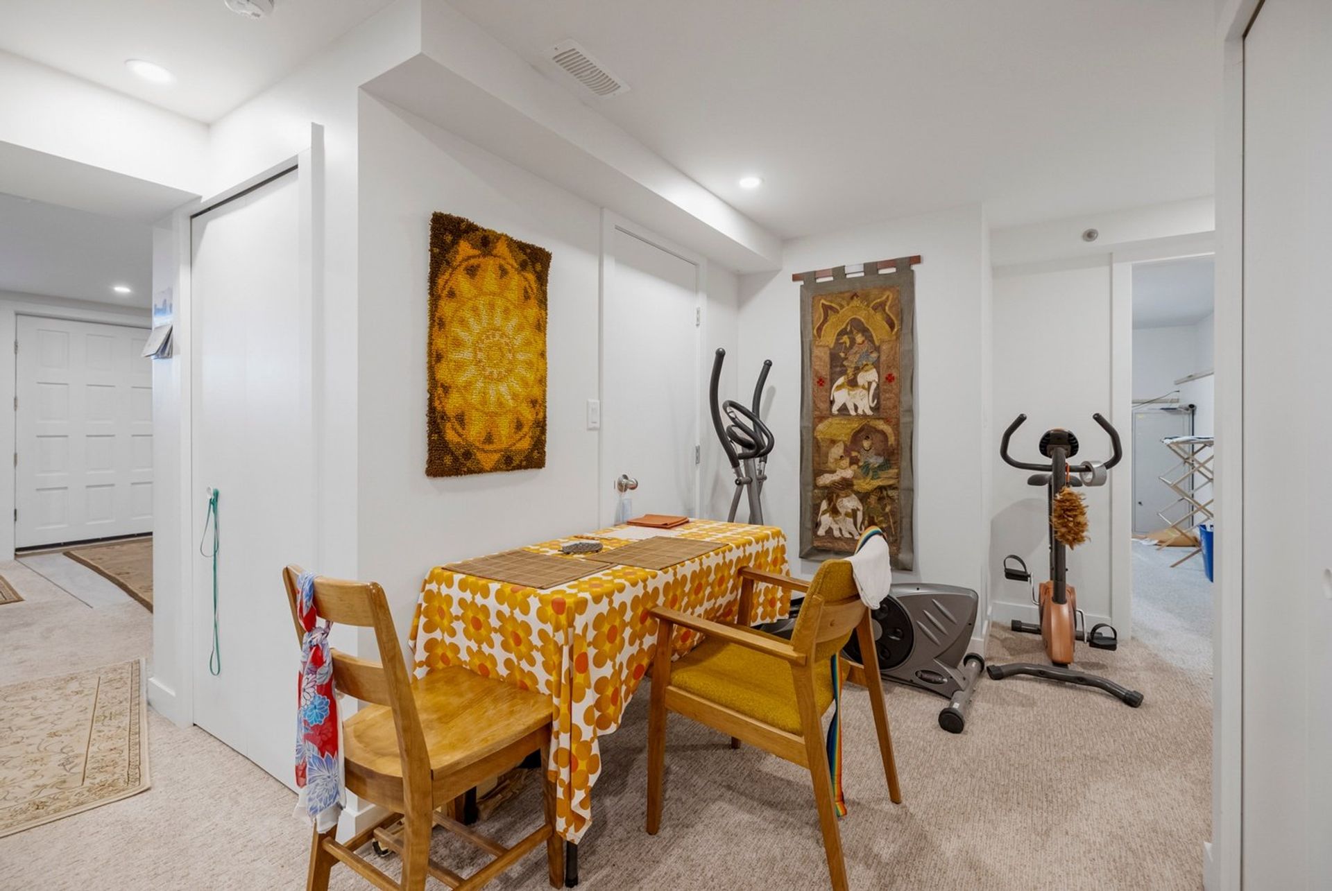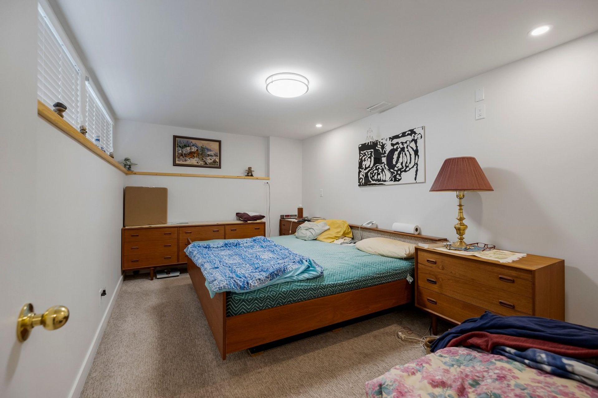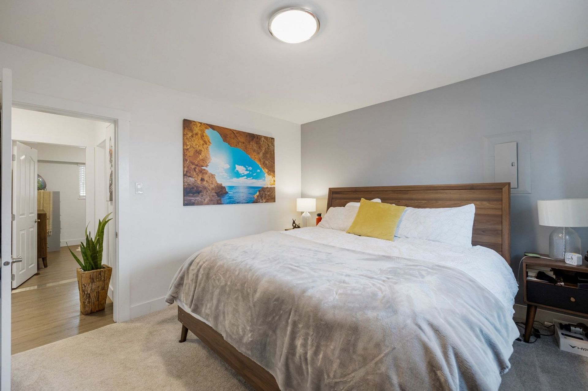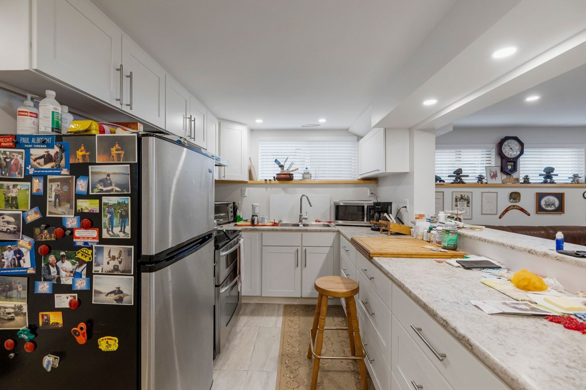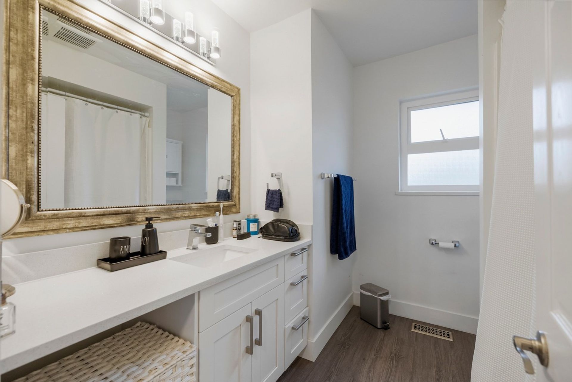 Although it is partially underground the lower two-bedroom unit has fantastic light with numerous windows in almost every room. The kitchen has been updated in a similar fashion to upstairs; stainless steel appliances, a dual oven, 3/4 sink with low divide, soft close cabinetry, and tile flooring. The kitchen has been partially opened creating a communal entertainment ready connection with the living room. The primary bedroom has a deep walk-in closet, the main bathroom is a four-piece with a deep soaker tub, and there is a full-size stacked washer/dryer tucked away in a closet. There is a partially covered driveway in the front affording enough room to park two cars.