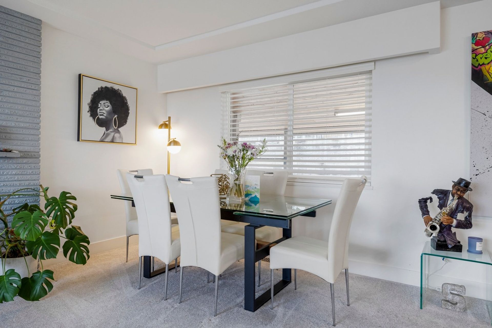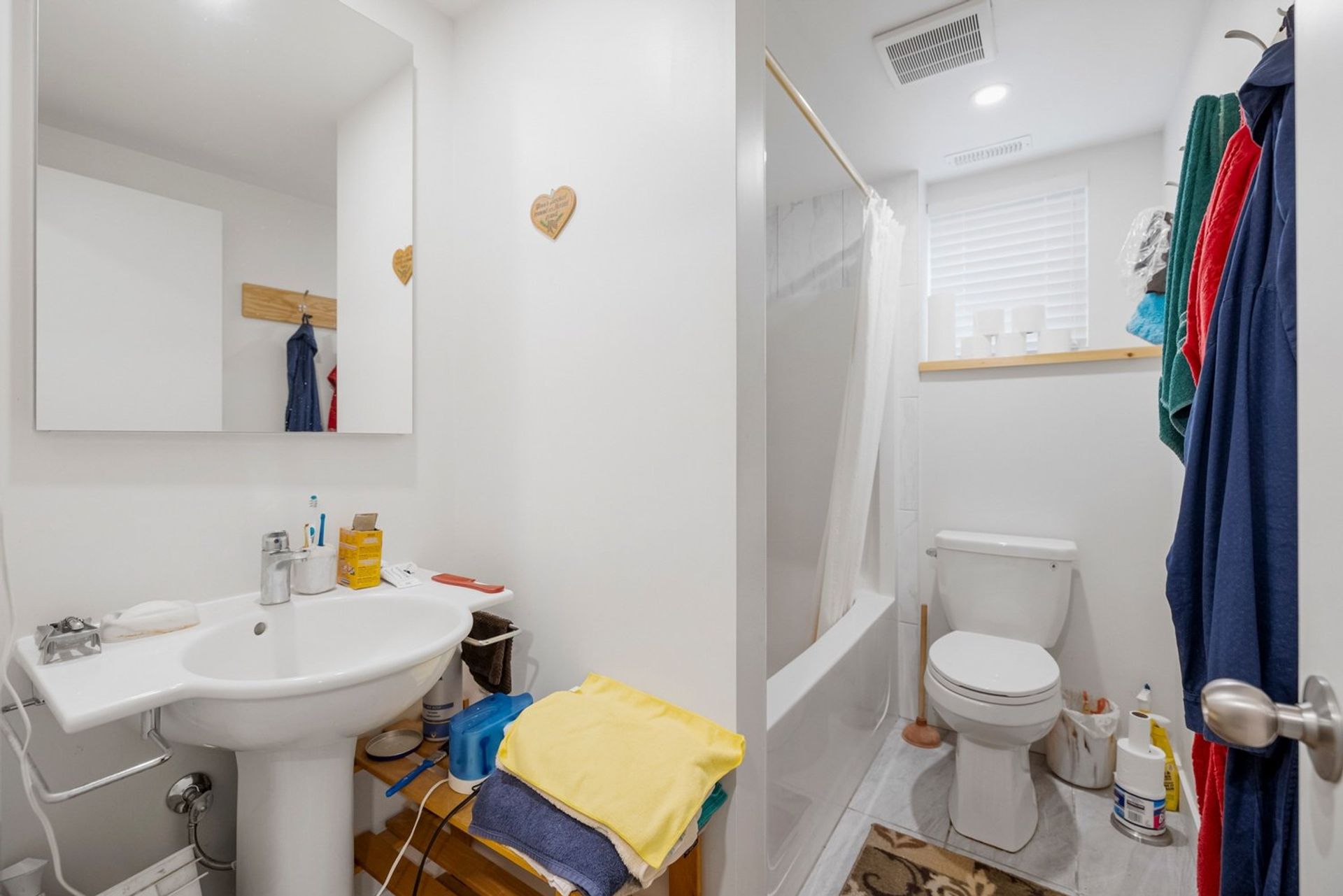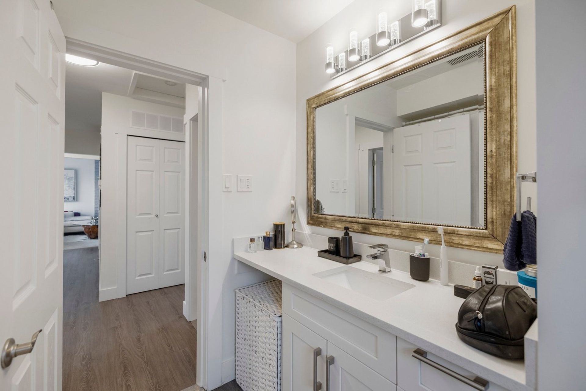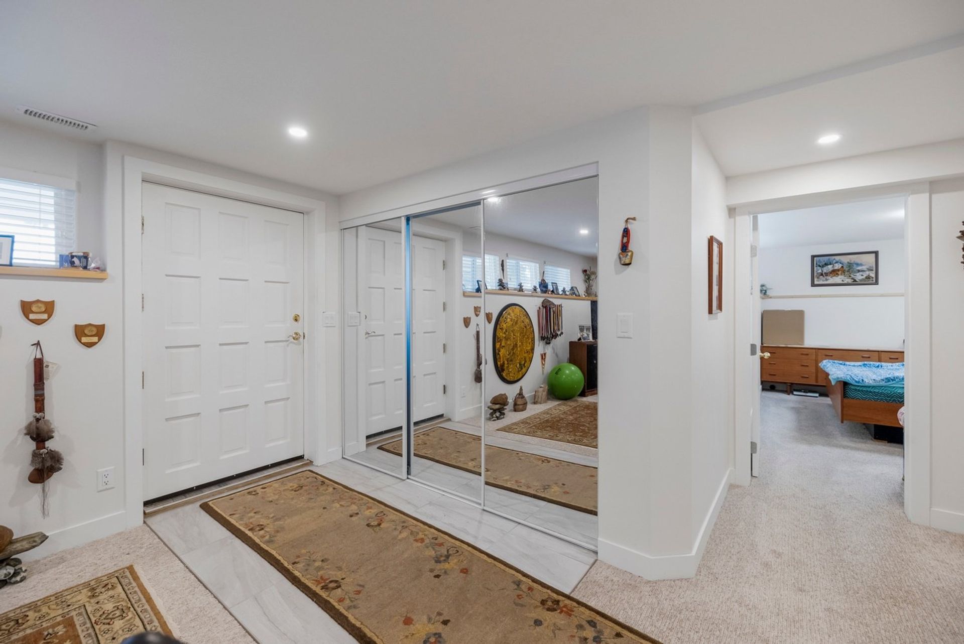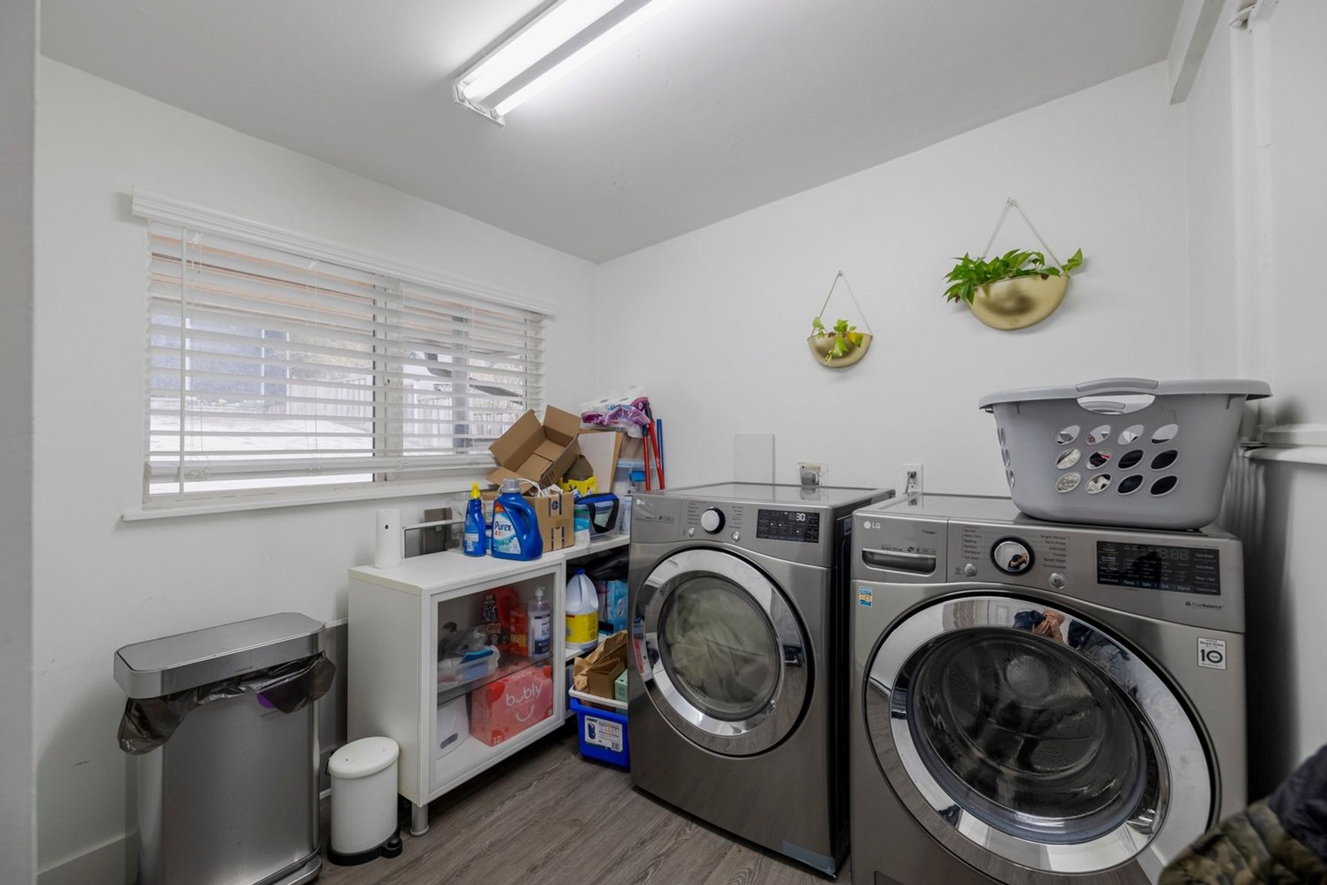 Although it is partially underground the lower two-bedroom unit has fantastic light with numerous windows in almost every room. The kitchen has been updated in a similar fashion to upstairs; stainless steel appliances, a dual oven, 3/4 sink with low divide, soft close cabinetry, and tile flooring. The kitchen has been partially opened creating a communal entertainment ready connection with the living room. The primary bedroom has a deep walk-in closet, the main bathroom is a four-piece with a deep soaker tub, and there is a full-size stacked washer/dryer tucked away in a closet. There is a partially covered driveway in the front affording enough room to park two cars.