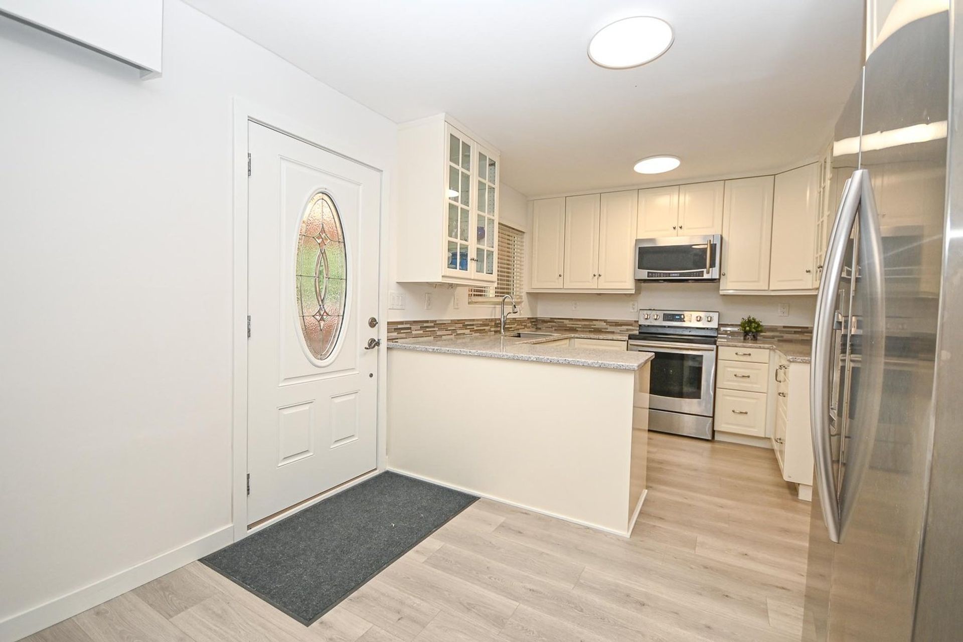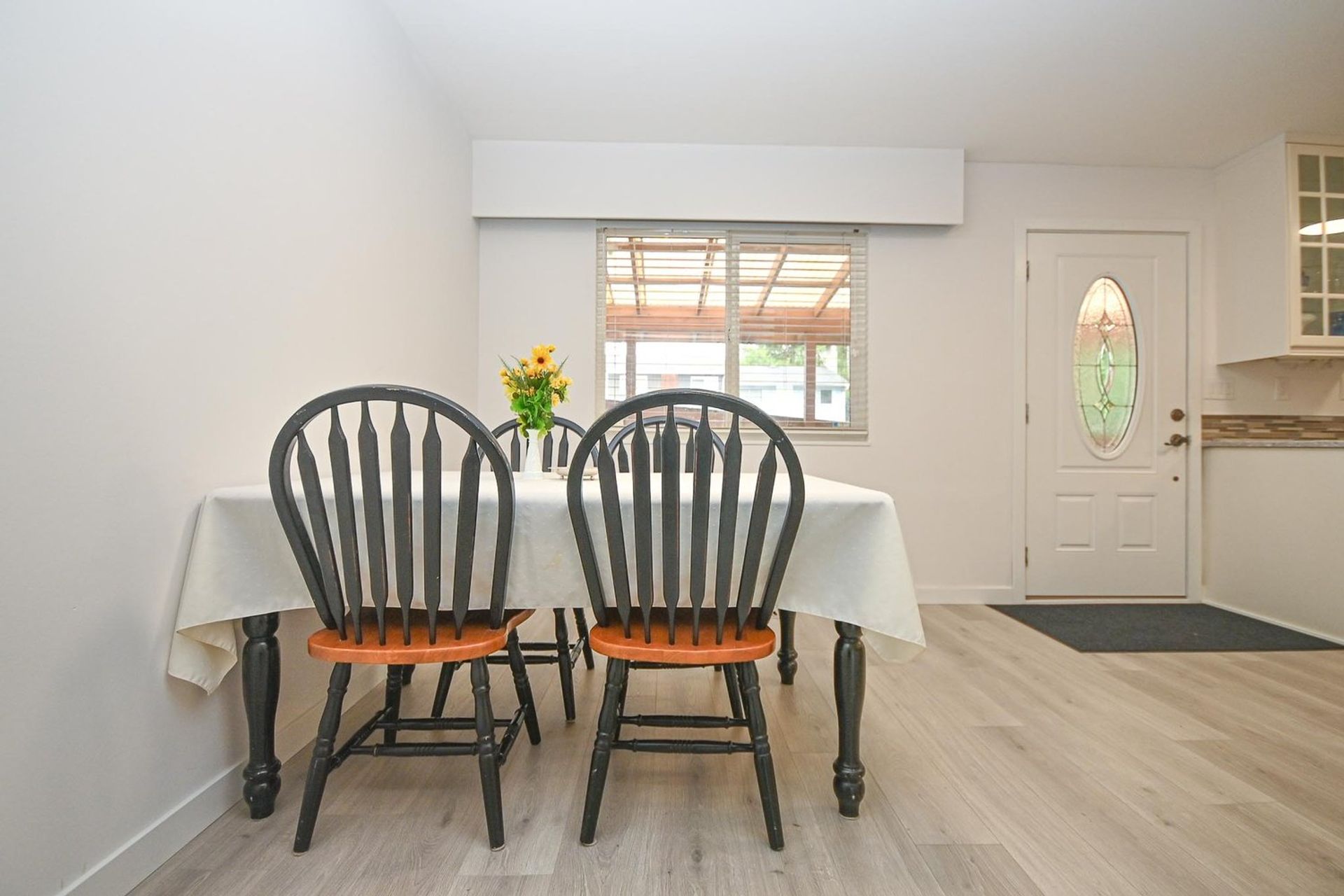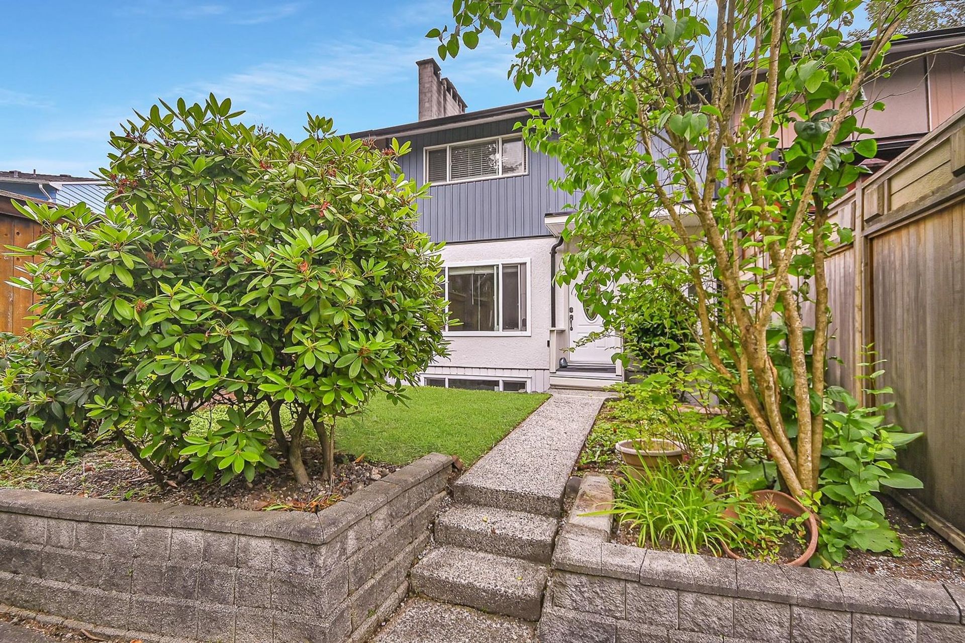 This rowhome has just been tastefully updated & is move in ready. Plus this is a non-strata complex with NO rules or fees! With three levels & over 1,900 square ft of living space there is room for everyone plus there's the option to have a separate suite. Freshly painted inside/out, new flooring on the main level. The kitchen was renovated & features lots of counter space, glass front cupboards & under counter lighting. Three bedrooms up, a spacious primary with double closets. Lower level has a roughed in bath, separate entrance & would be a great suite. The windows have been updated, gutters are new, roof only 8 years old. Front yard with gardens opens onto greenspace, back yard easy to fence has extra parking. Fantastic family location close to schools/parks/transit. Quick possession.