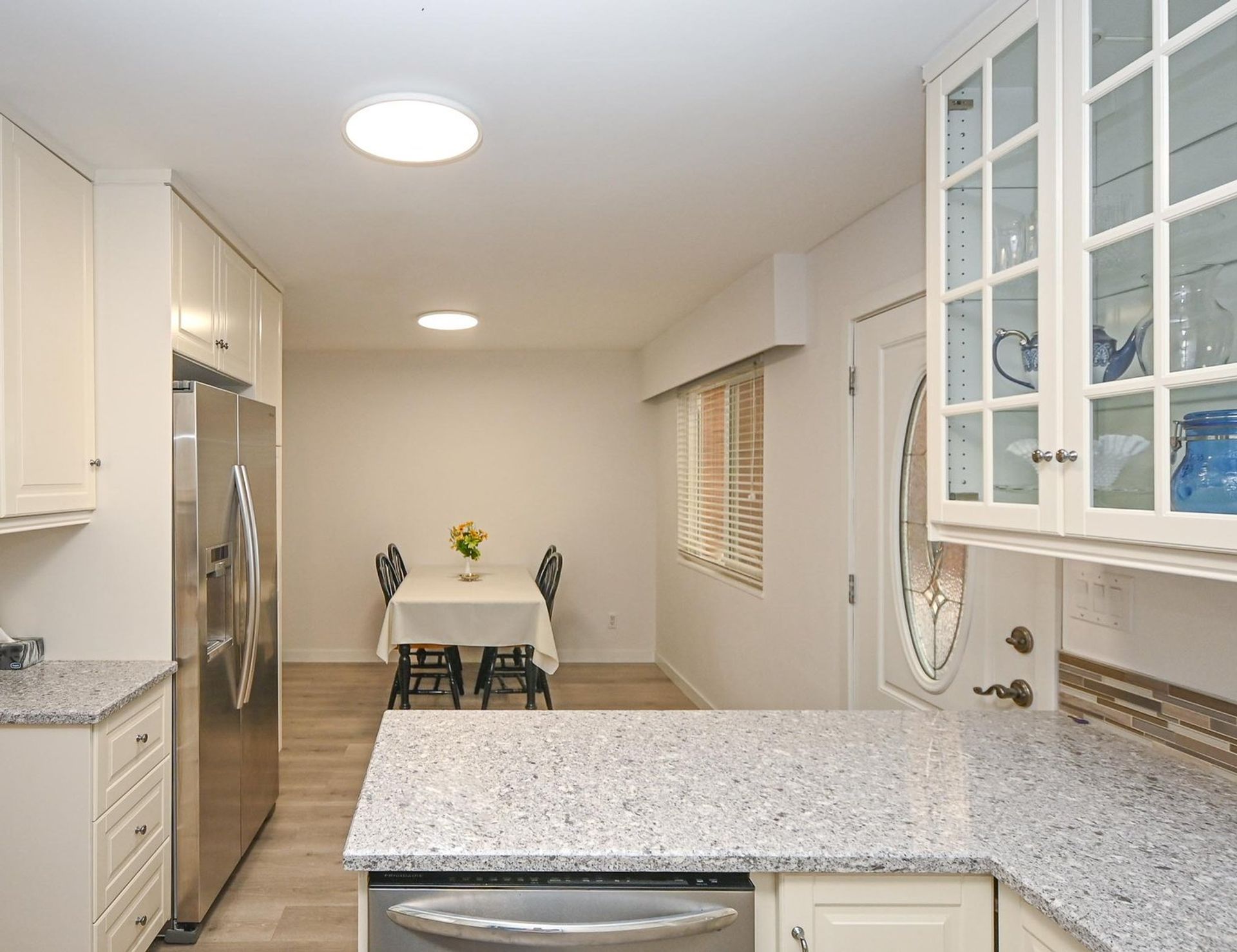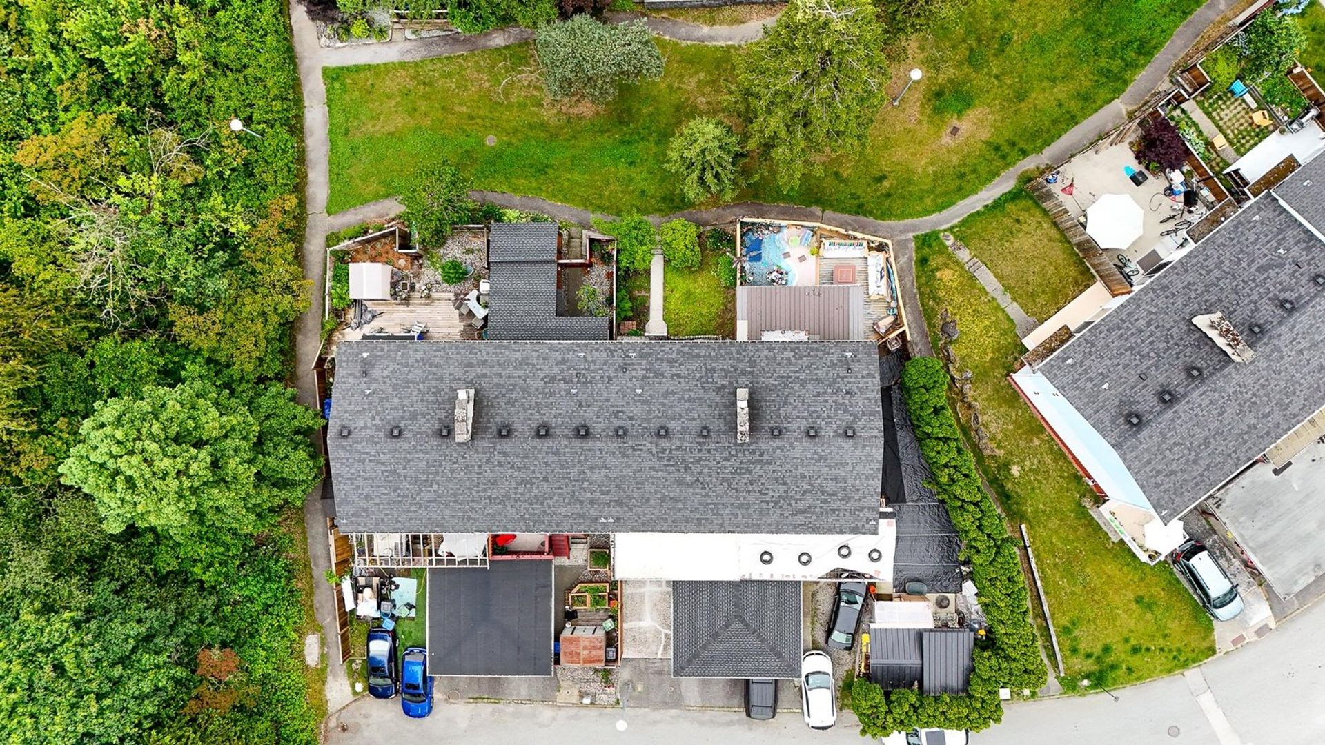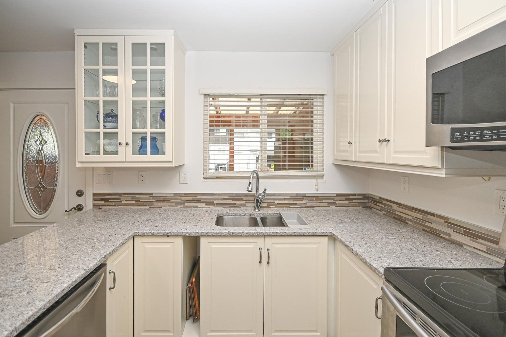 This rowhome has just been tastefully updated & is move in ready. Plus this is a non-strata complex with NO rules or fees! With three levels & over 1,900 square ft of living space there is room for everyone plus there's the option to have a separate suite. Freshly painted inside/out, new flooring on the main level. The kitchen was renovated & features lots of counter space, glass front cupboards & under counter lighting. Three bedrooms up, a spacious primary with double closets. Lower level has a roughed in bath, separate entrance & would be a great suite. The windows have been updated, gutters are new, roof only 8 years old. Front yard with gardens opens onto greenspace, back yard easy to fence has extra parking. Fantastic family location close to schools/parks/transit. Quick possession.